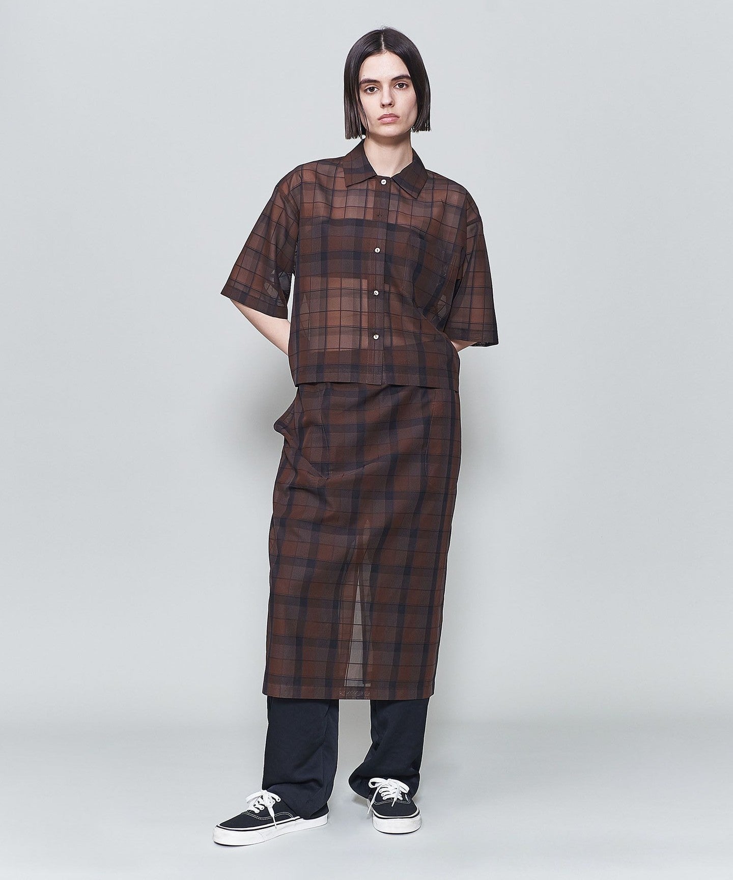 <6(ROKU)>Sheer Check Shirt