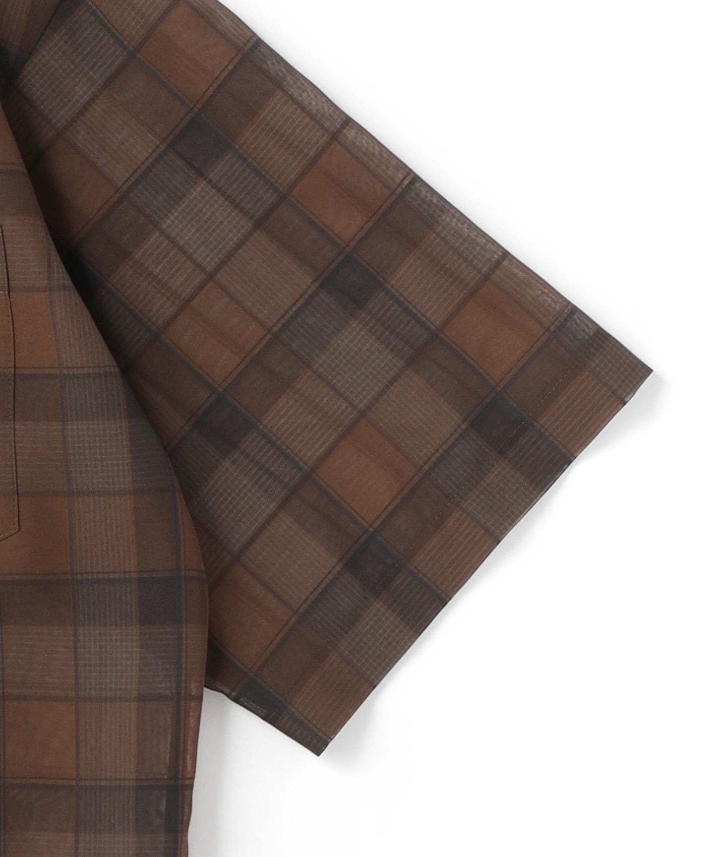A short-sleeved shirt with a retro brown check pattern.