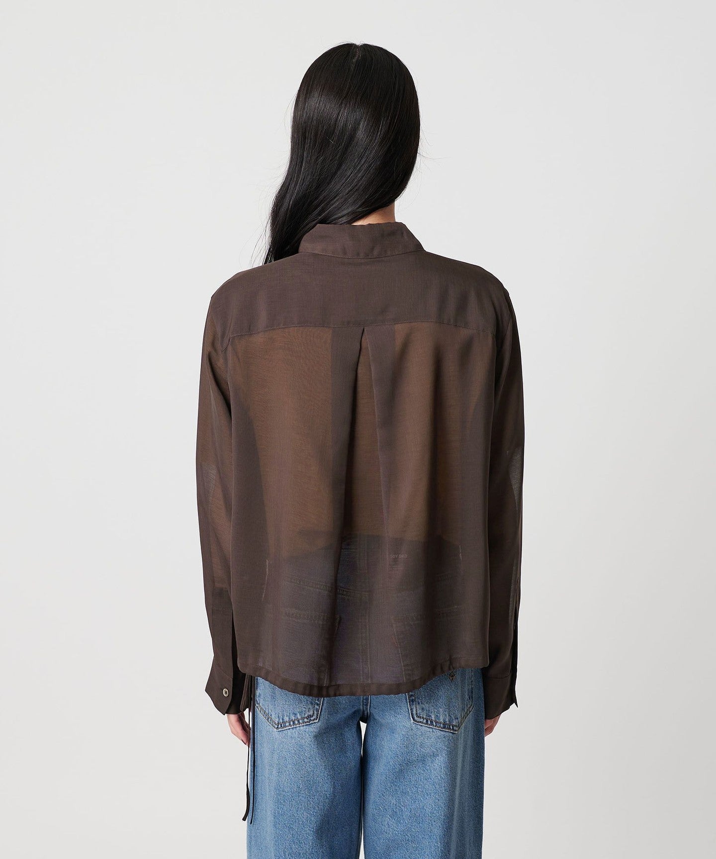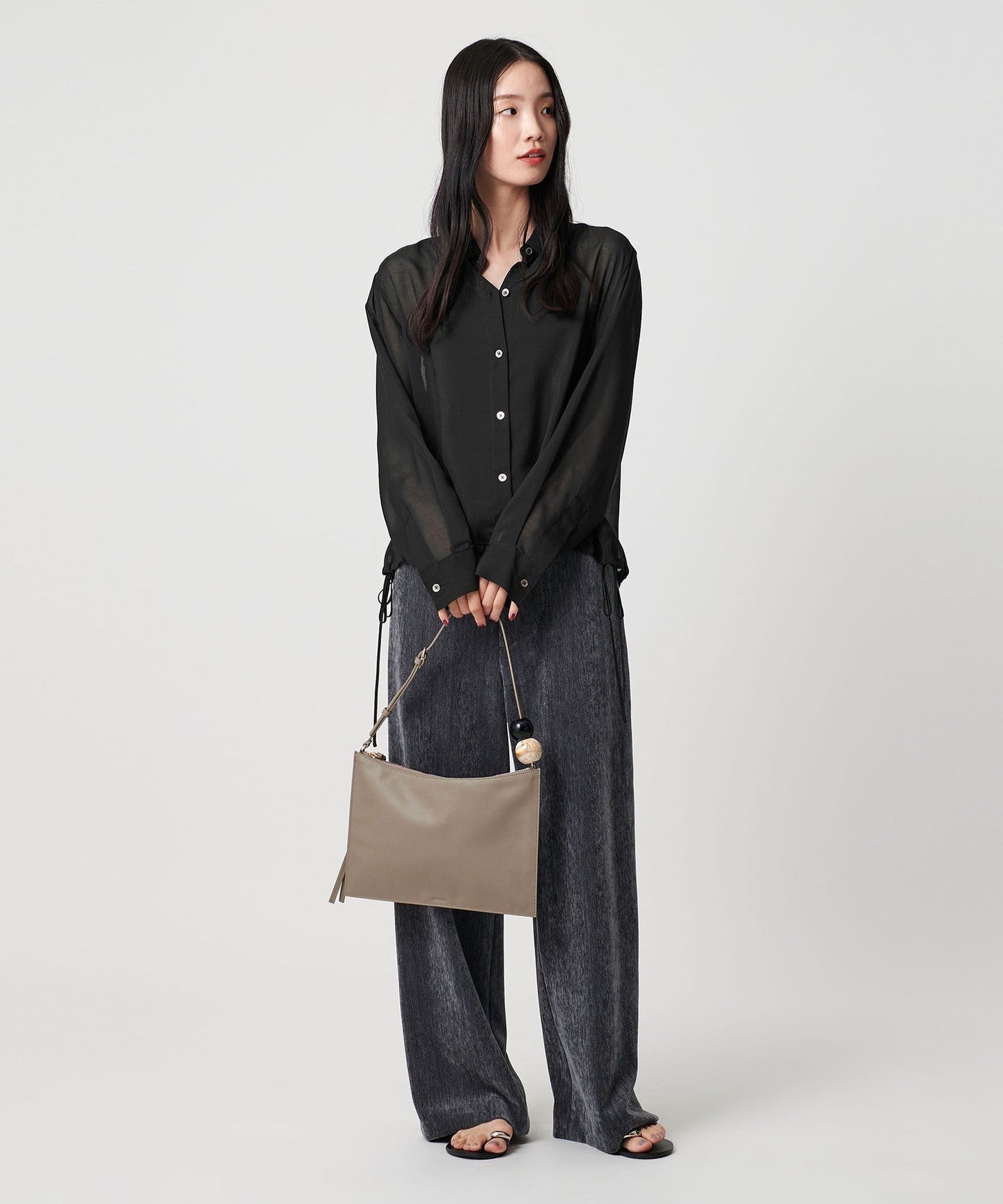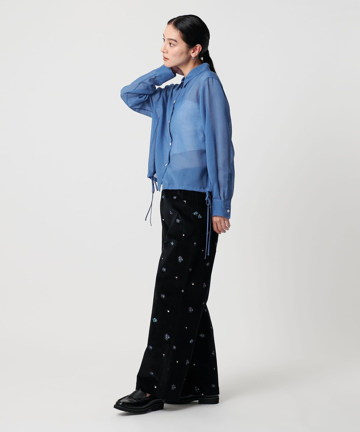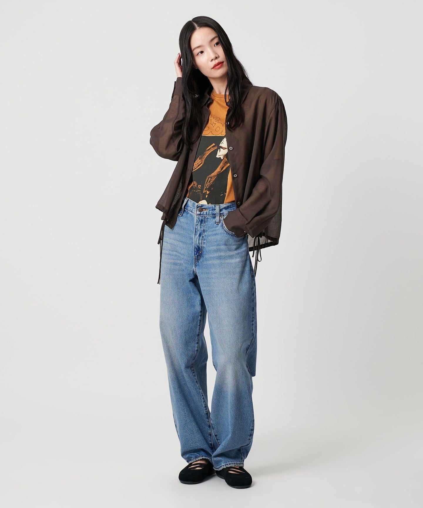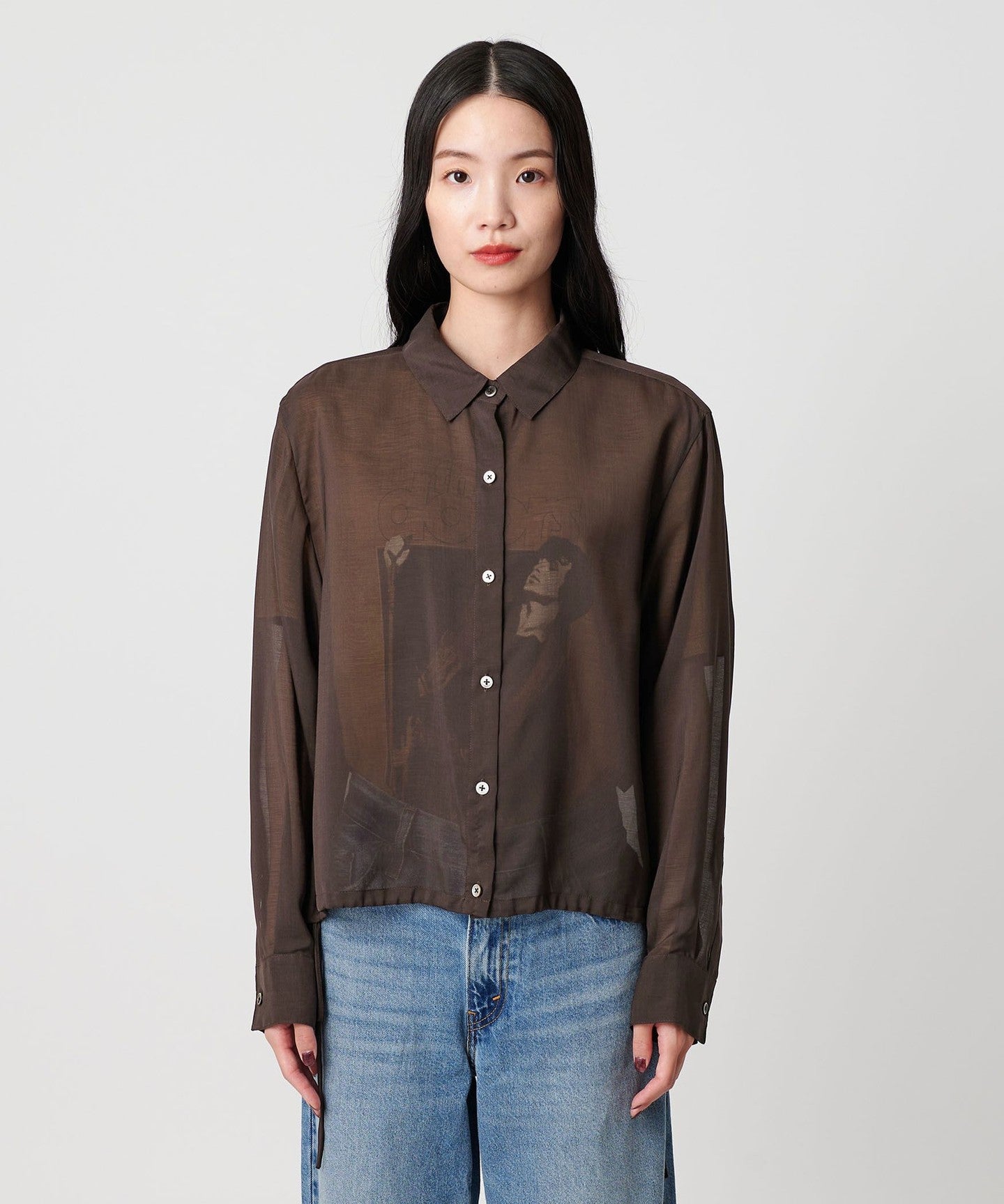 A sheer shirt with an autumnal feel that lets you enjoy changing the silhouette.