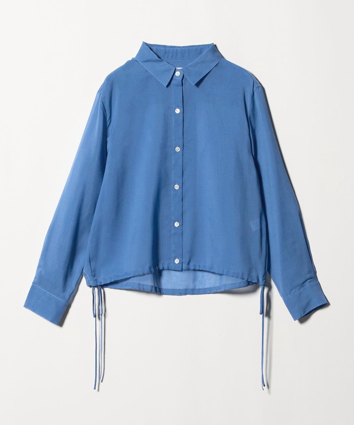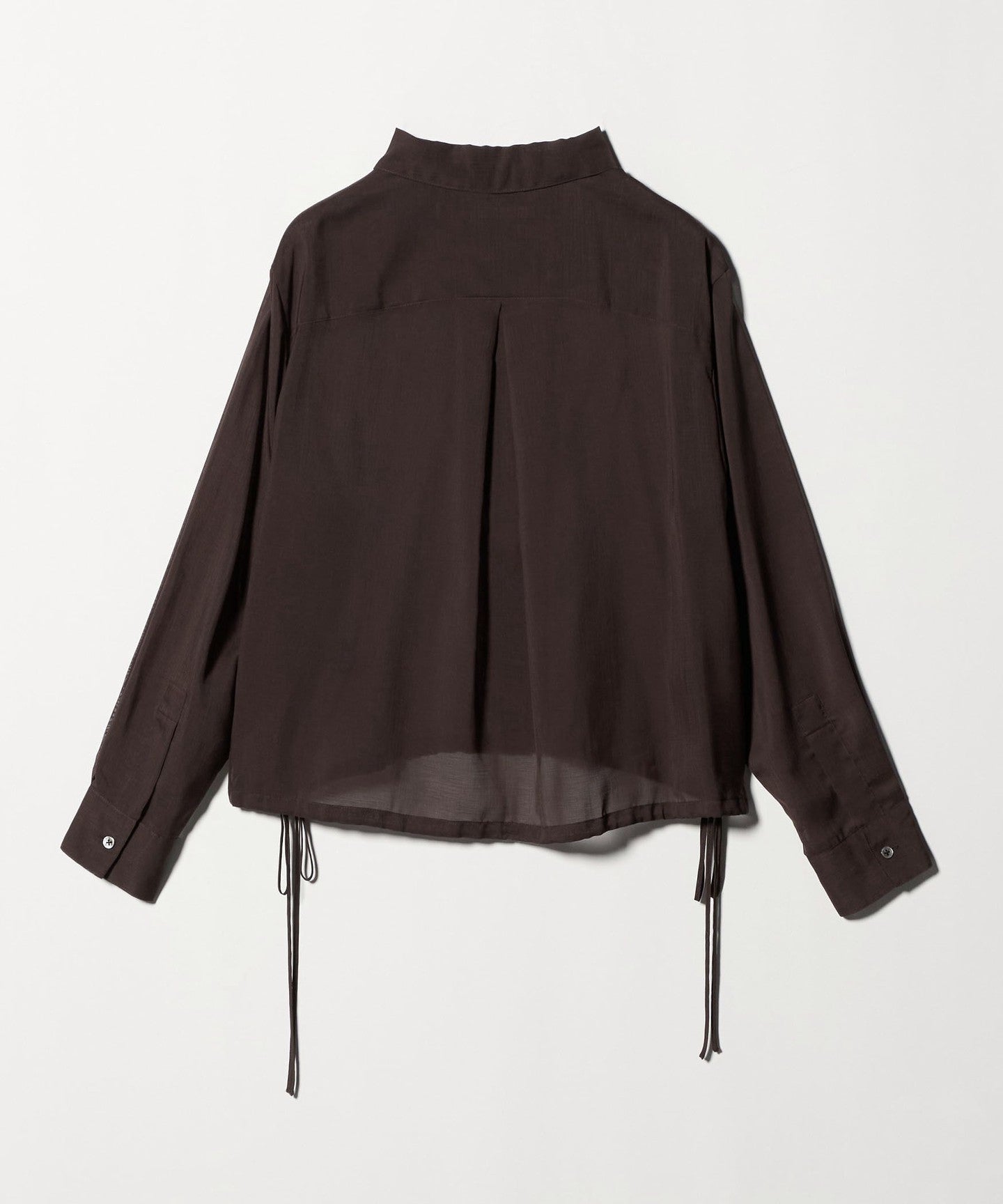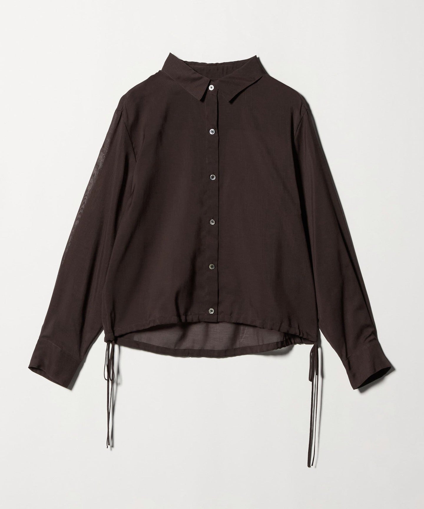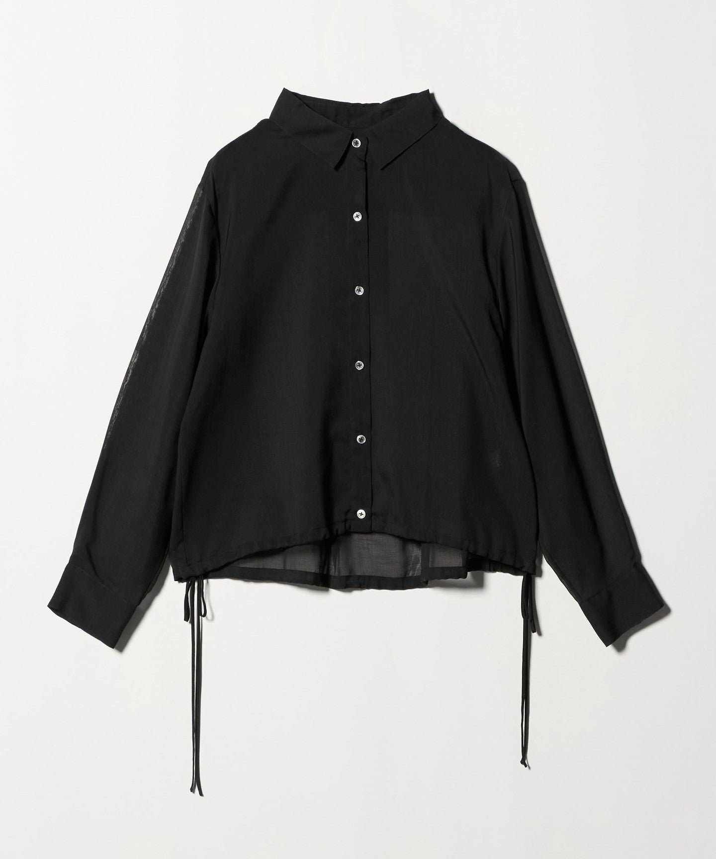 This drawstring shirt is made from trendy sheer material, making it easy to wear even in hot weather, even though it has long sleeves.