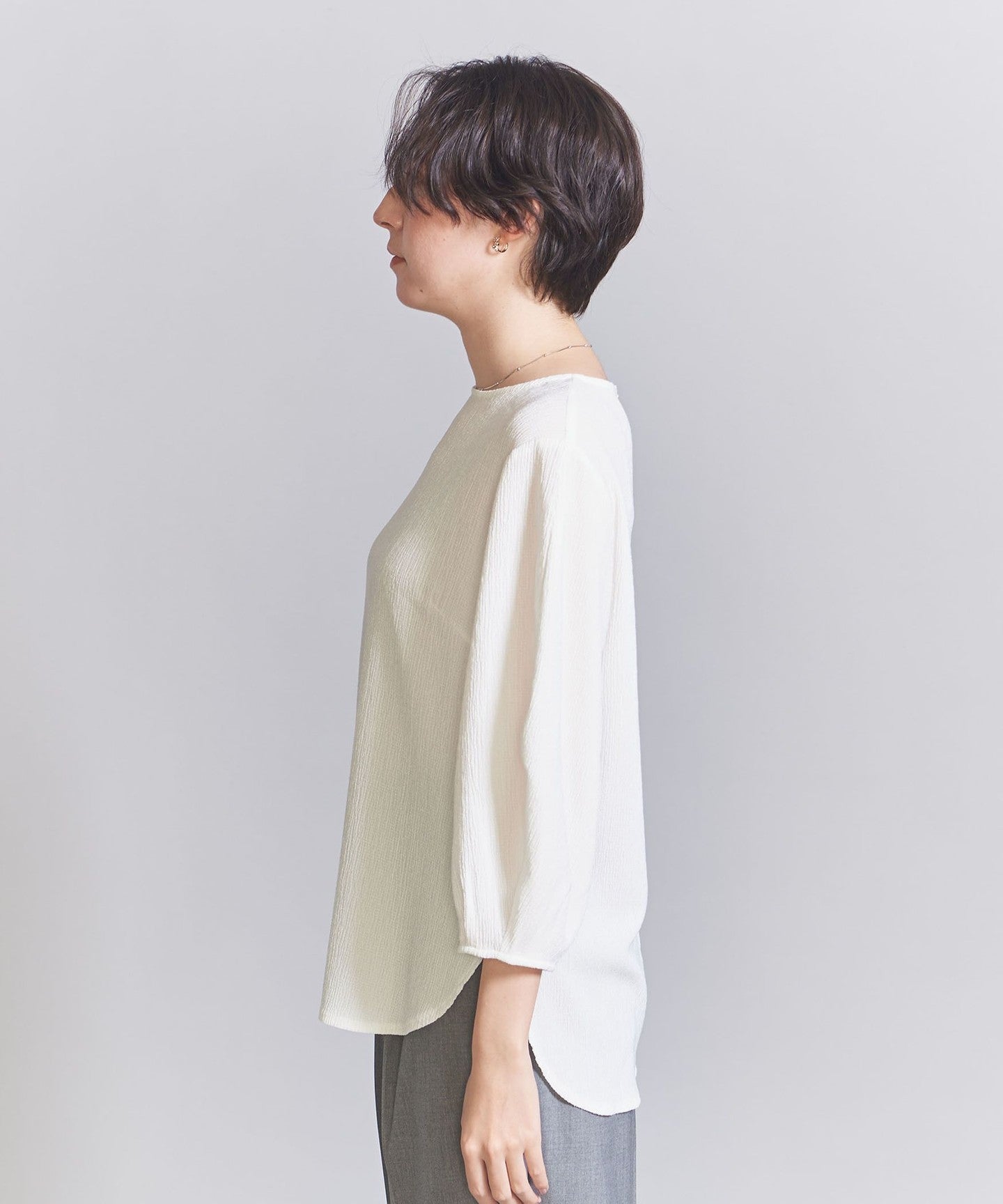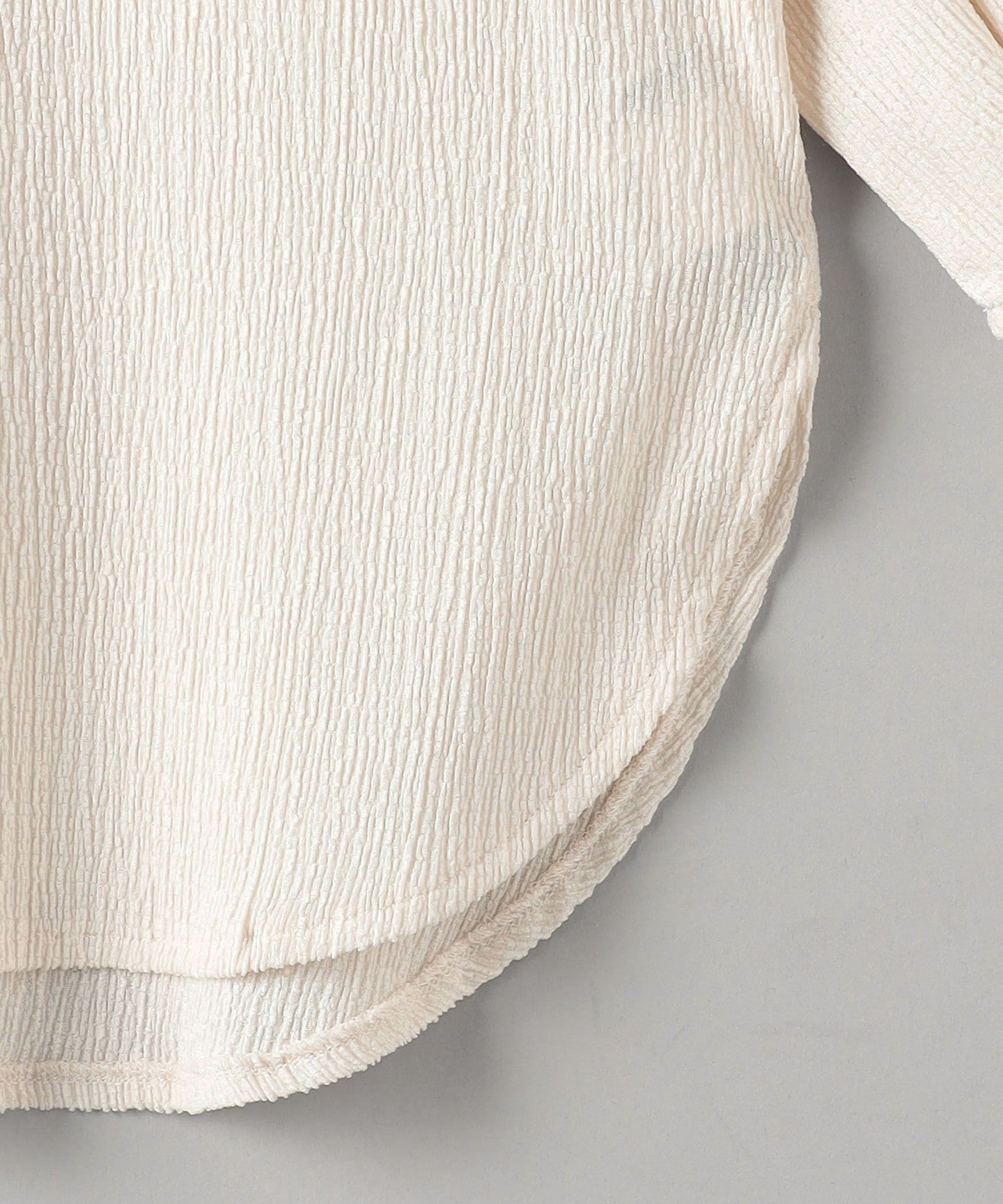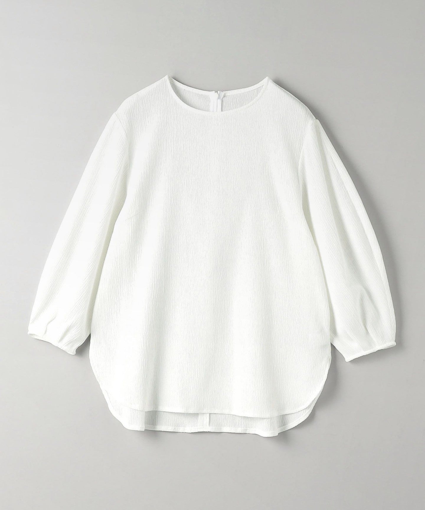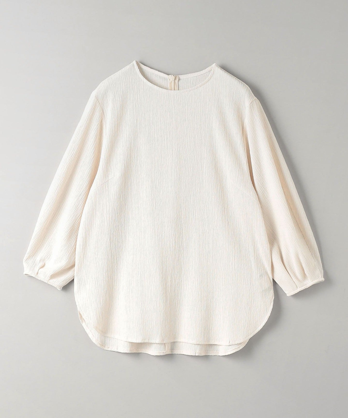 A cut-and-sew pullover featuring rounded curved sleeves.