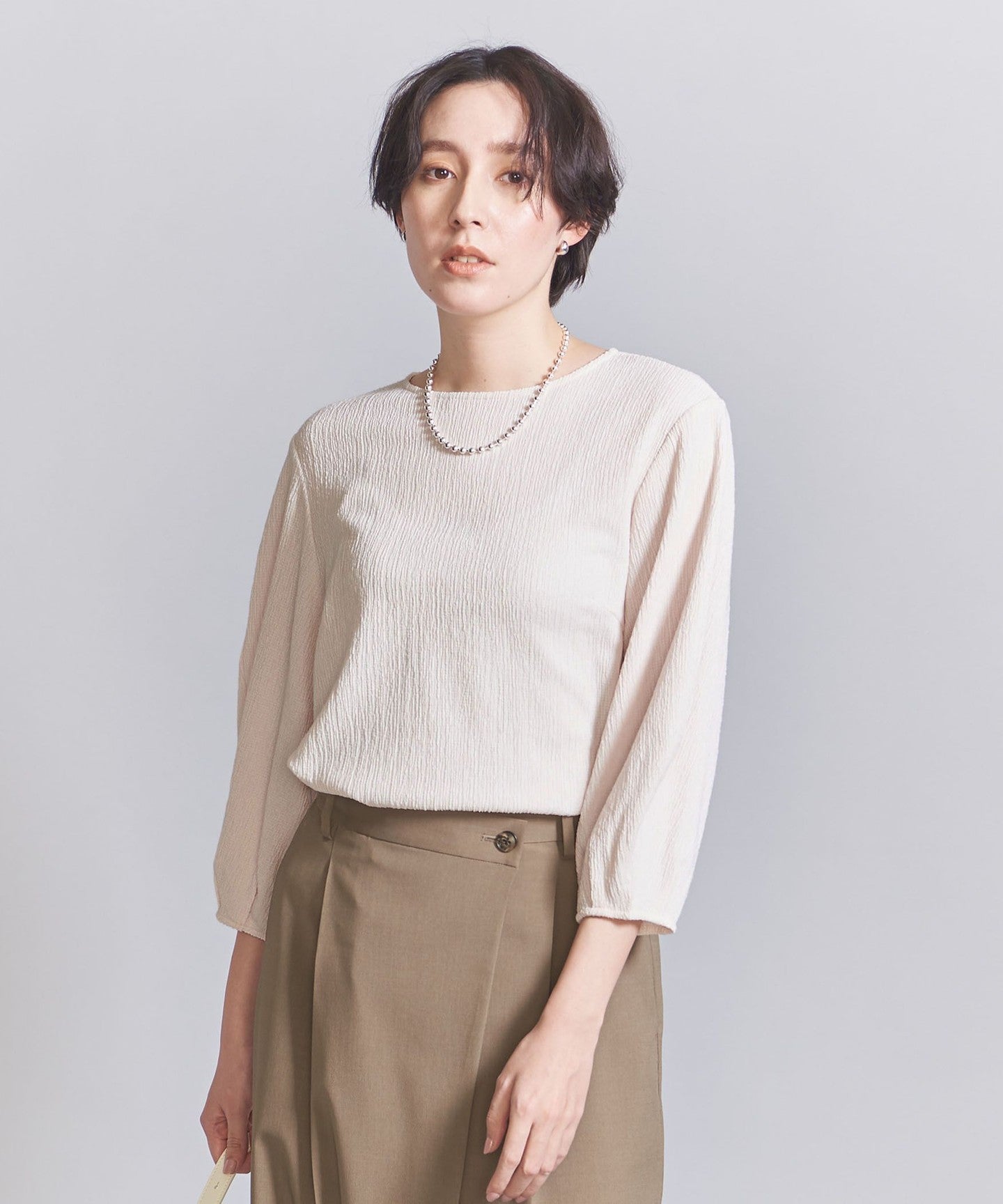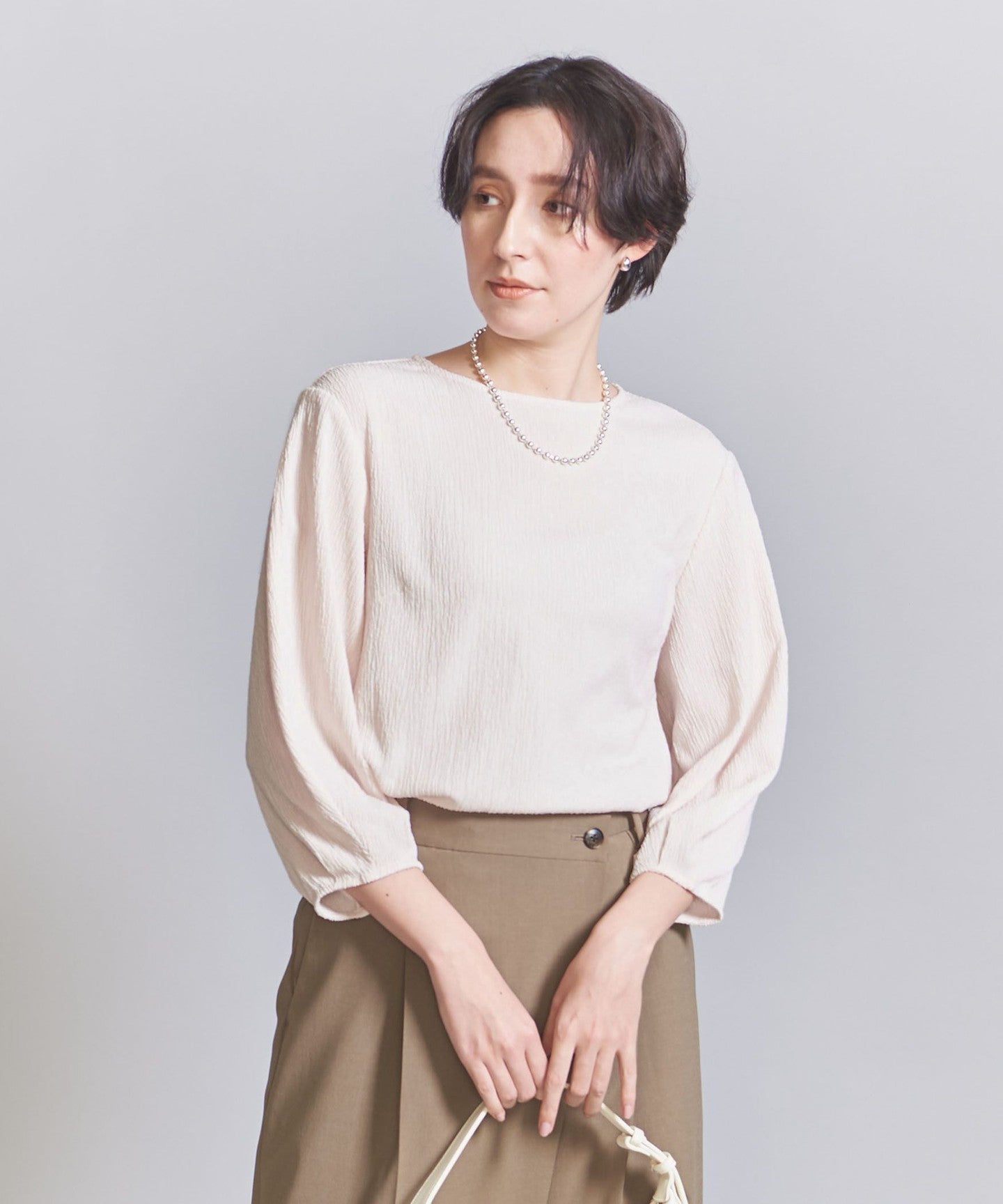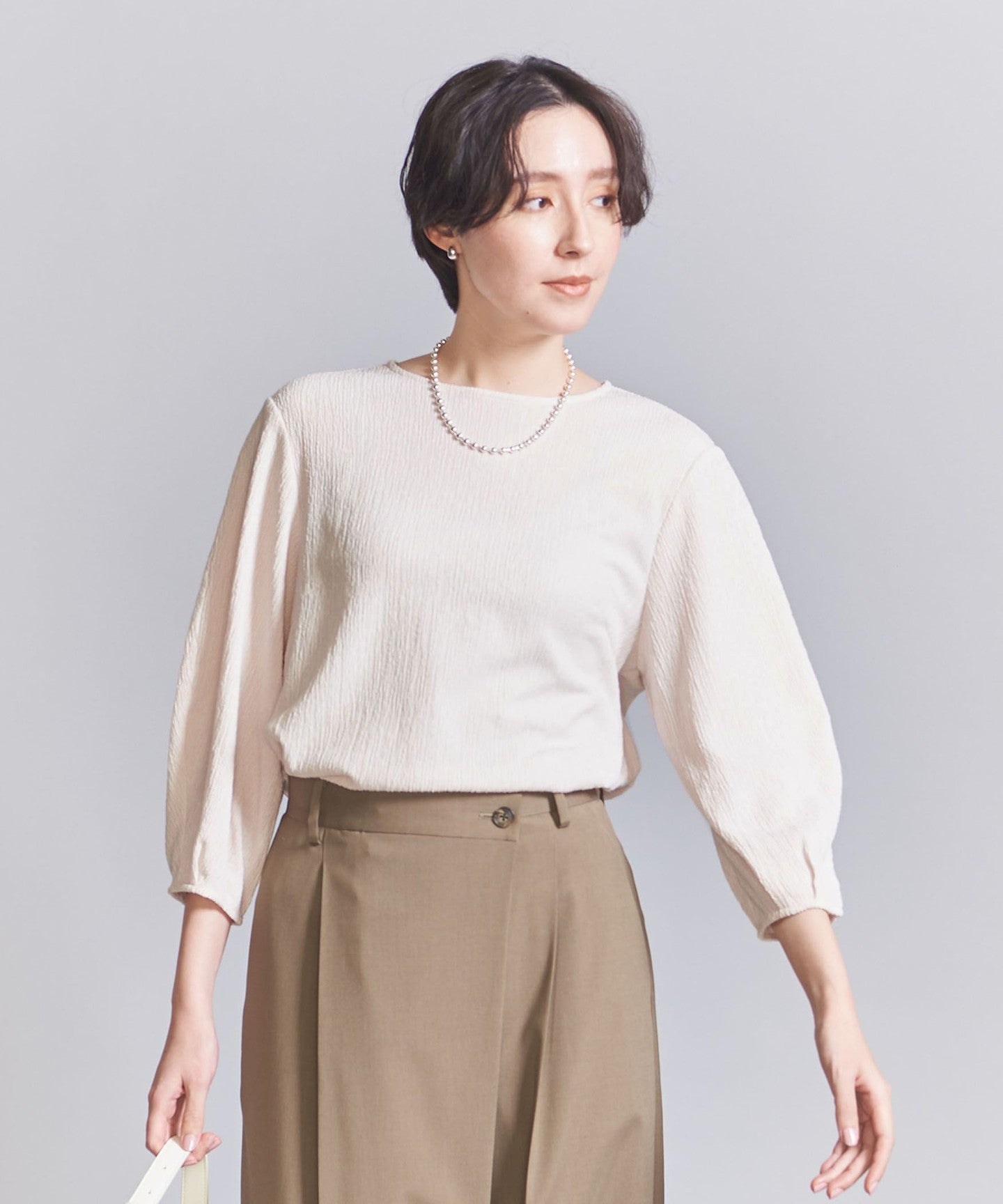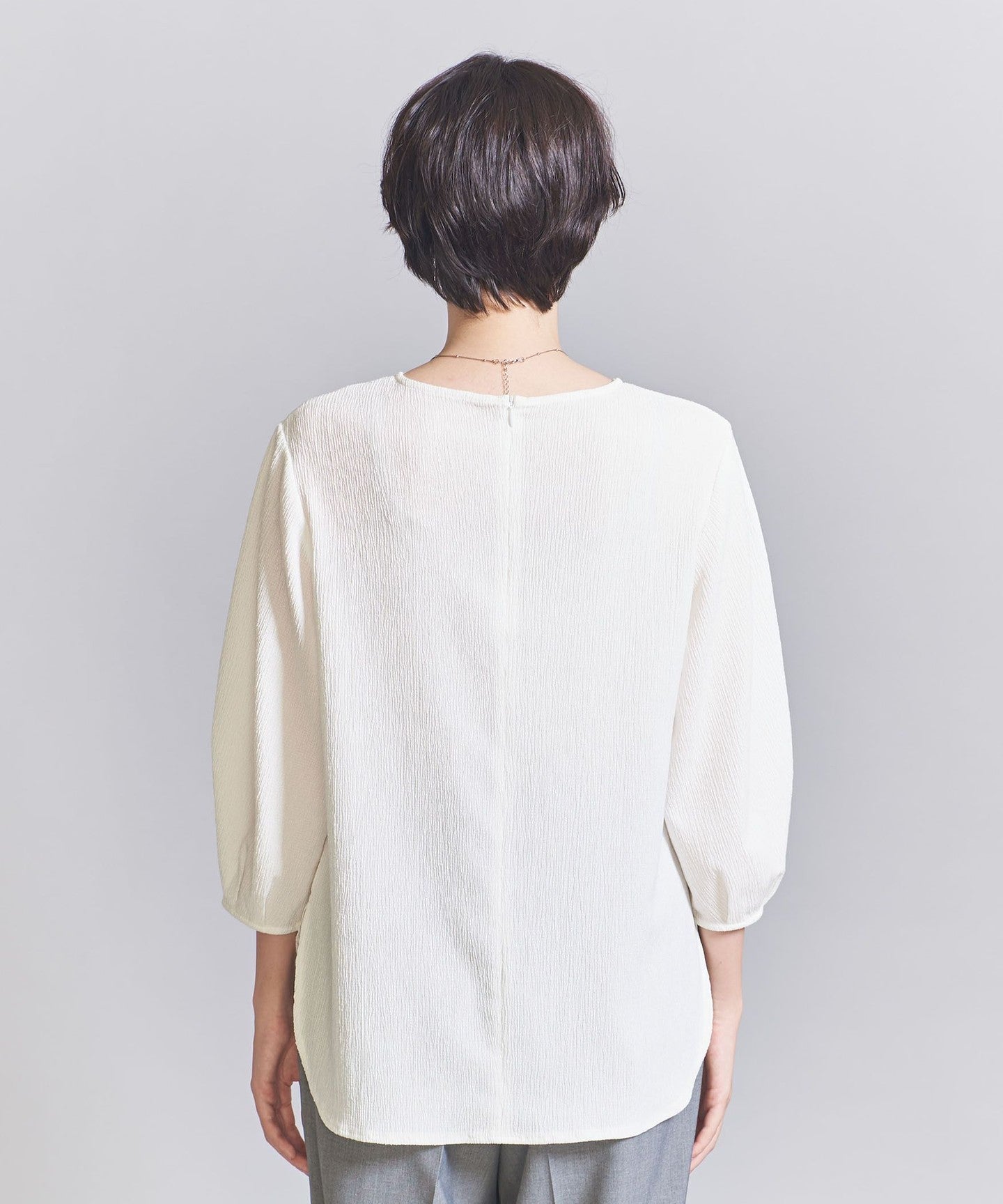 A cut-and-sew pullover featuring rounded curved sleeves.