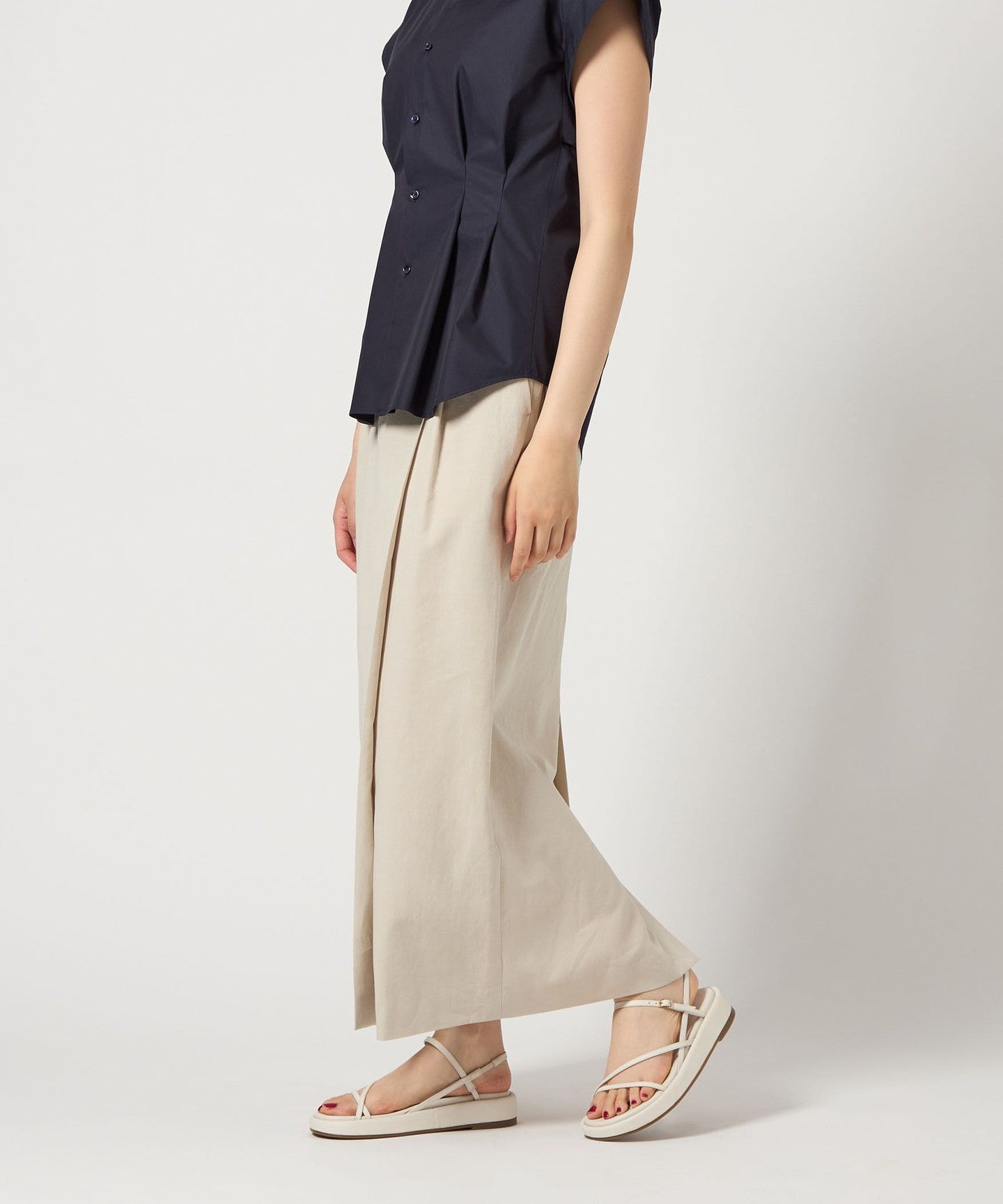 It is recommended to pair it with a narrow-line long skirt or an all-in-one with wide pants.