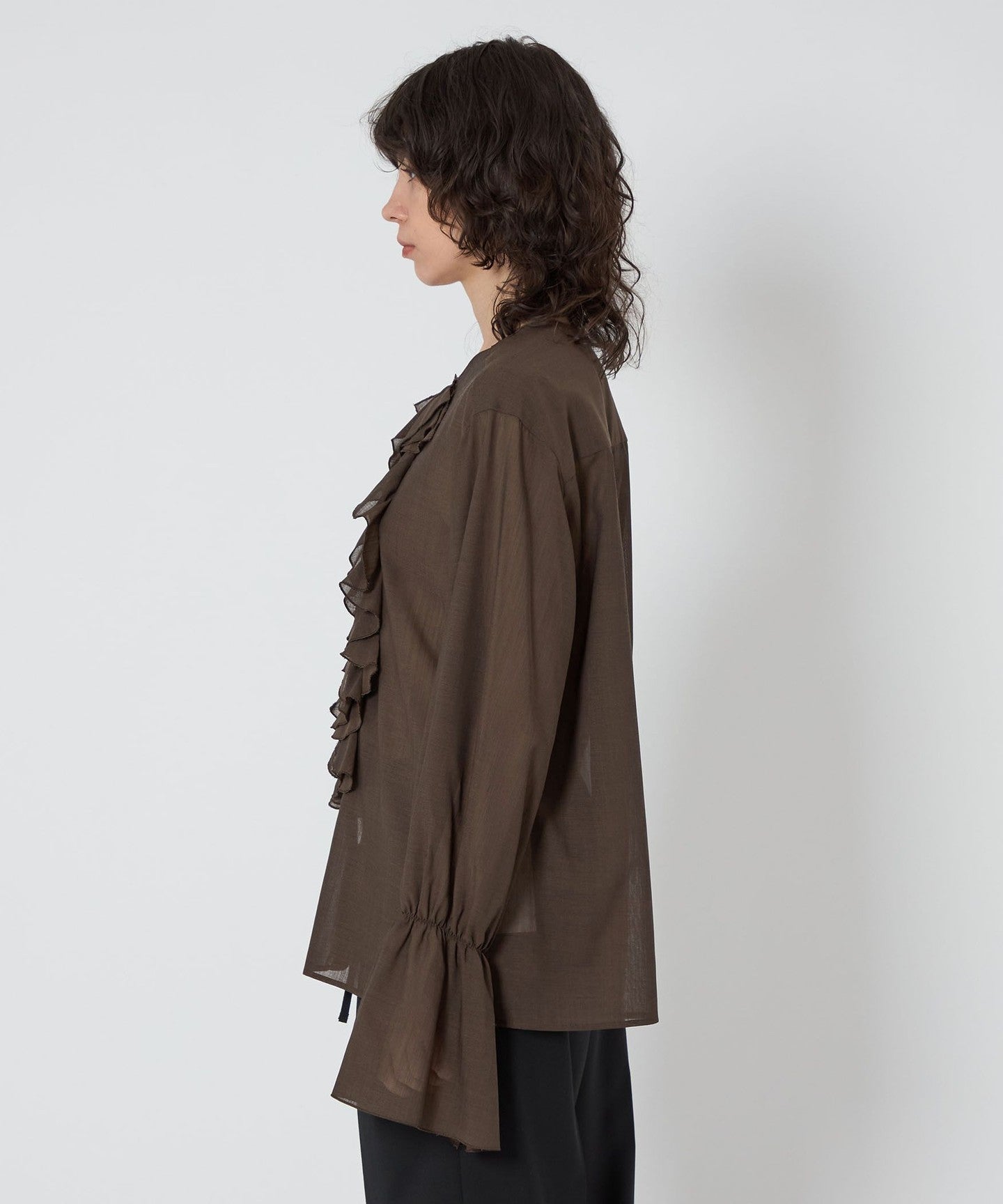 Ruffle puff sleeves, no collar blouse