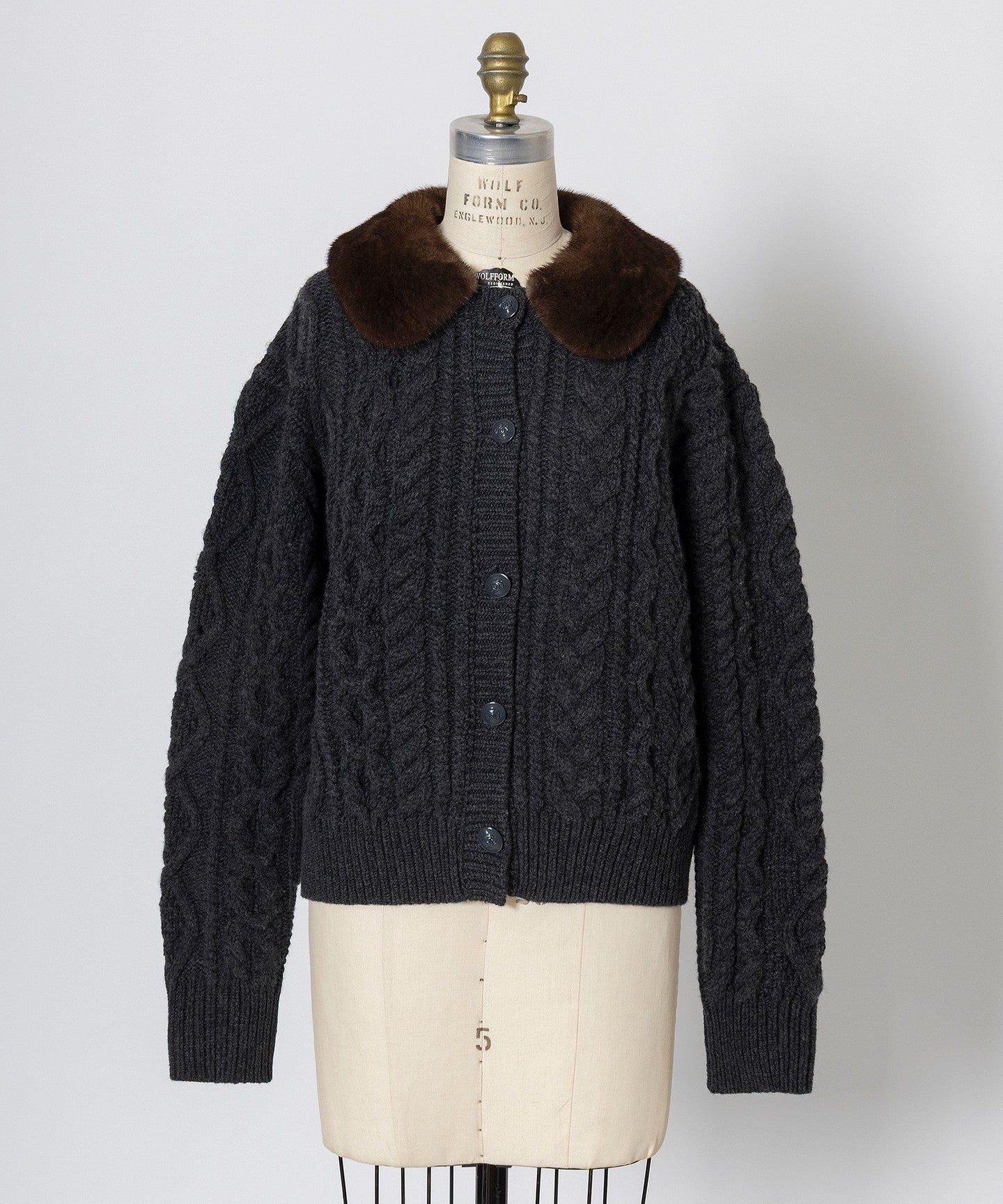This cardigan has a special feel with its fluffy mink fur texture and tightly woven cable knit fabric.