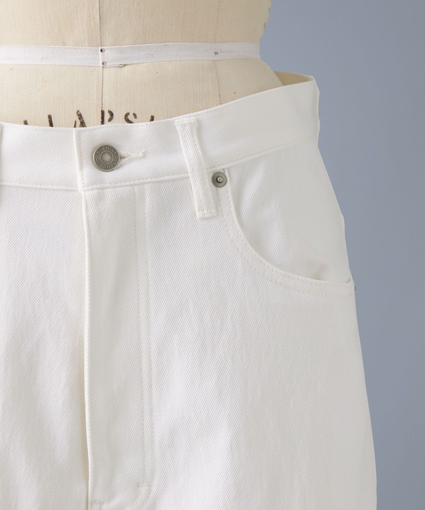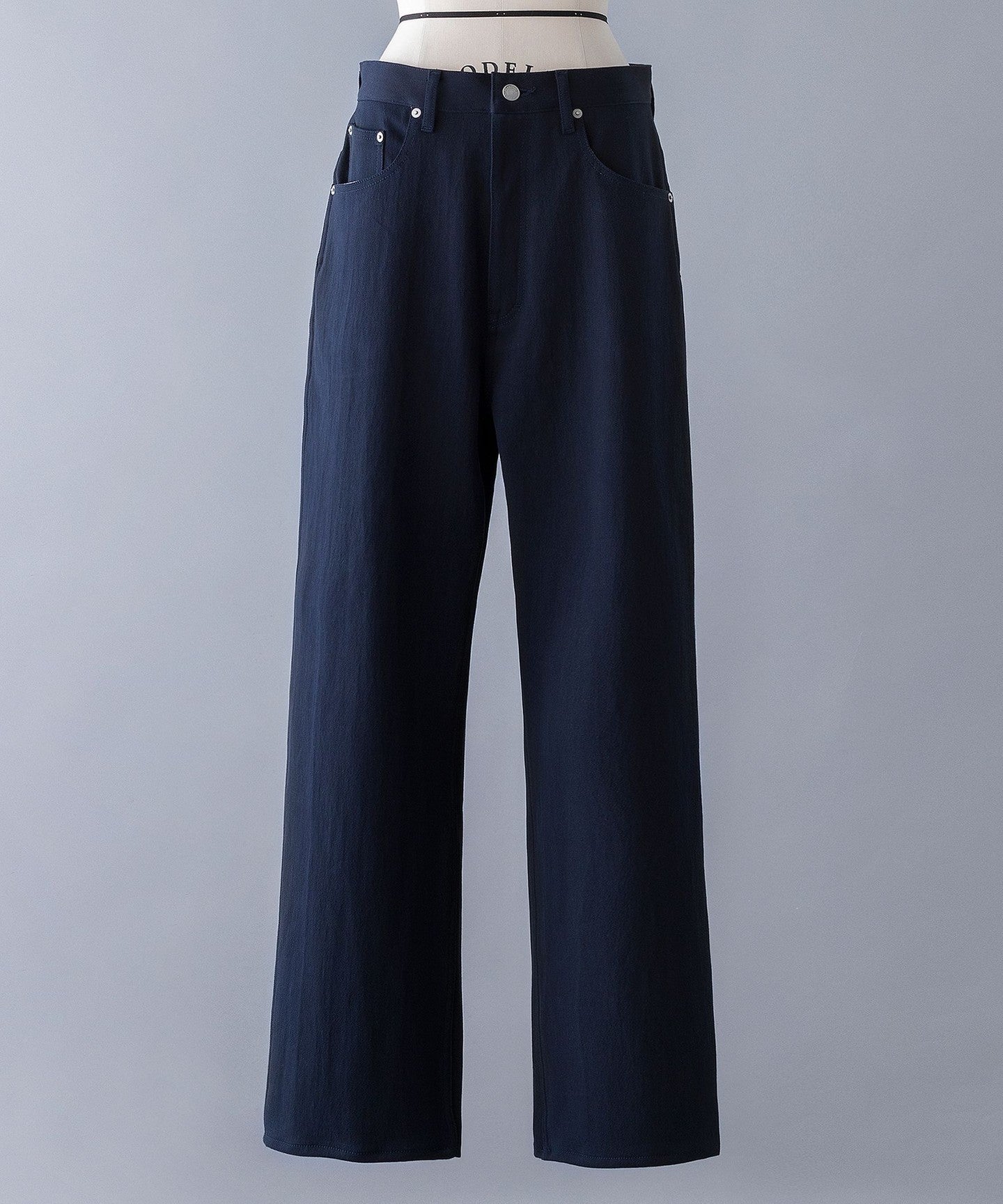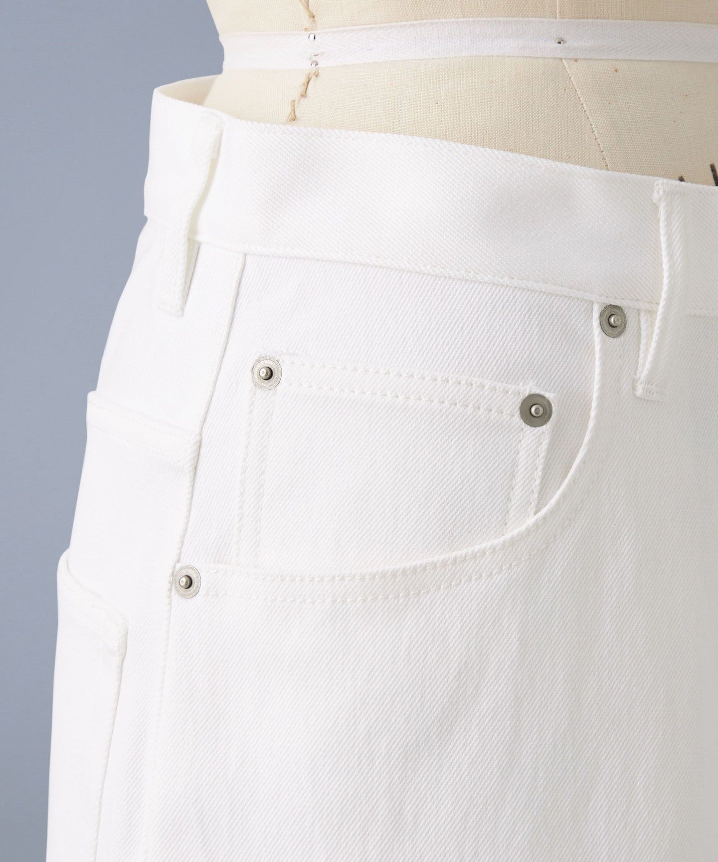 The fabric is medium-weight and has just the right amount of stretch. We recommend adjusting the waist with your own belt and fastening it at a position that suits your style for a relaxed look.