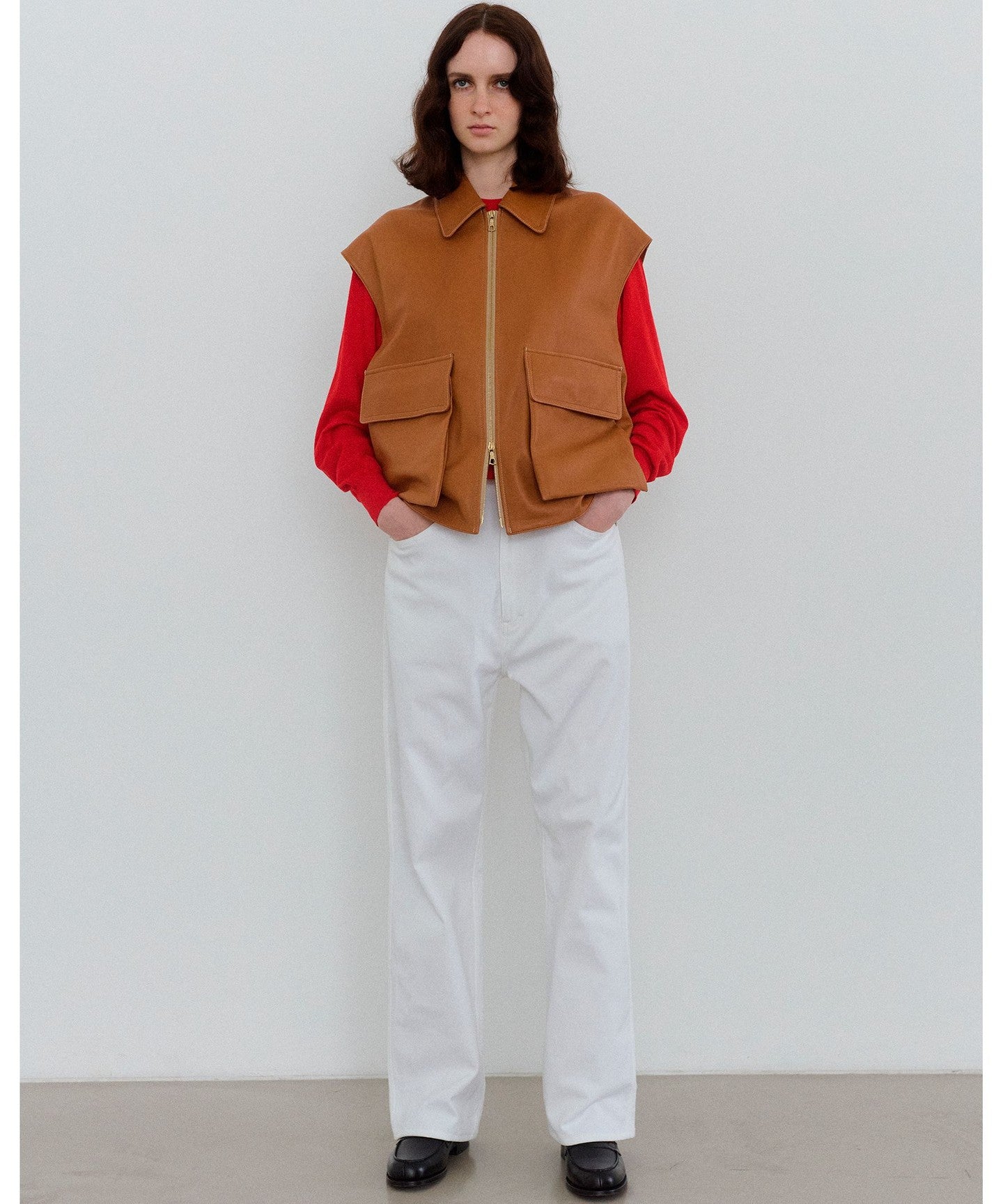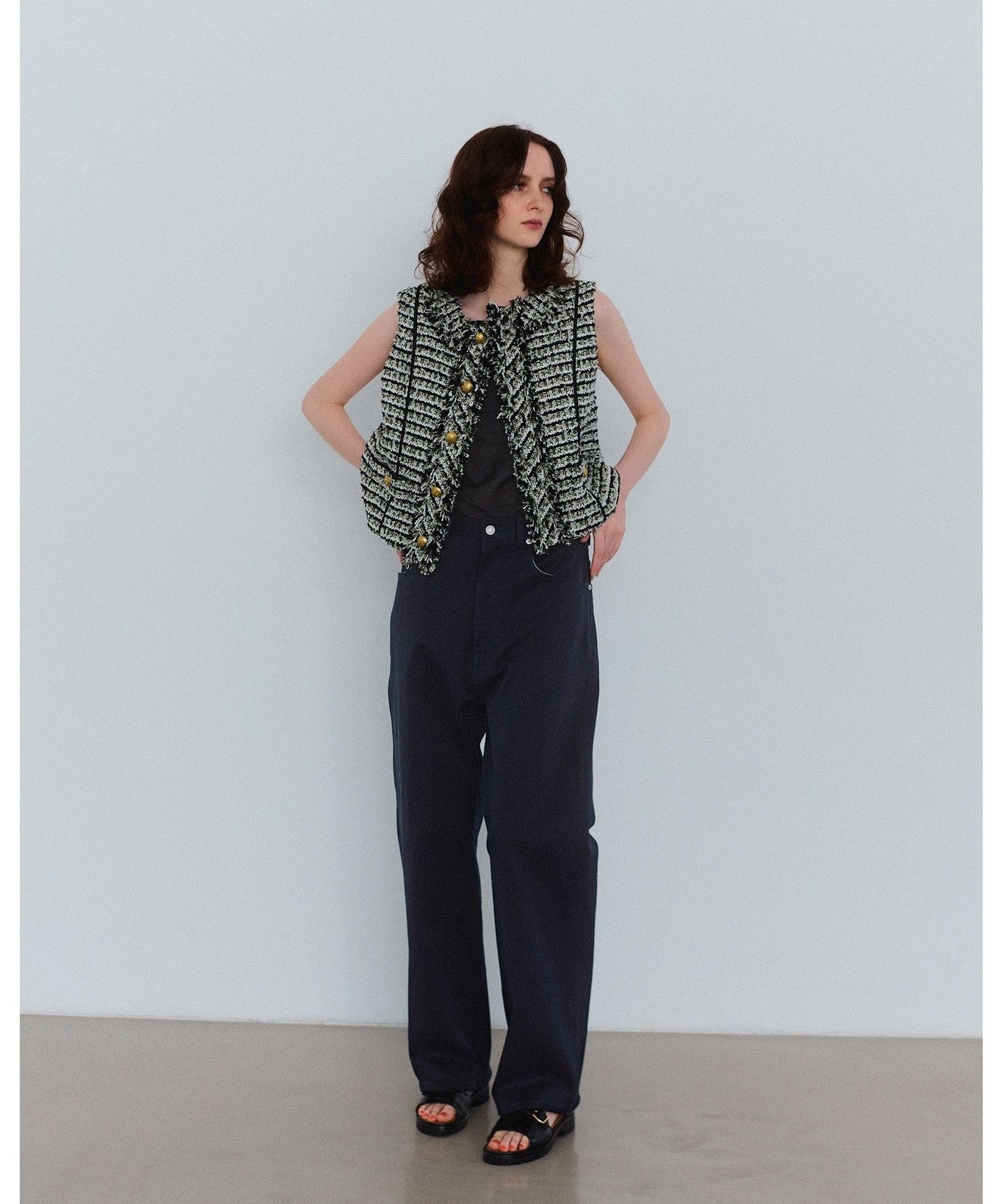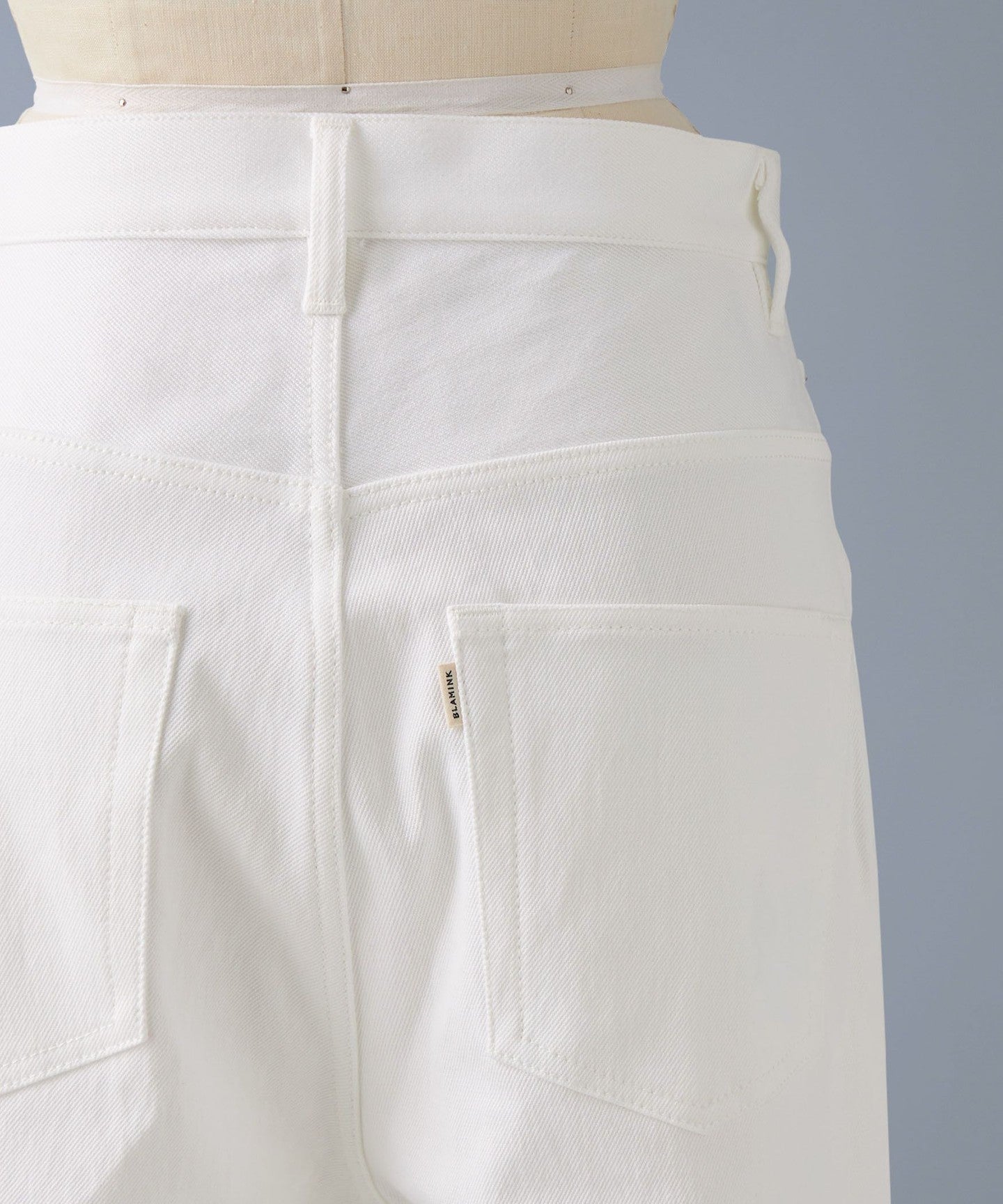 The fabric is medium-weight and has just the right amount of stretch. We recommend adjusting the waist with your own belt and fastening it at a position that suits your style for a relaxed look.