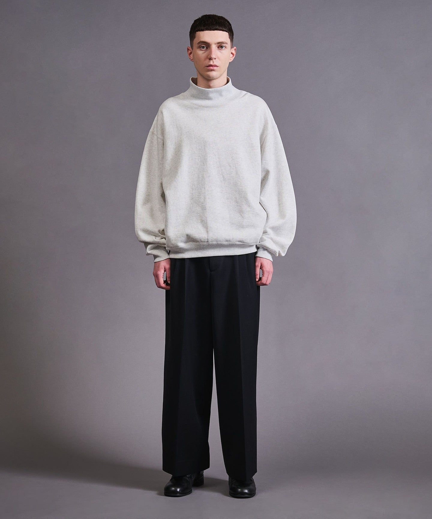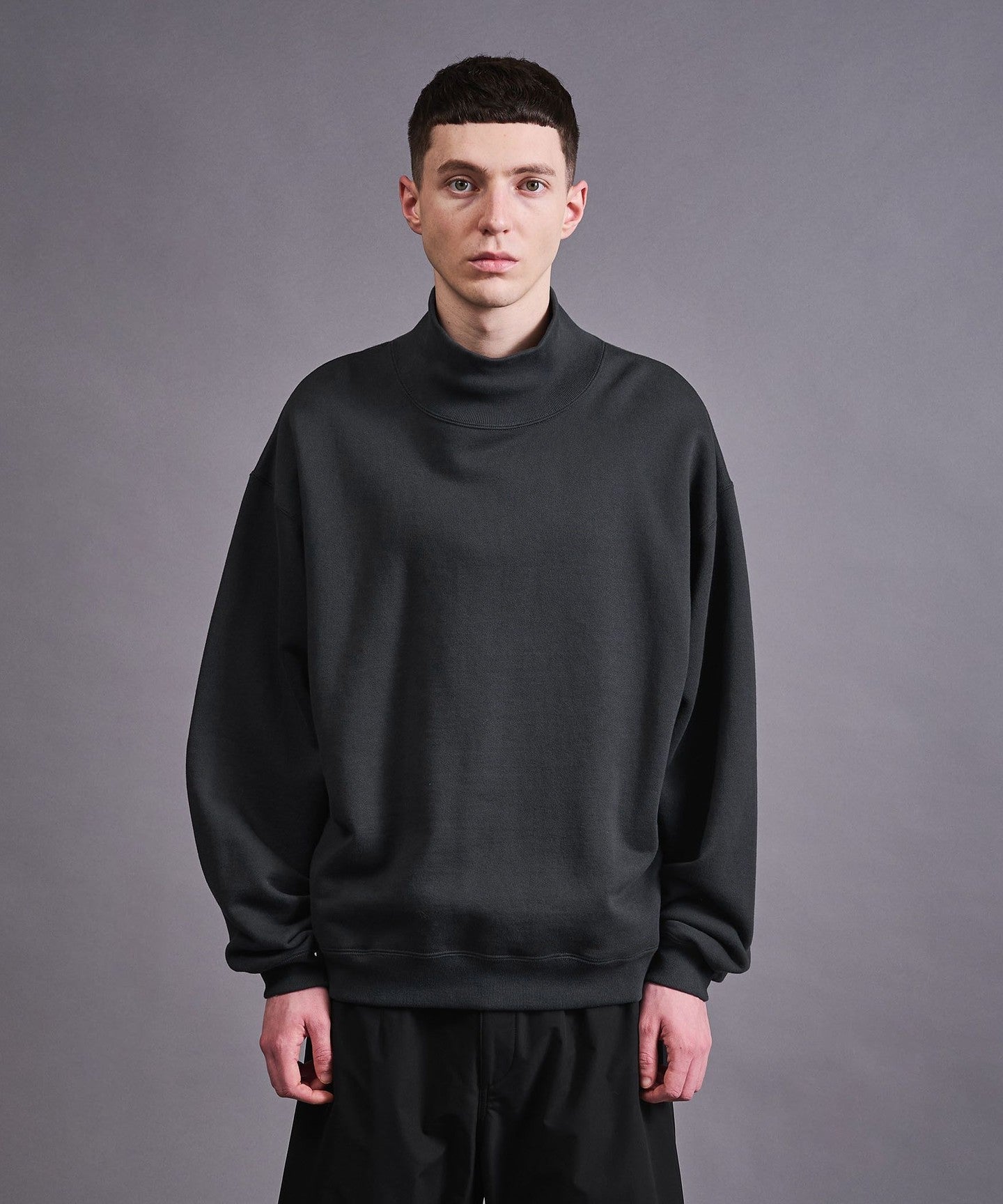 A high-neck sweatshirt made with thick, fleshy fleece (lightly brushed on the back).