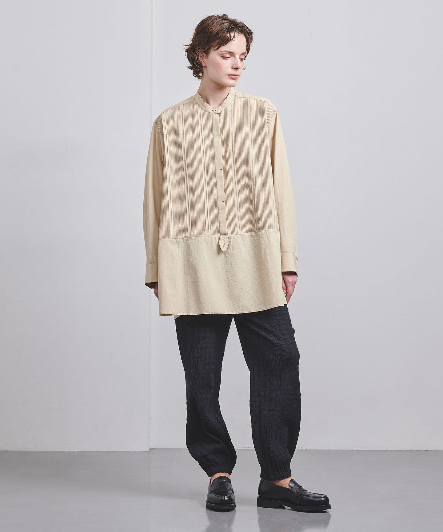 Although it has a relaxed silhouette, the band collar gives it a clean and elegant feel.