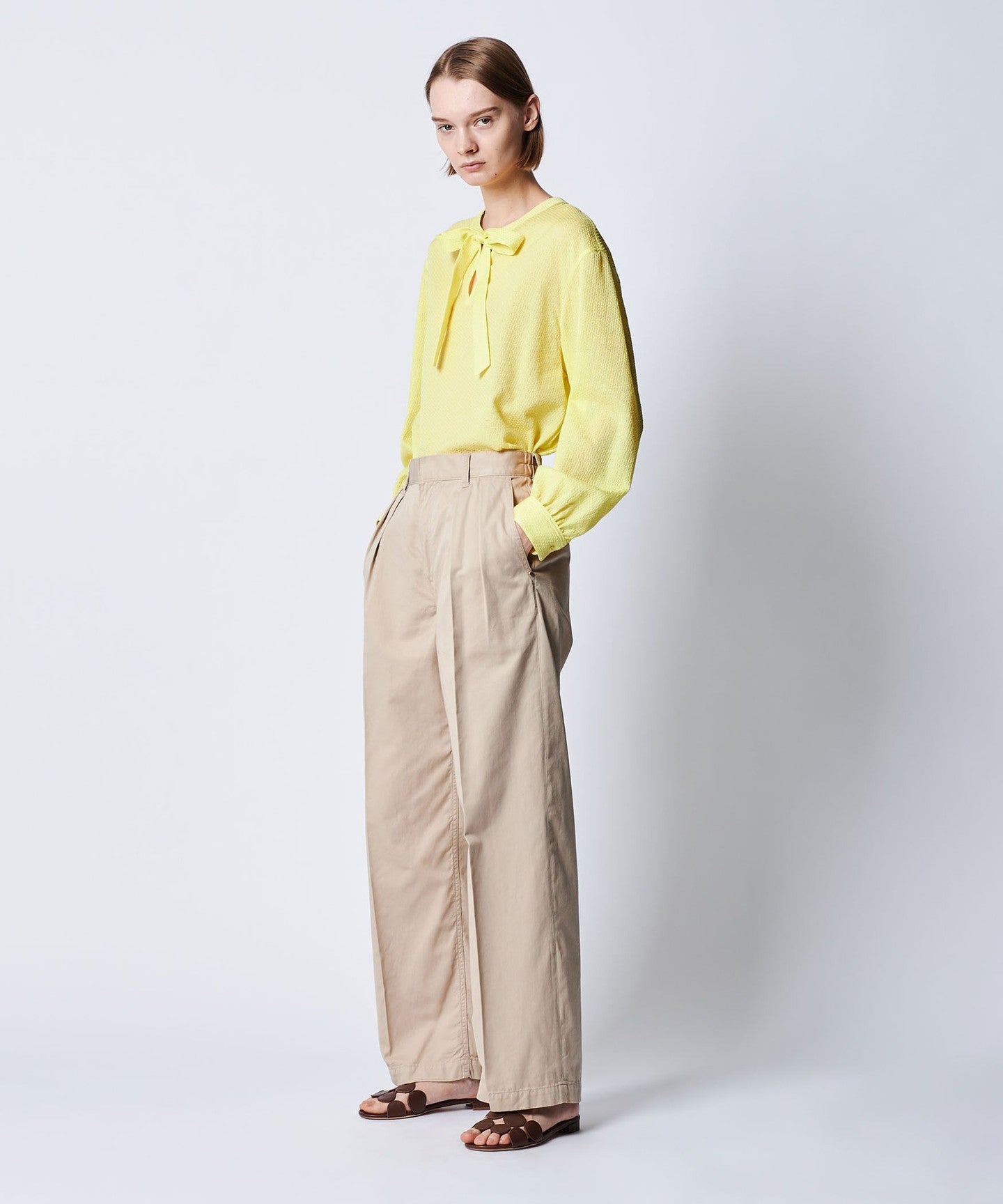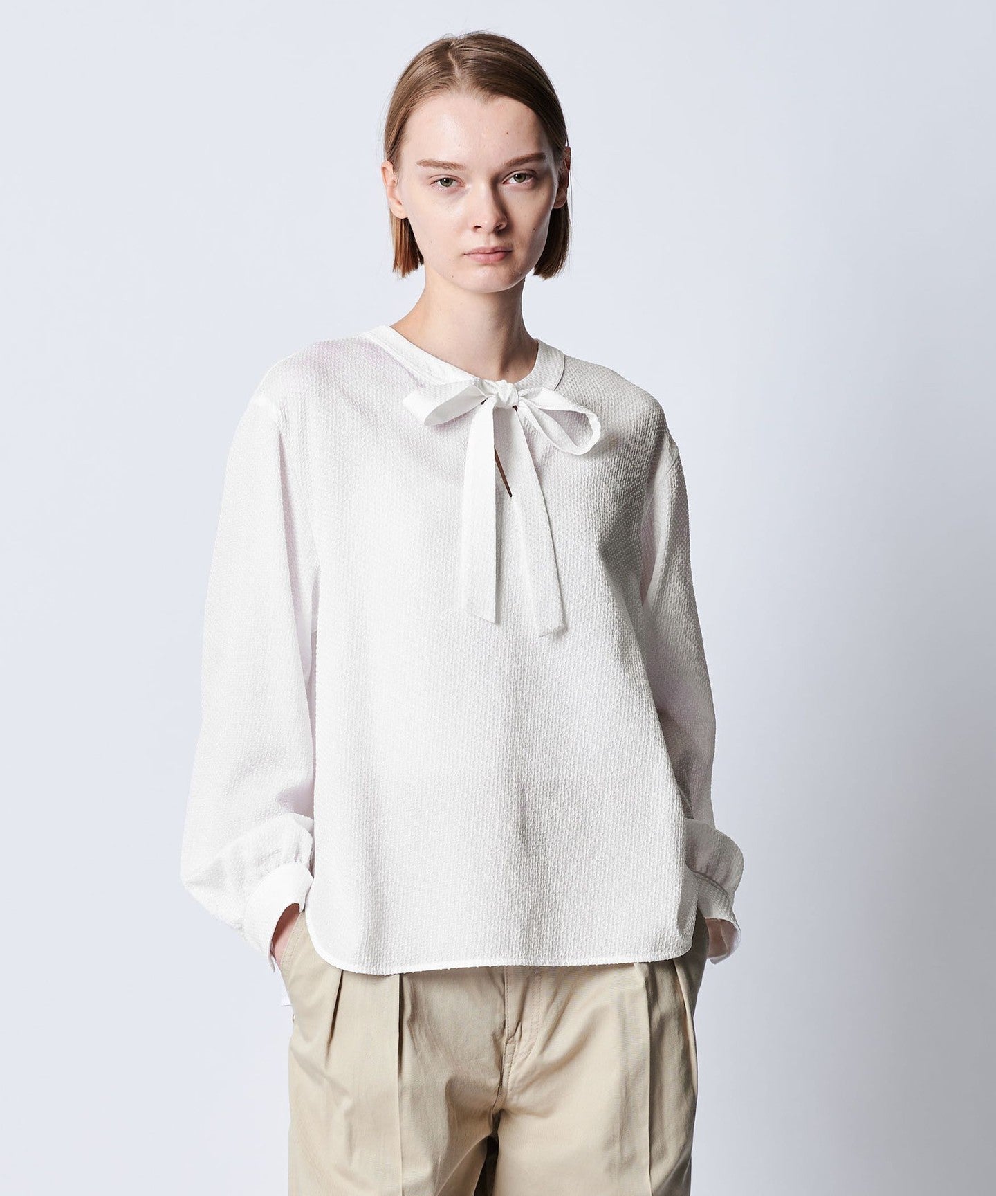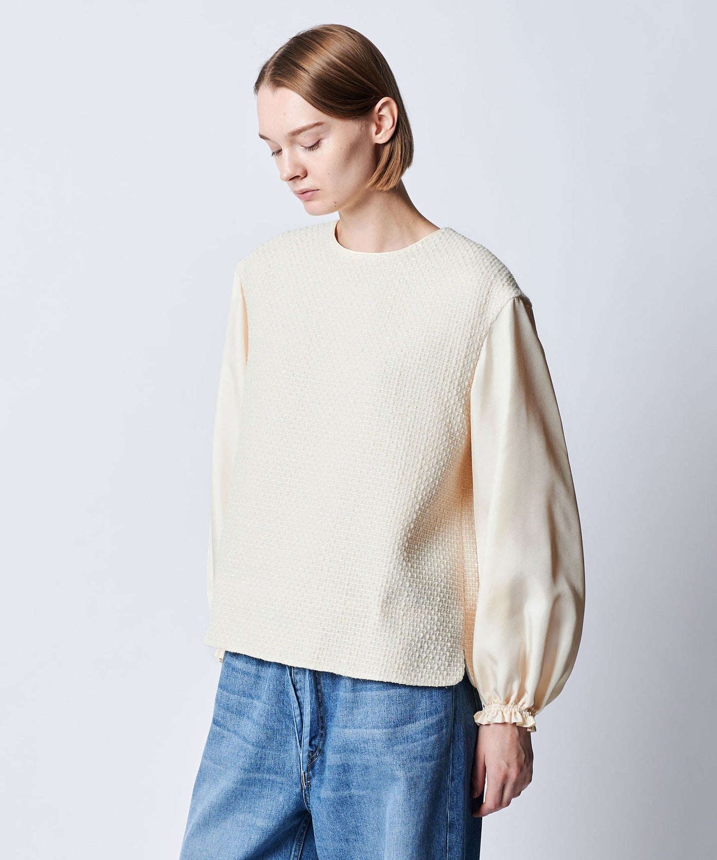 DRAWERRESORT1 Silk Taffeta Gathered Sleeve Blouse