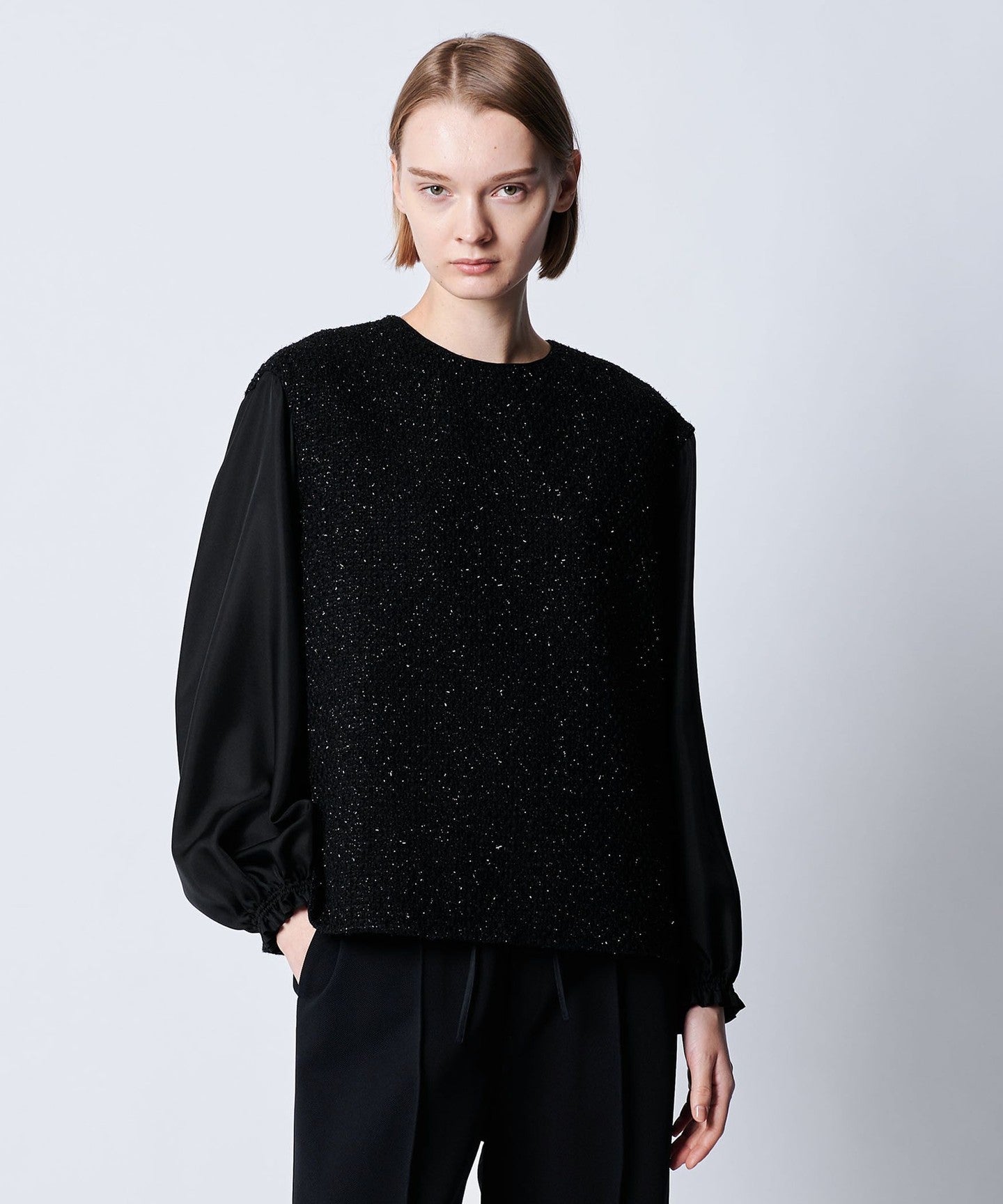 DRAWERRESORT1 Glitter Tweed Long Sleeve Blouse