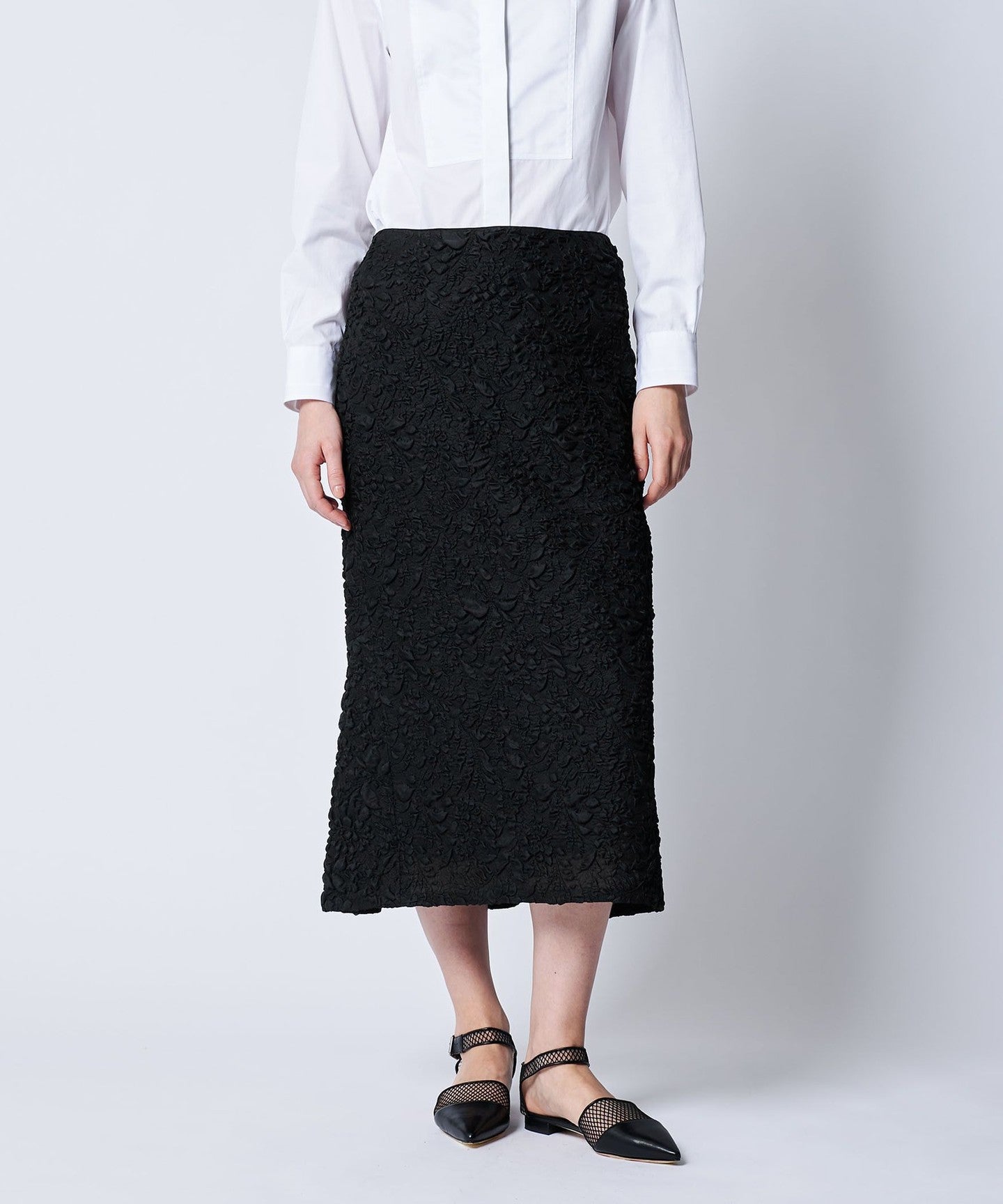 DRAWERRESORT1 Flower Jacquard Gathered Skirt