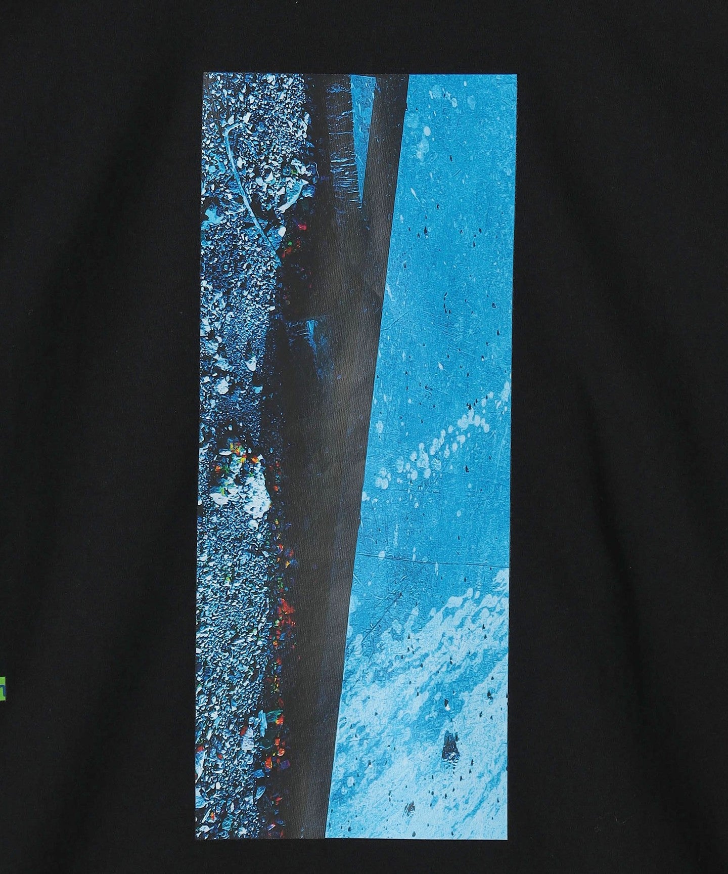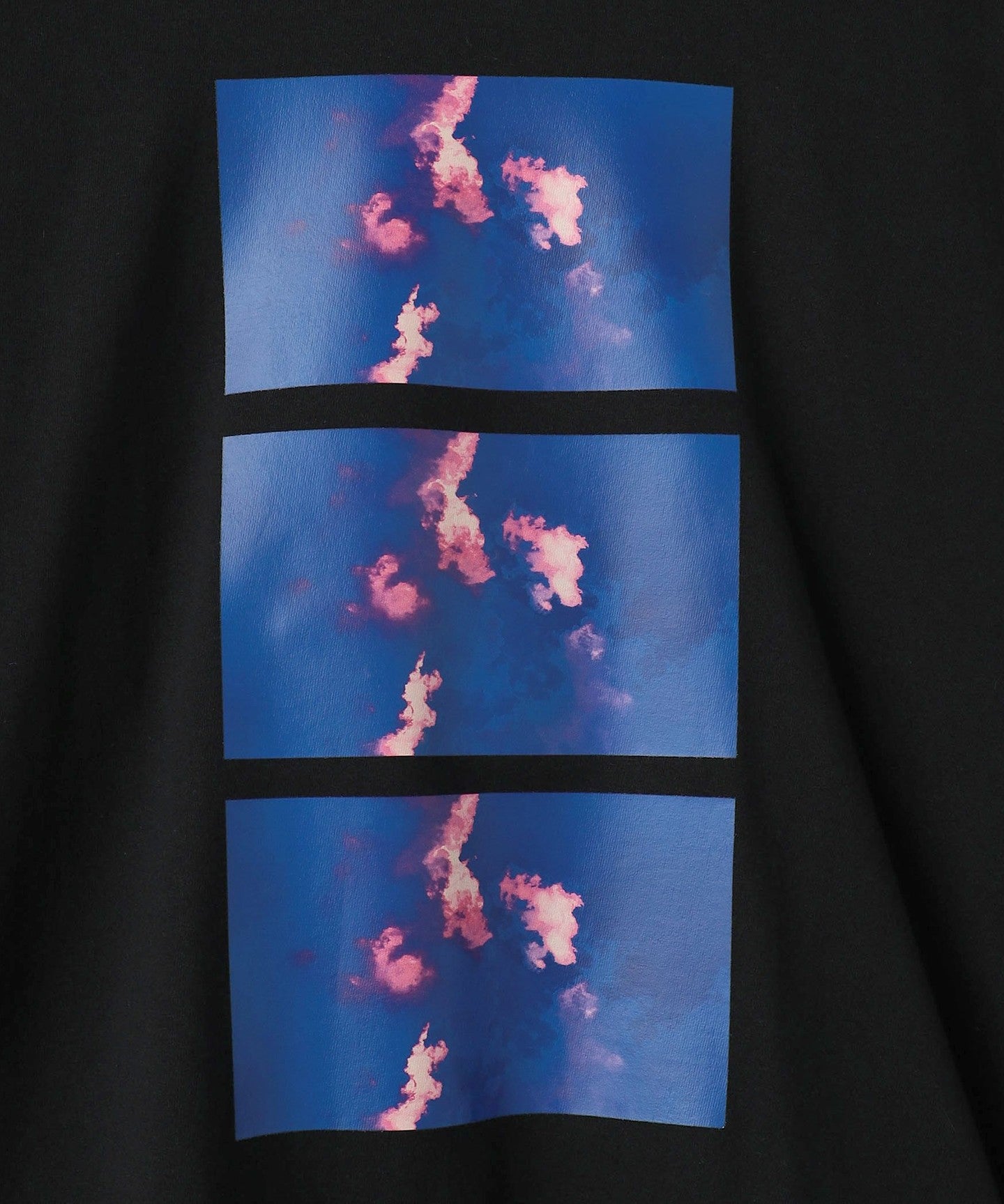 The graphic motif of the long-sleeved T-shirt uses the grounds and sky of Stadium City, which is currently under construction.
