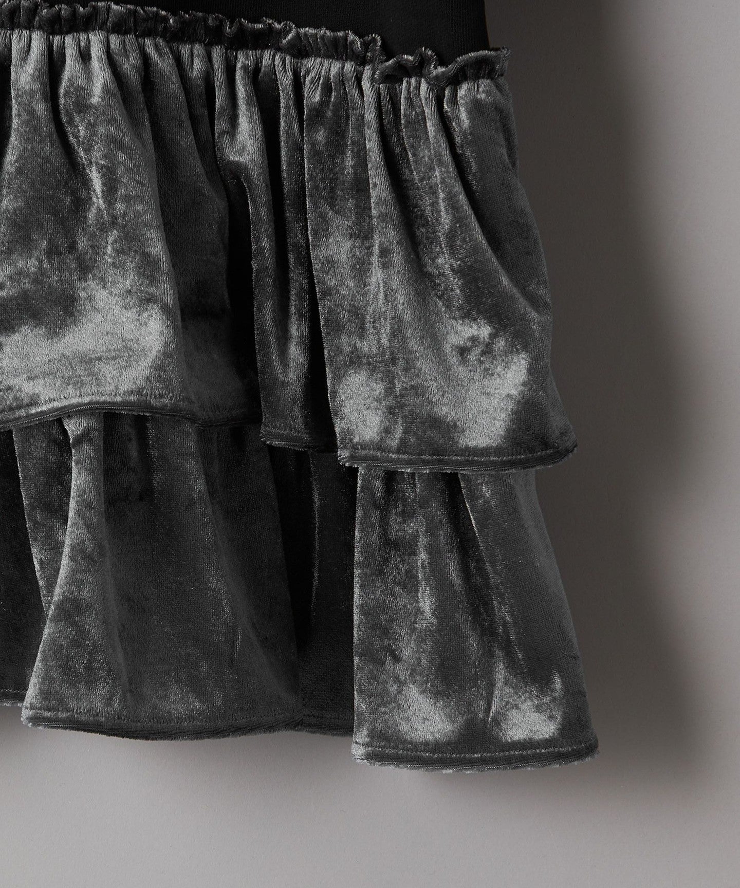 The voluminous sleeves and gathered velvet give it a glamorous look.