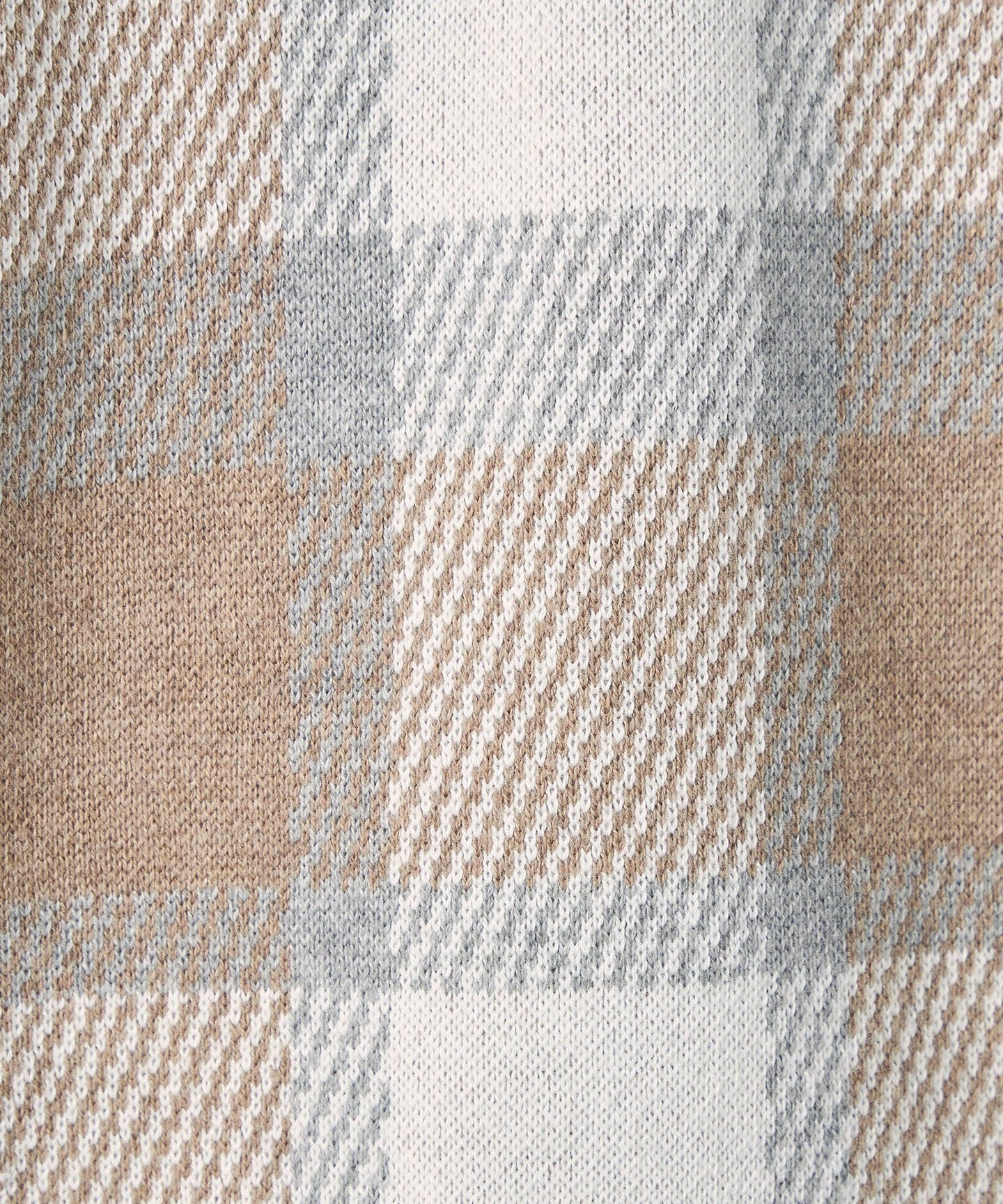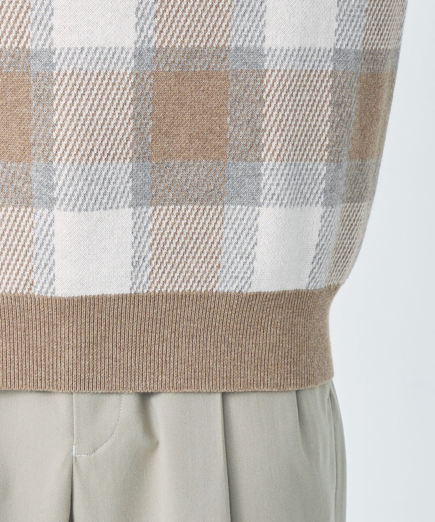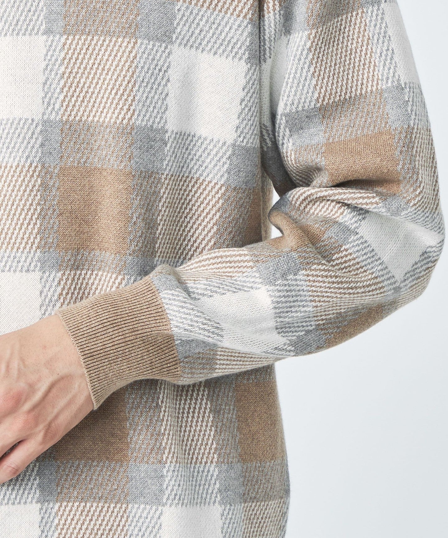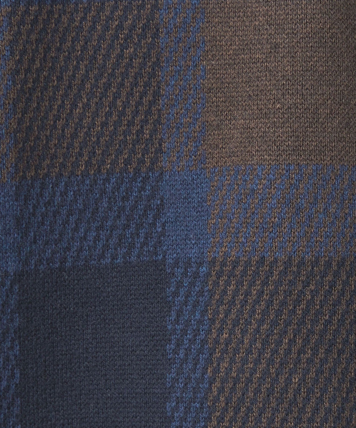 The check pattern is expressed in jacquard knitting, giving it a deep look.