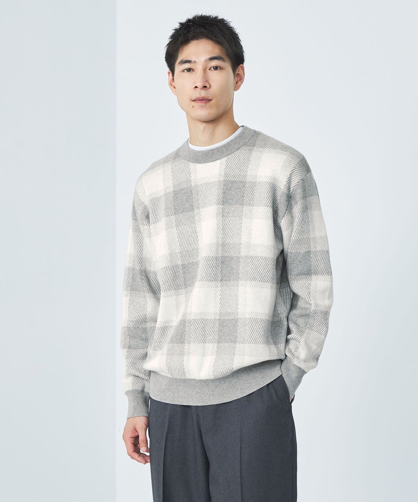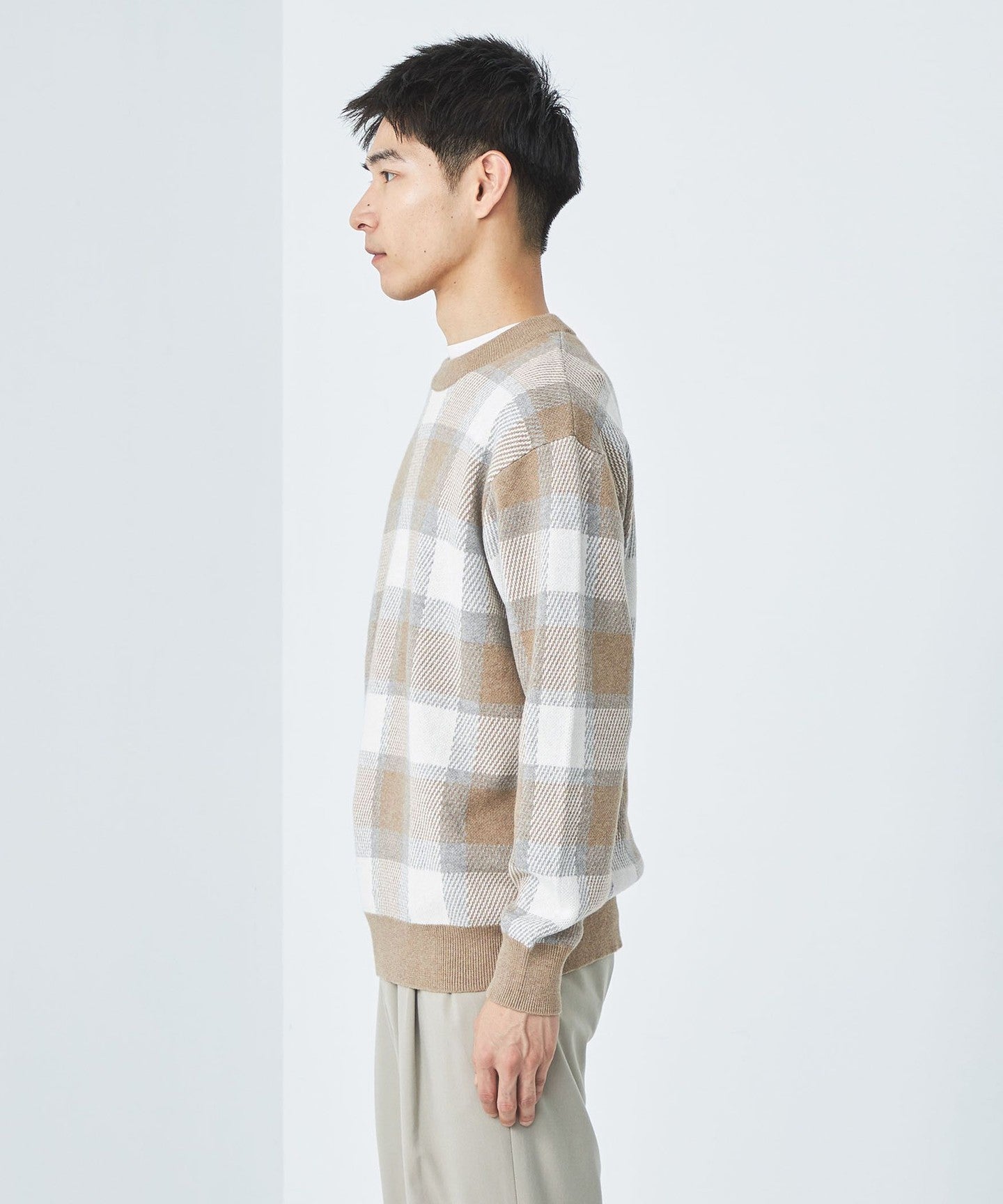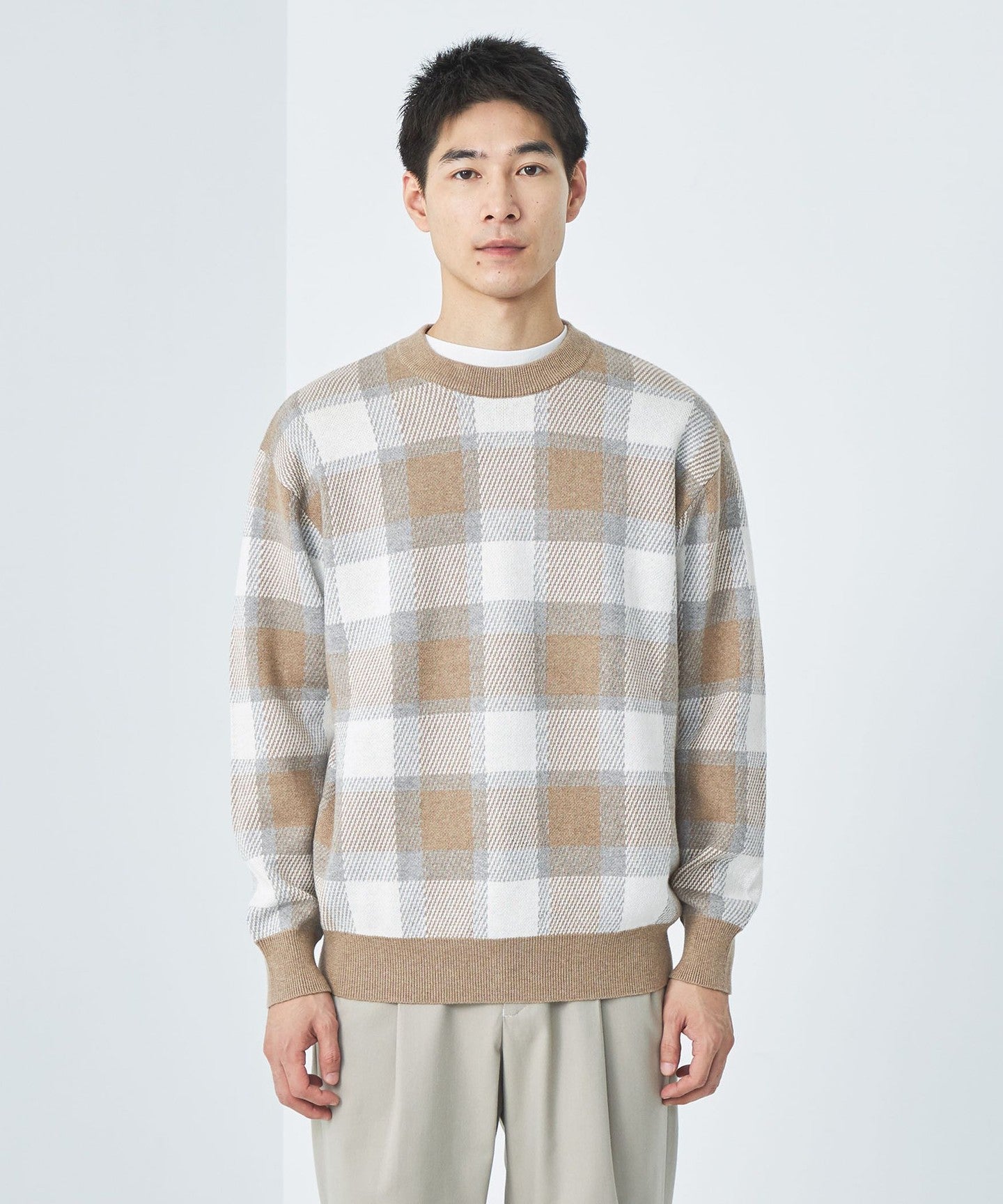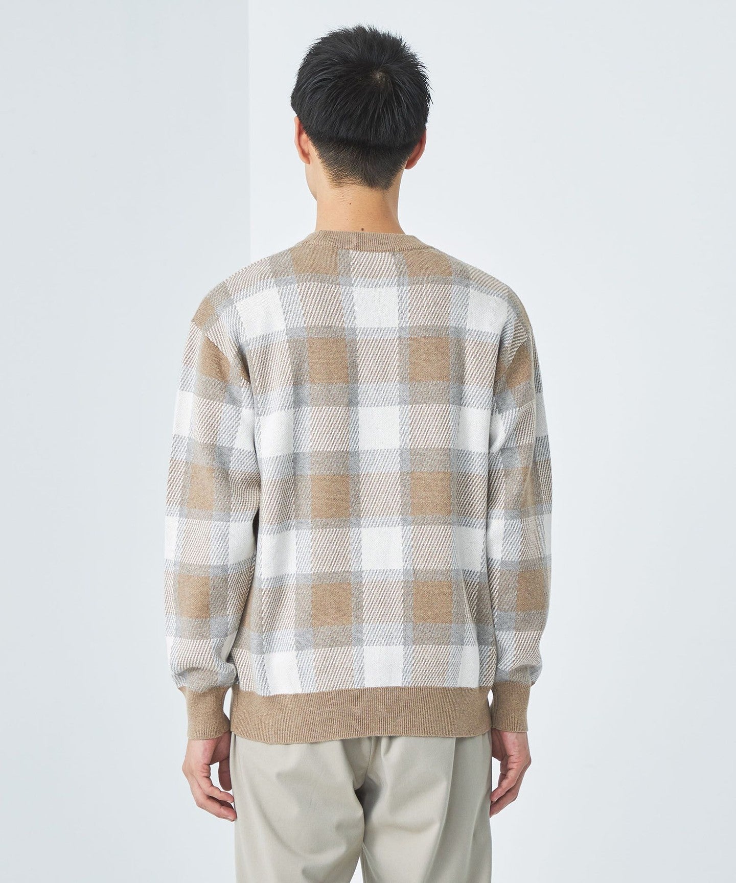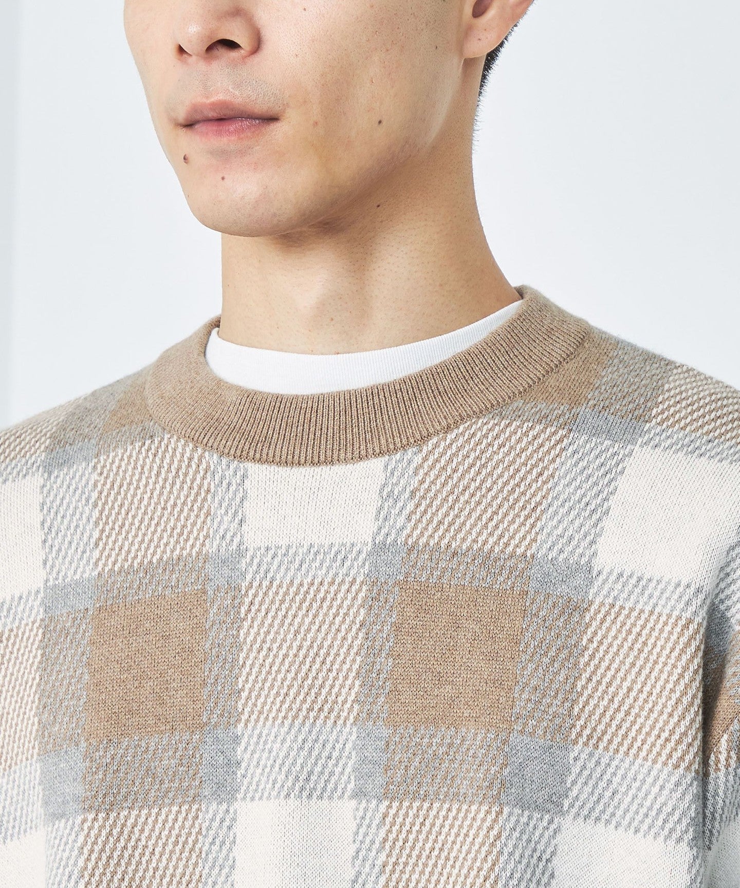 The check pattern is expressed in jacquard knitting, giving it a deep look.