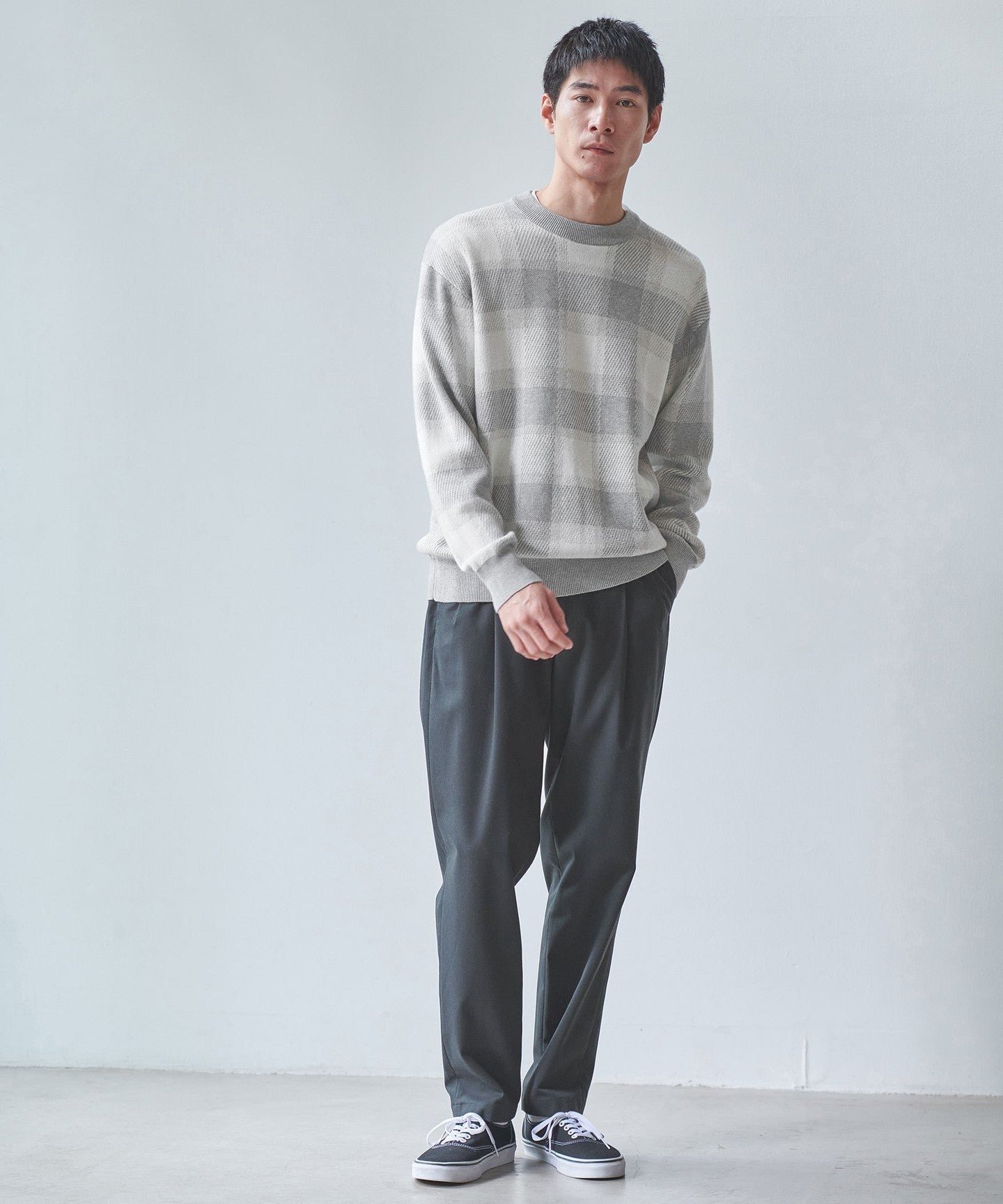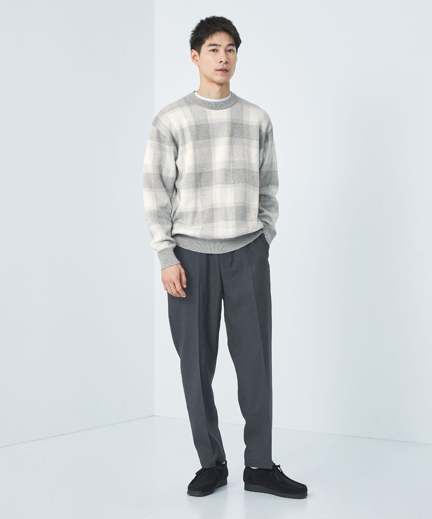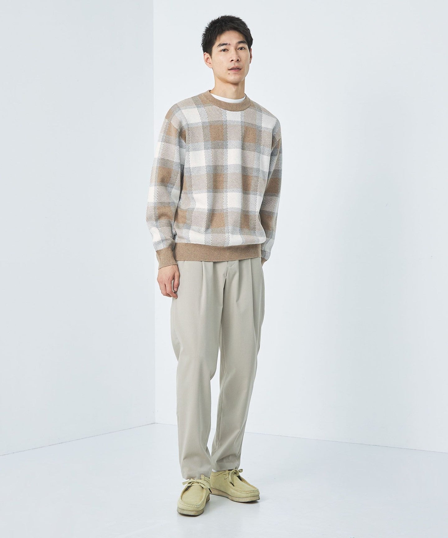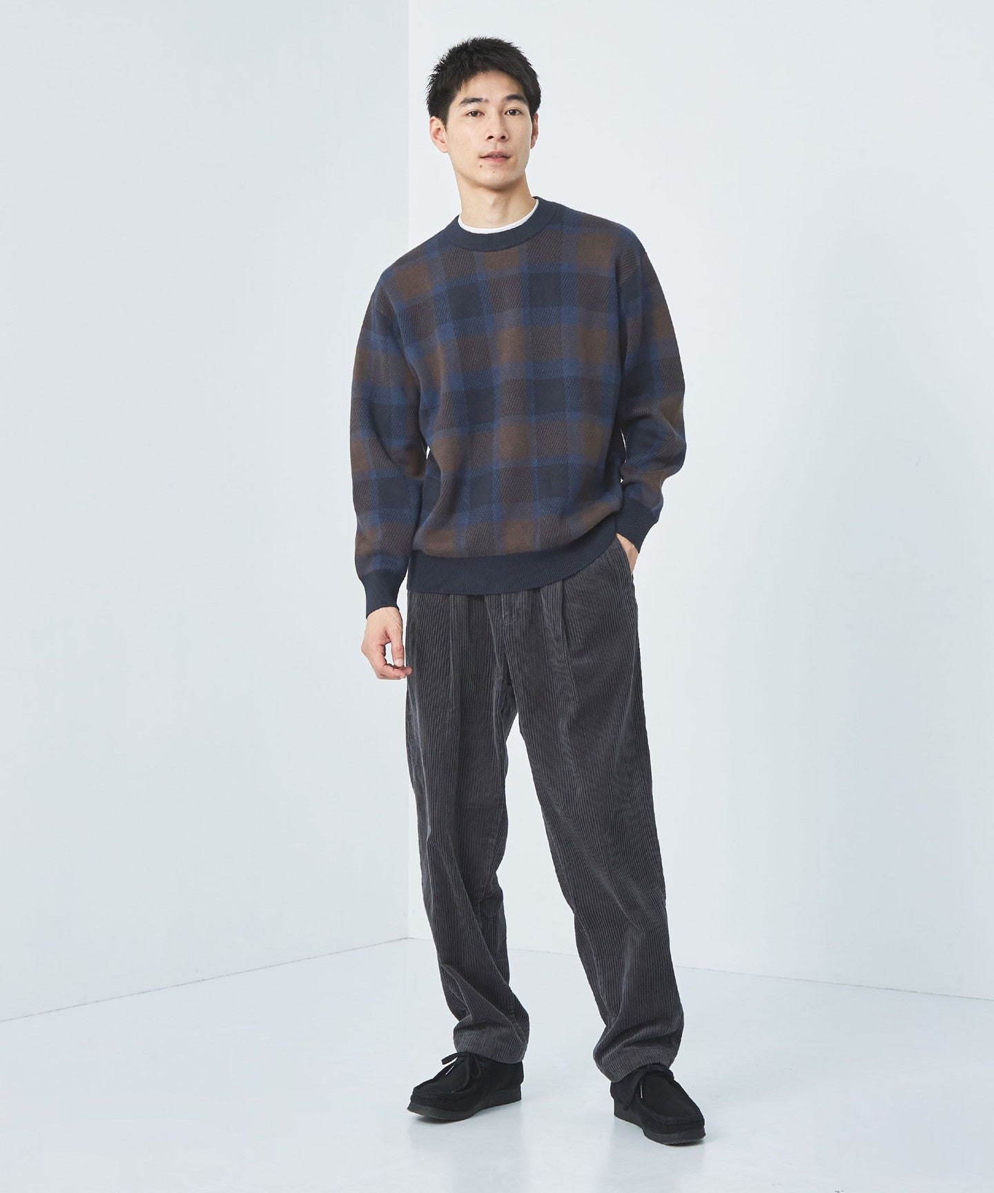 The check pattern is expressed in jacquard knitting, giving it a deep look.