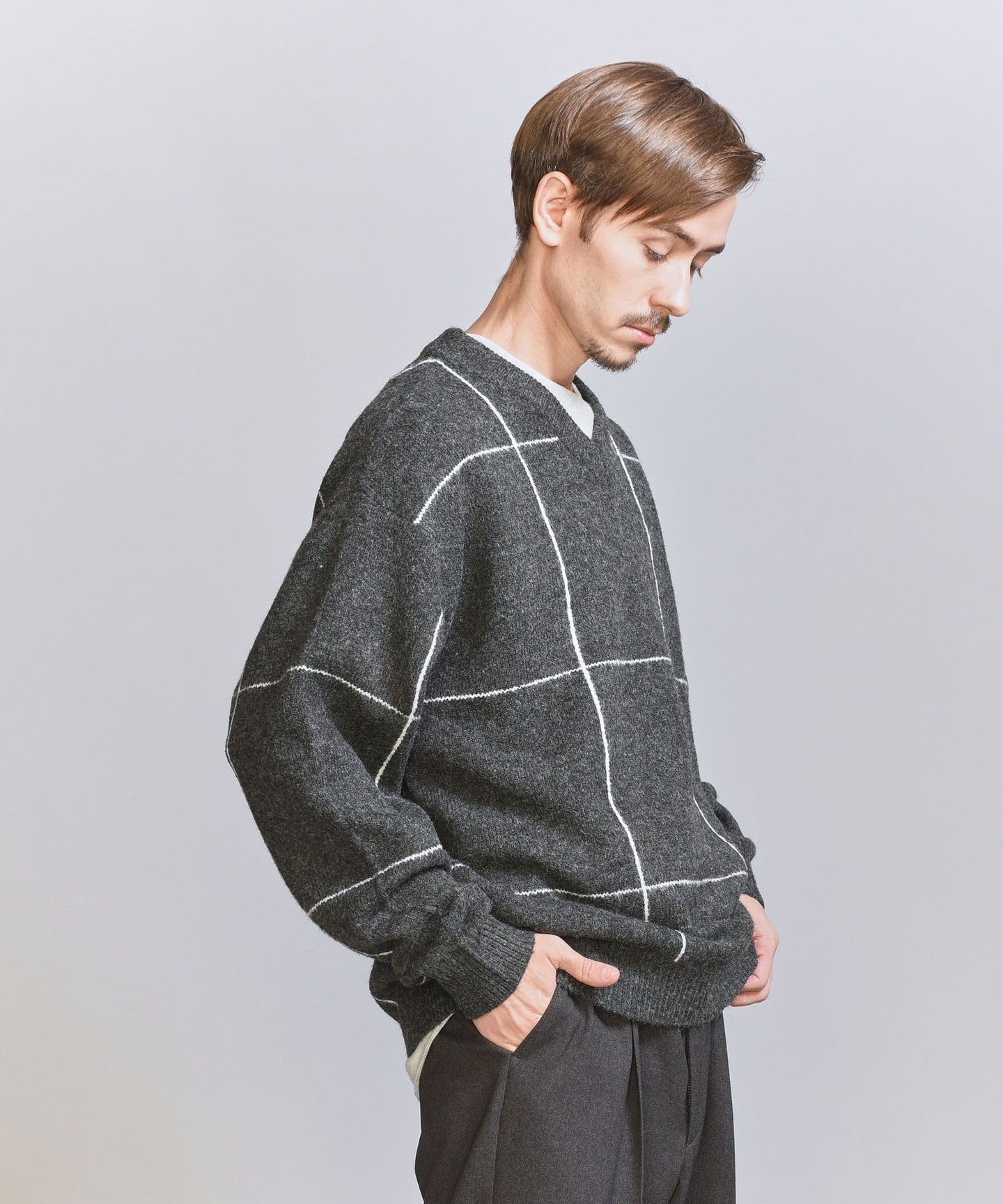 Hairy window pen V-neck KNIT
