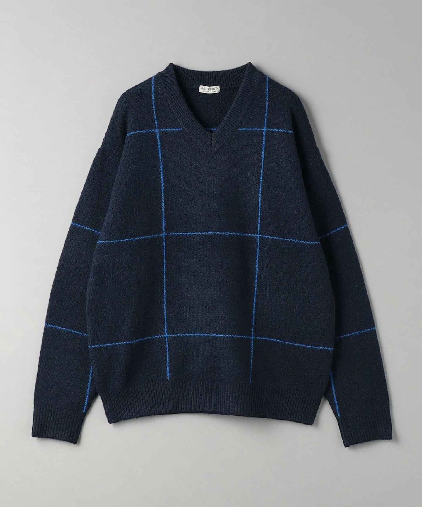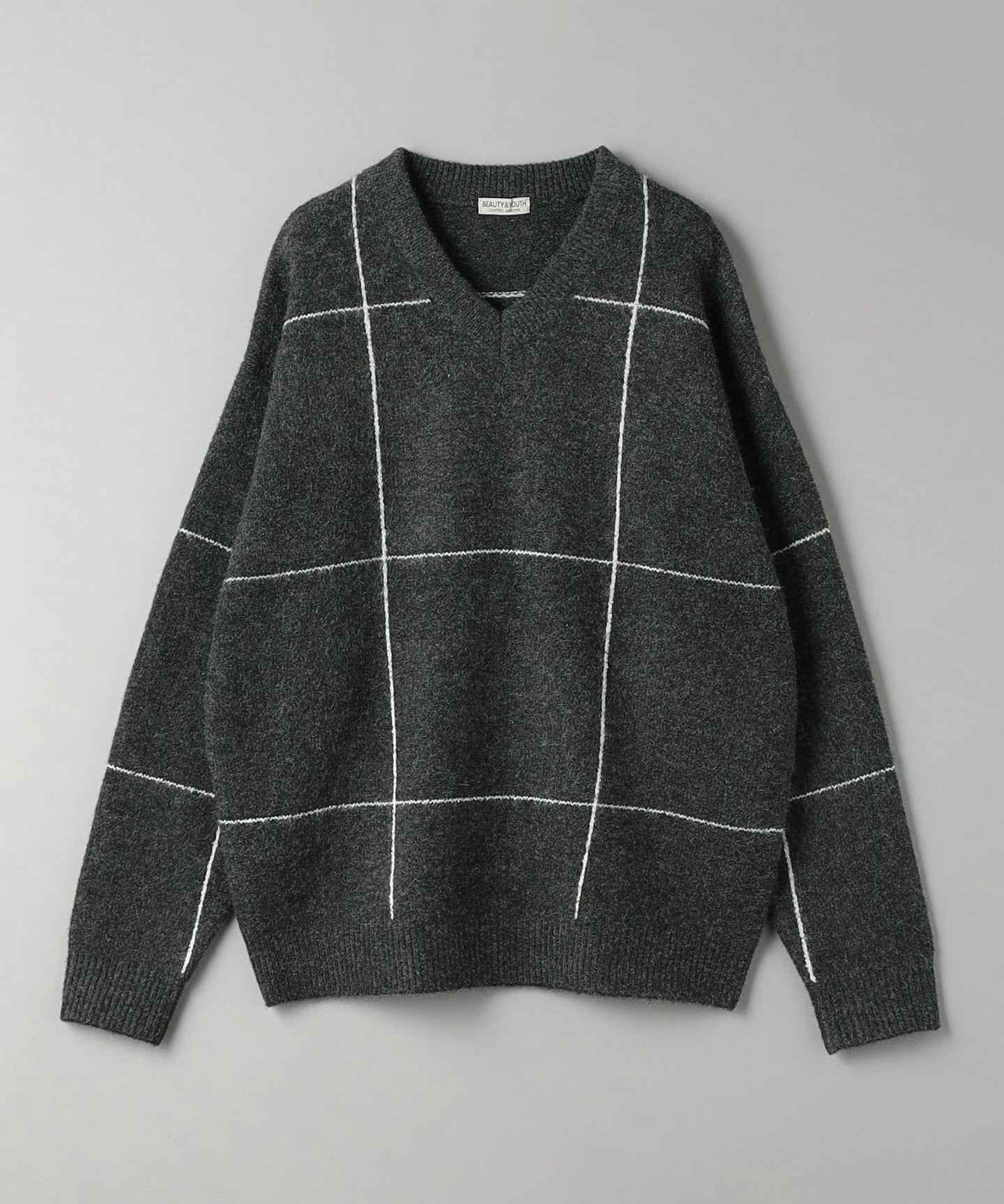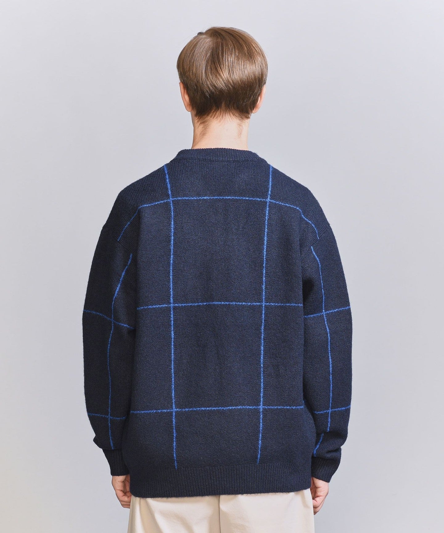 The windowpane pattern adds an accent, making it a statement piece even with simple styling. KNIT is.
