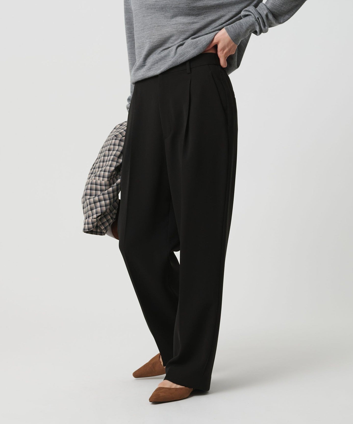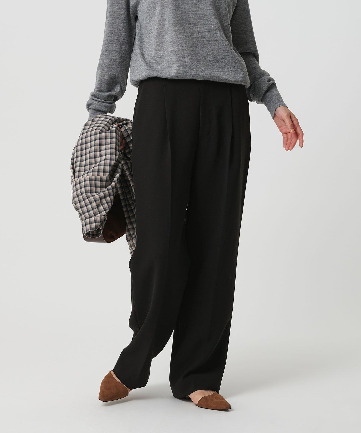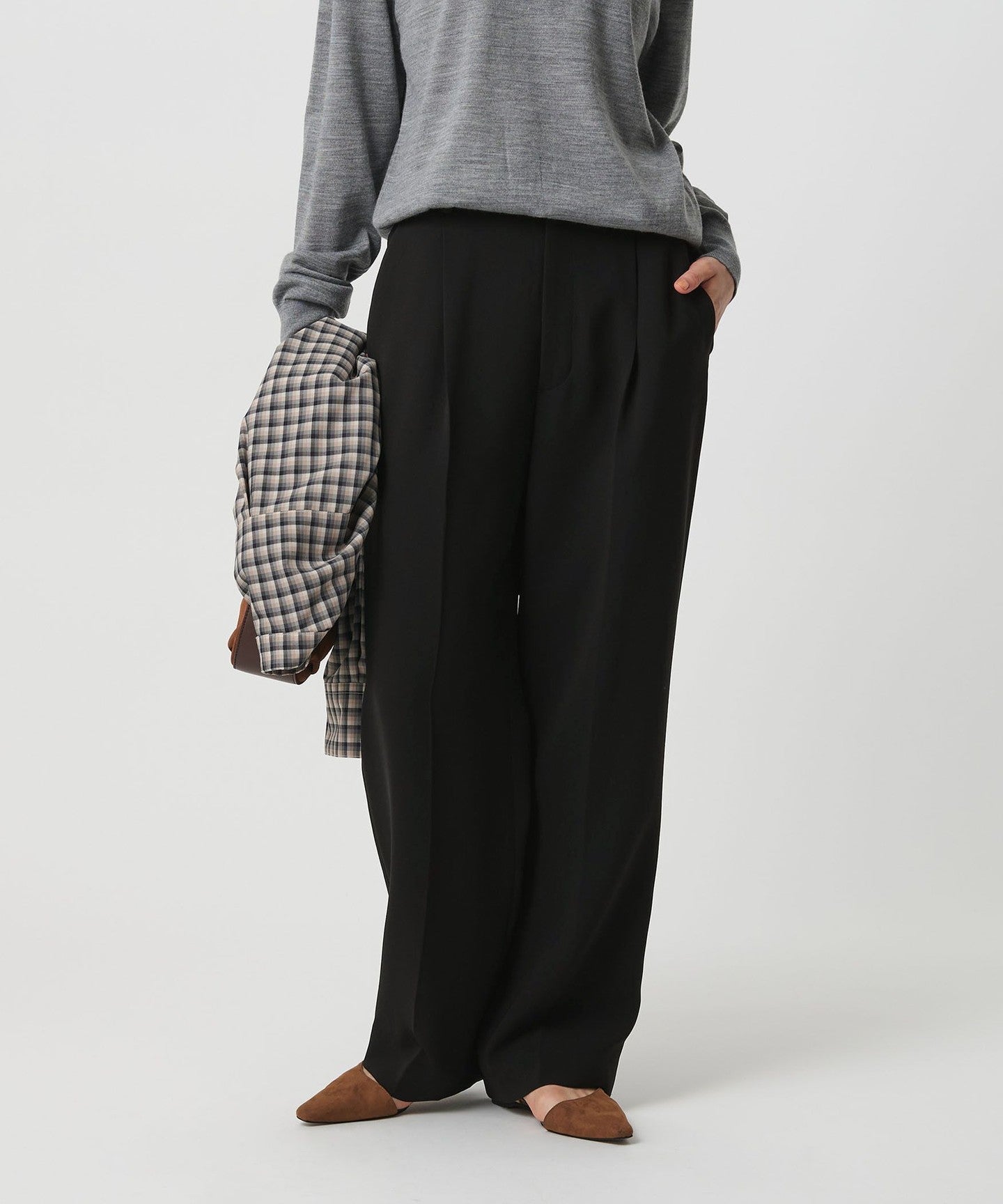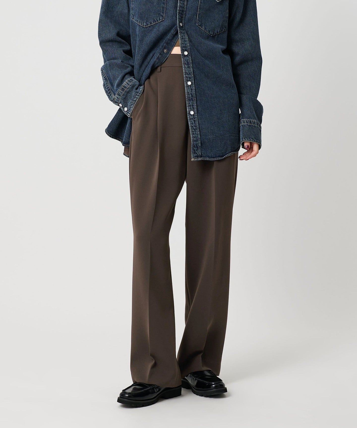 The high waist wraps around the waist, and the center crease with repeated tucks makes it both comfortable to wear and looks stylish.