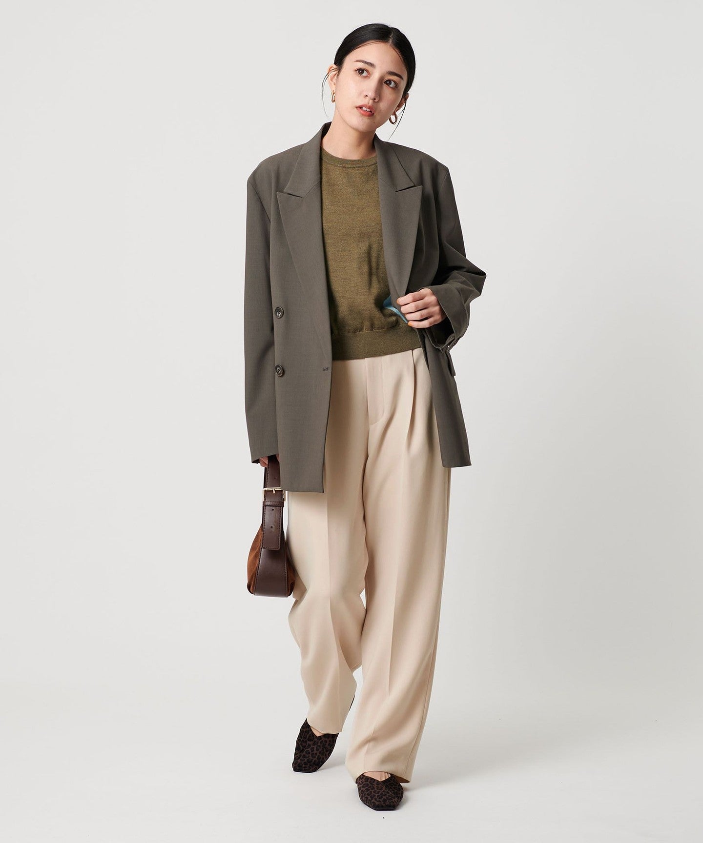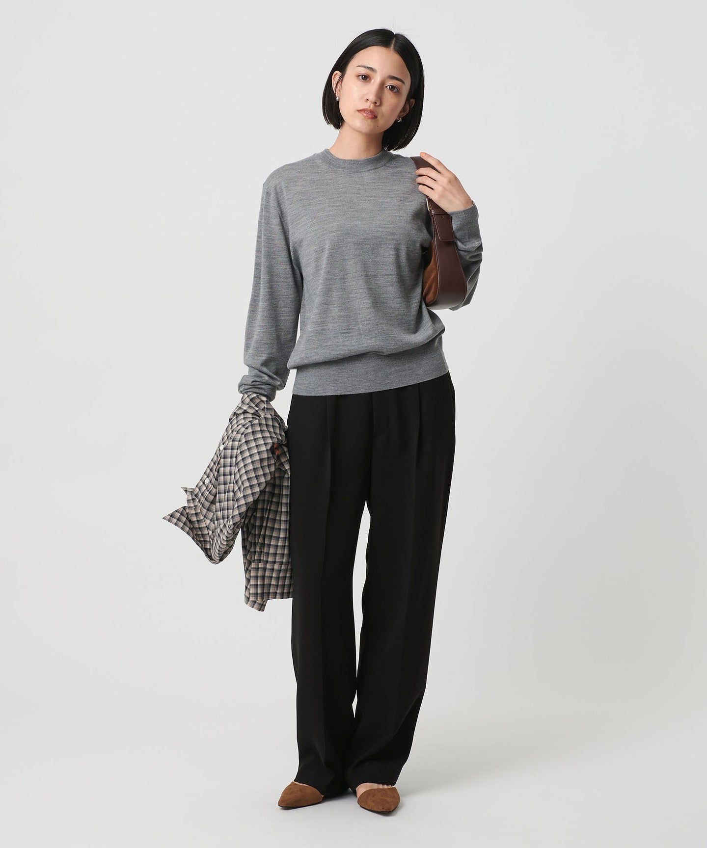 It can be worn with a wide range of items, from casual items such as sweatshirt pullovers and low-gauge knits to dressier outfits paired with jackets and pumps.