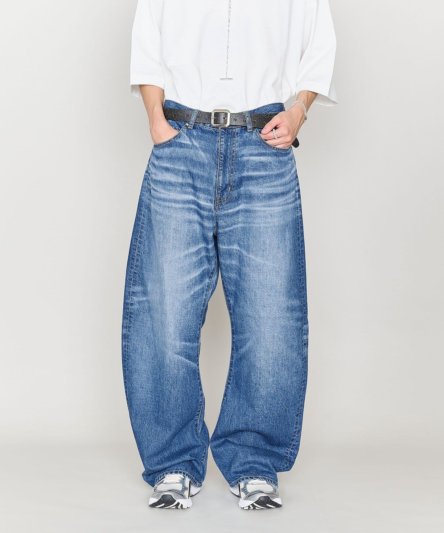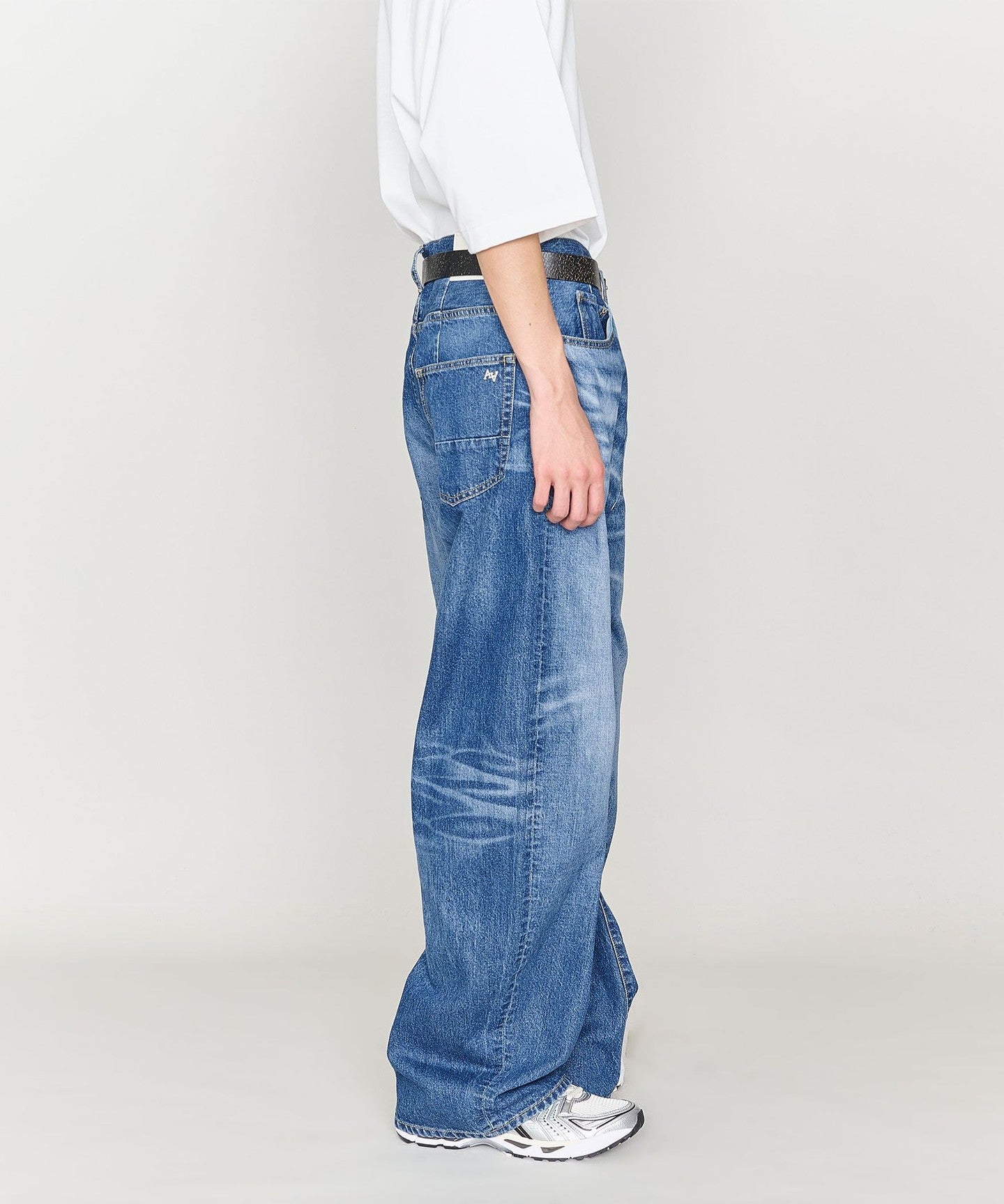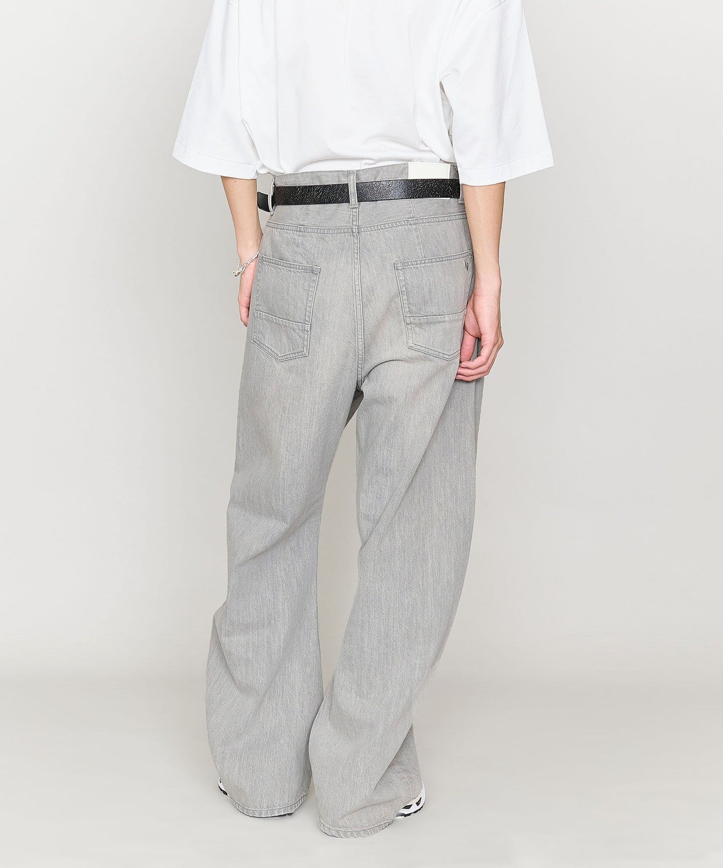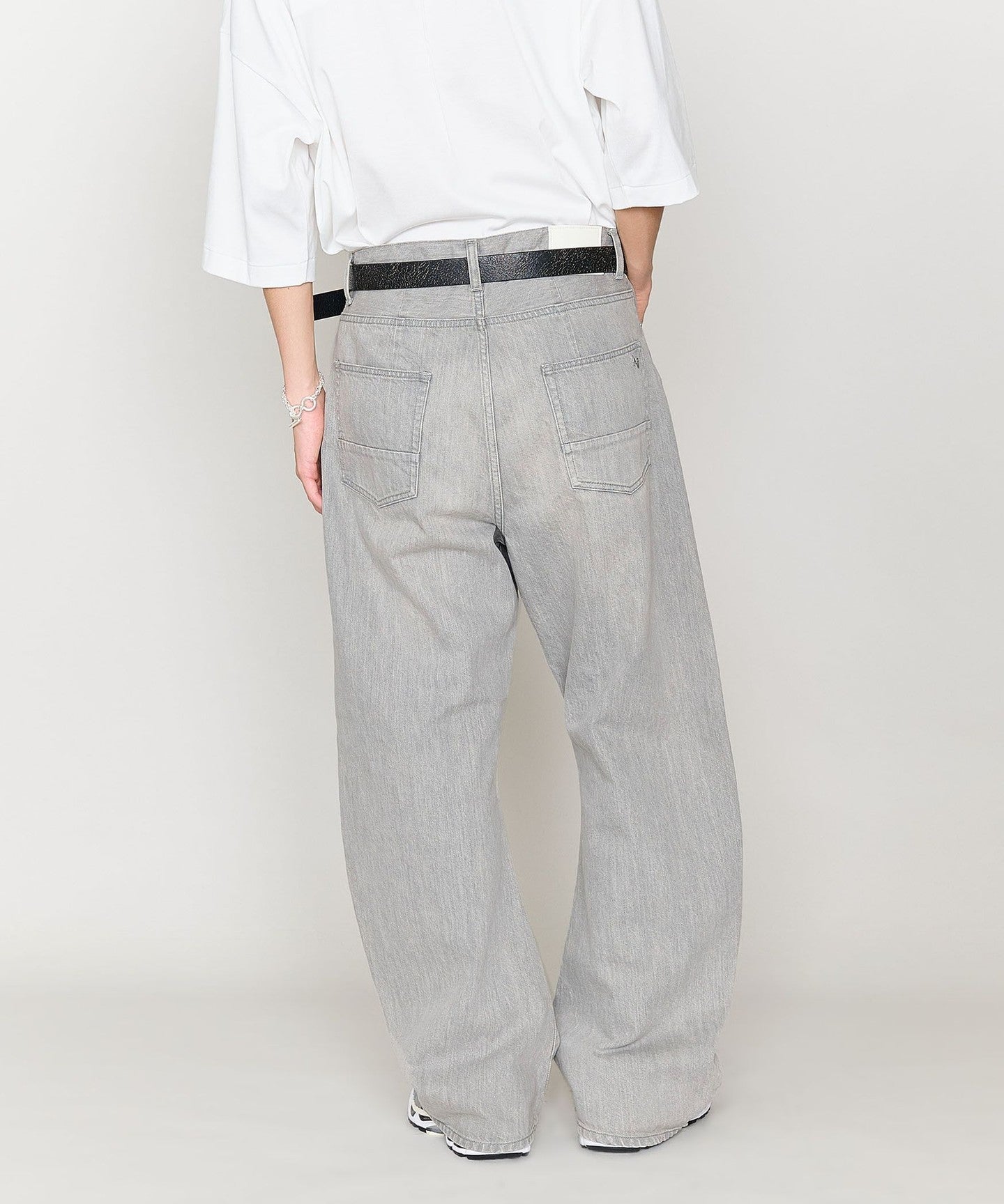 These denim pants have a curved silhouette with just the right amount of volume that gives them a striking look.