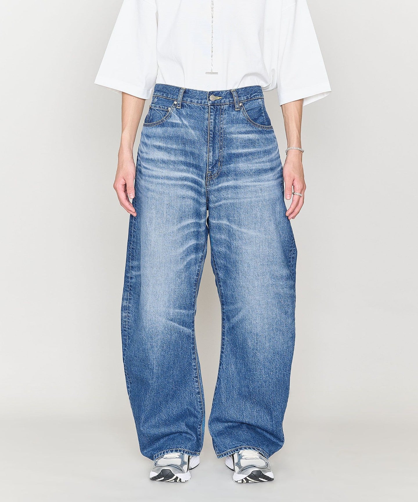 These denim pants are shaped like a barrel, like a monkey hanging from a tree.