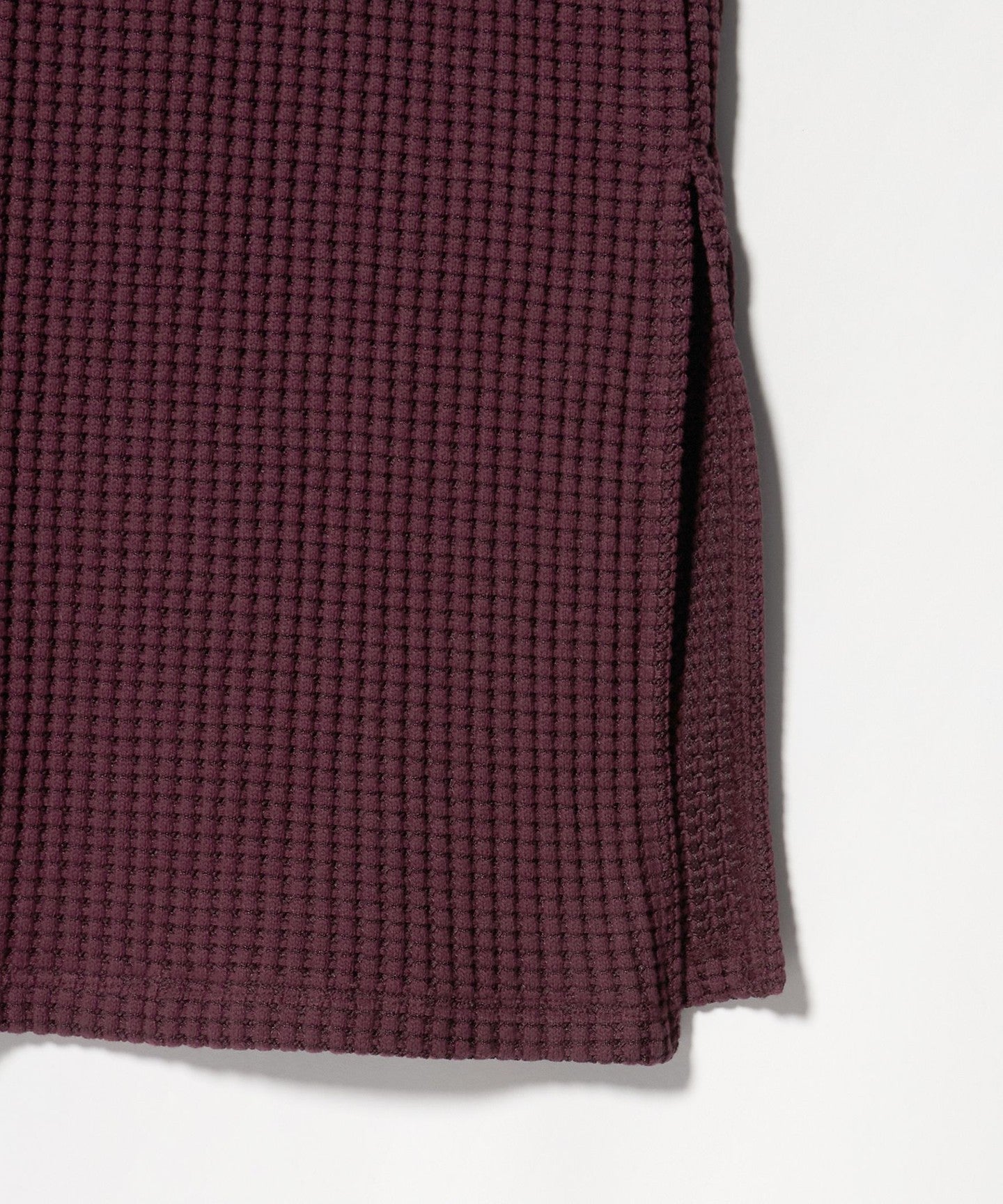 凹凸感のあるワッフルを使用したカットソーワンピース。