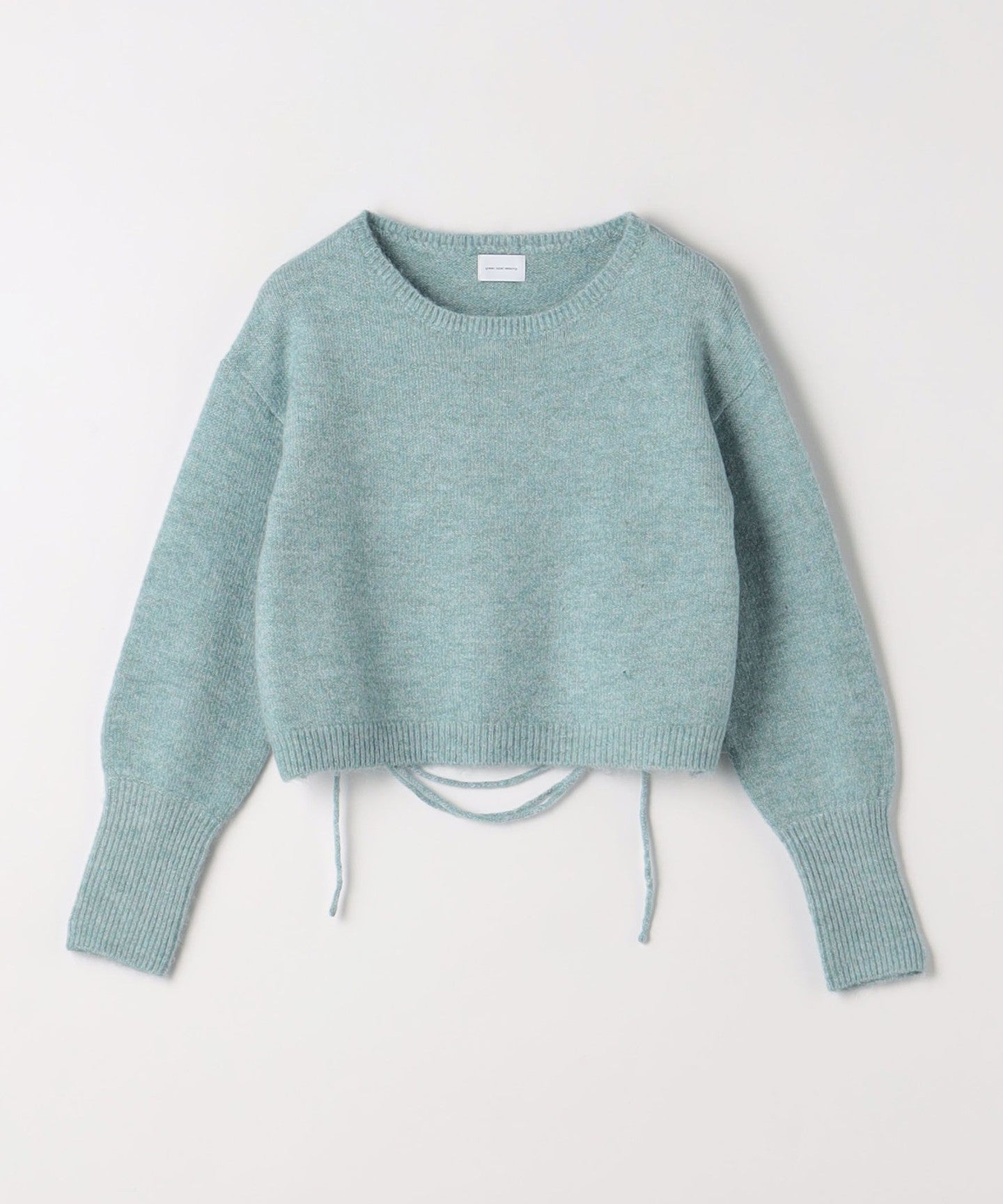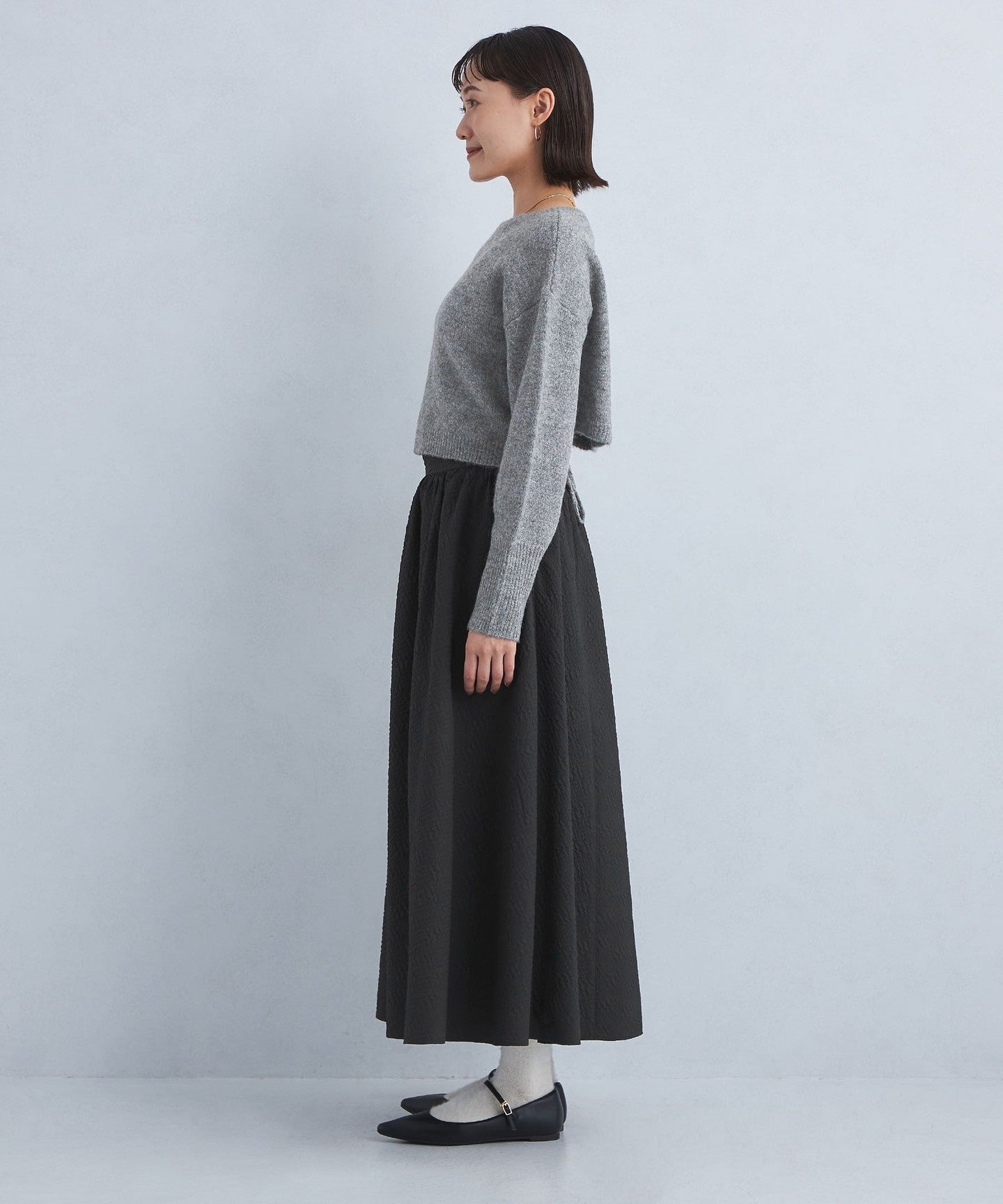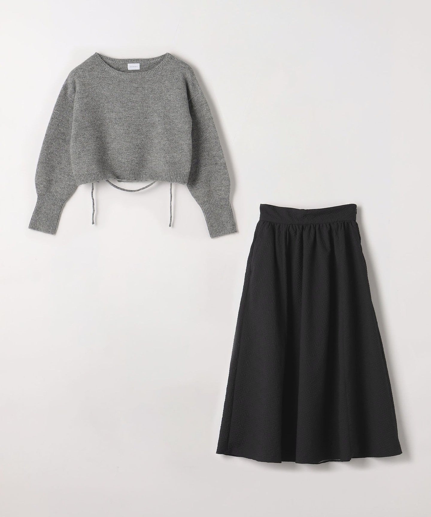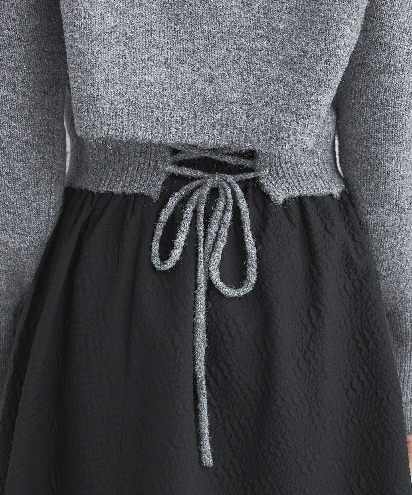 The back lace-up knit has been designed with special attention to its length and lace-up details so that it can be worn stylishly even when paired with a voluminous skirt.