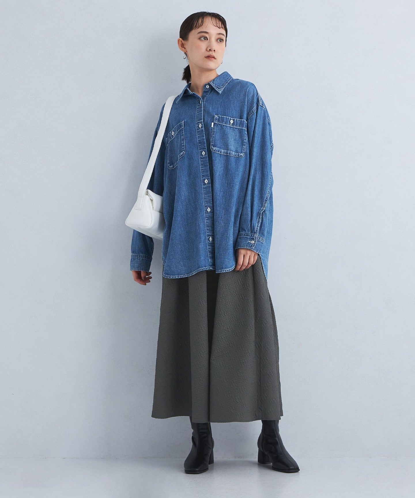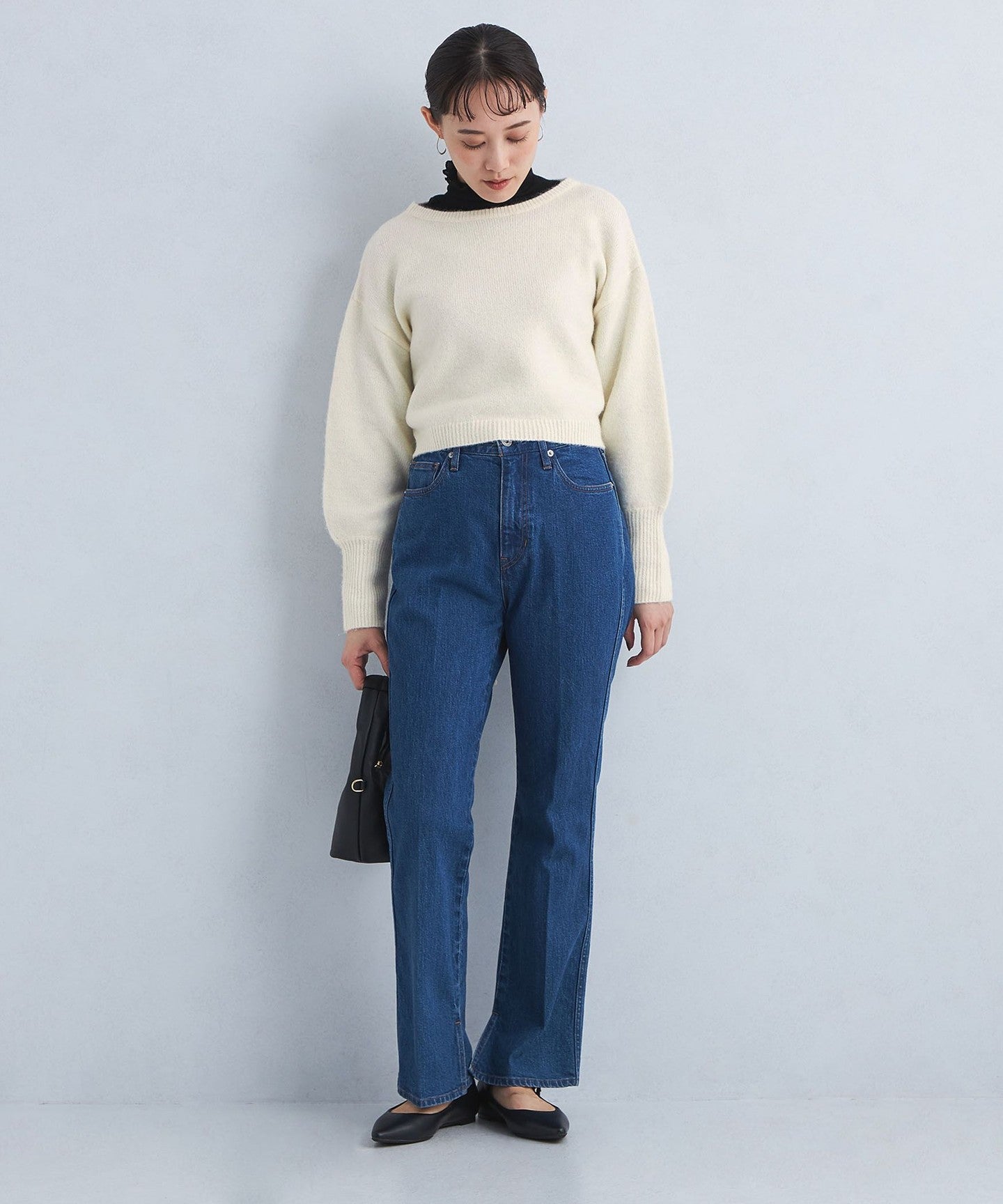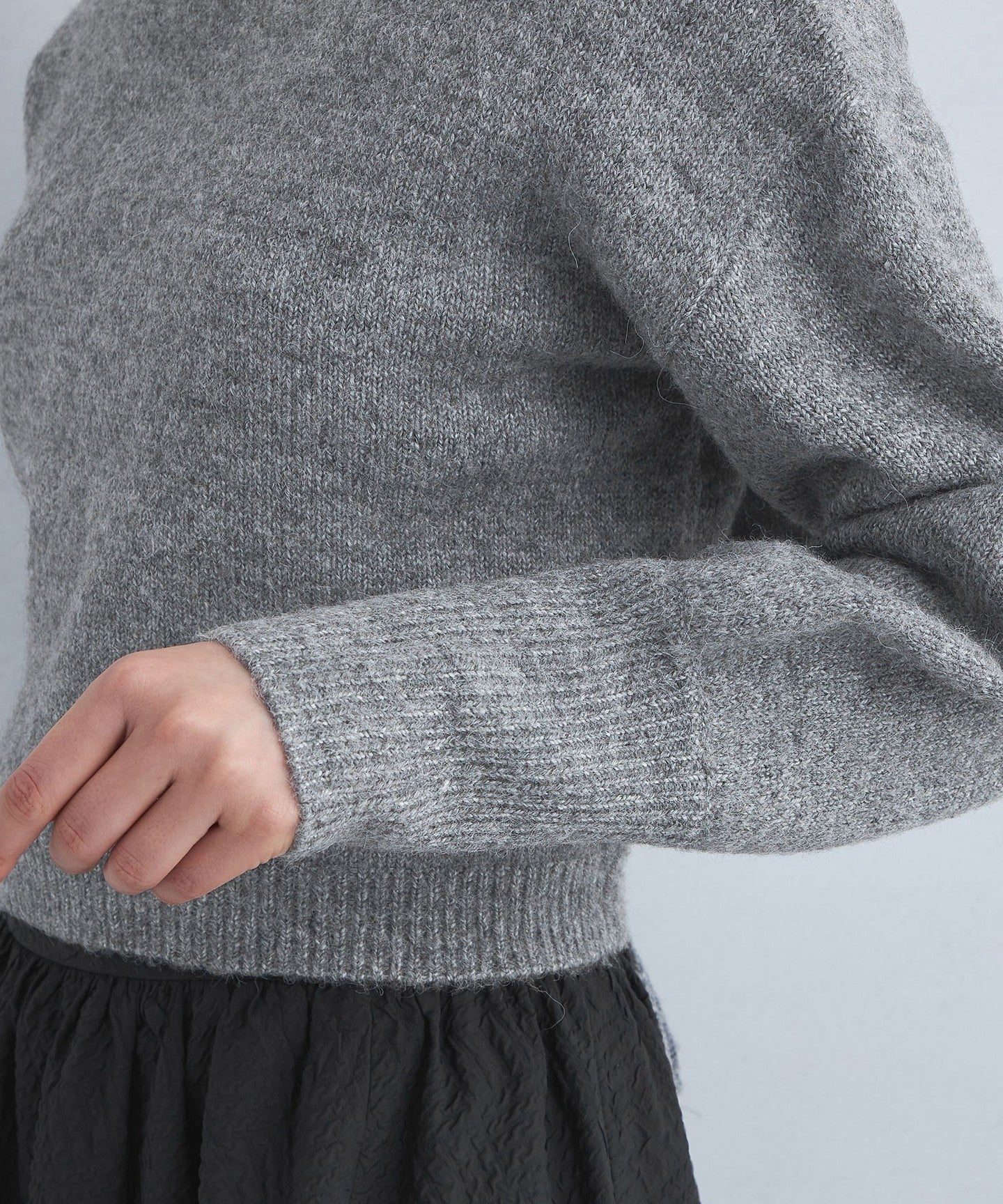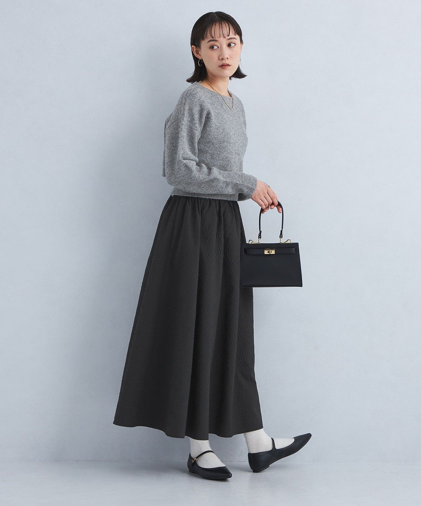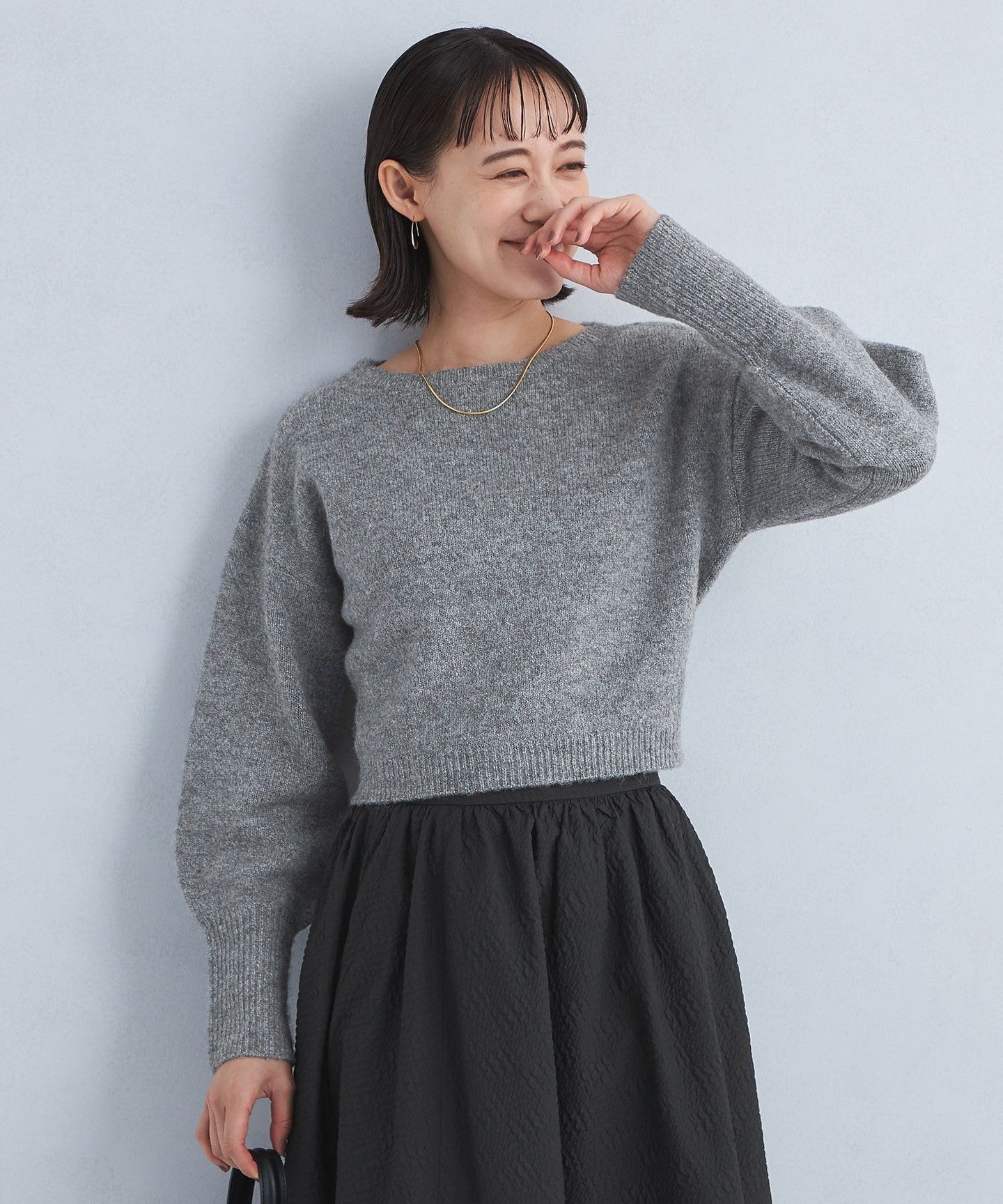 The back lace-up knit has been designed with special attention to its length and lace-up details so that it can be worn stylishly even when paired with a voluminous skirt.