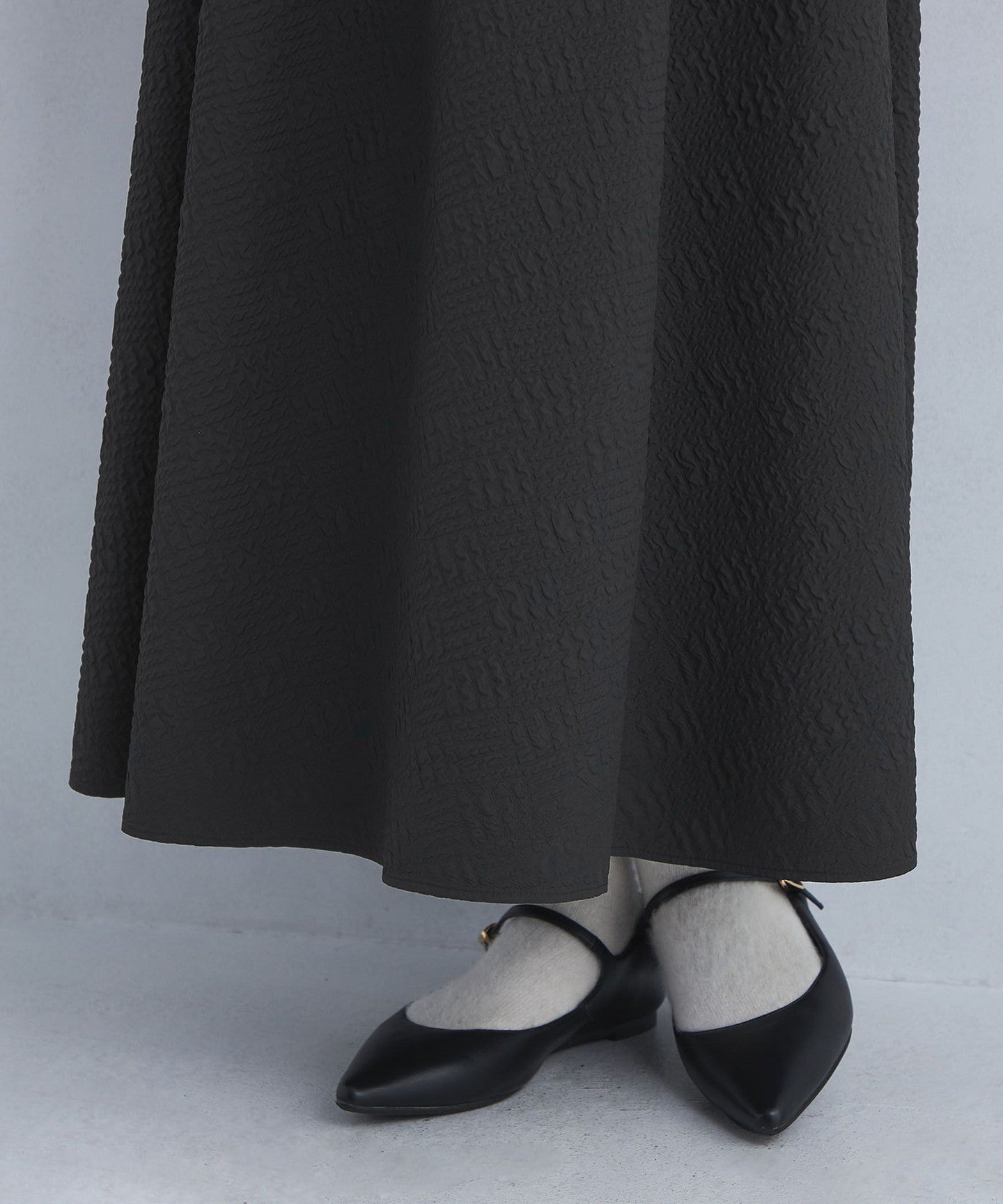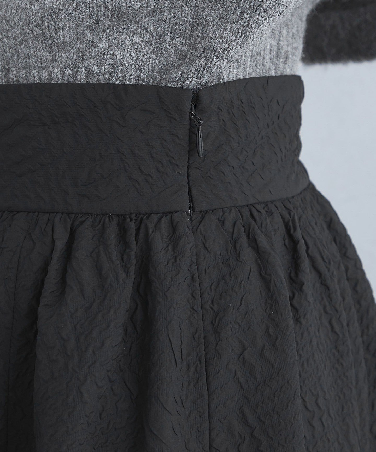 The skirt is made of puffed jacquard material with a taffeta outer layer, giving it just the right amount of firmness.