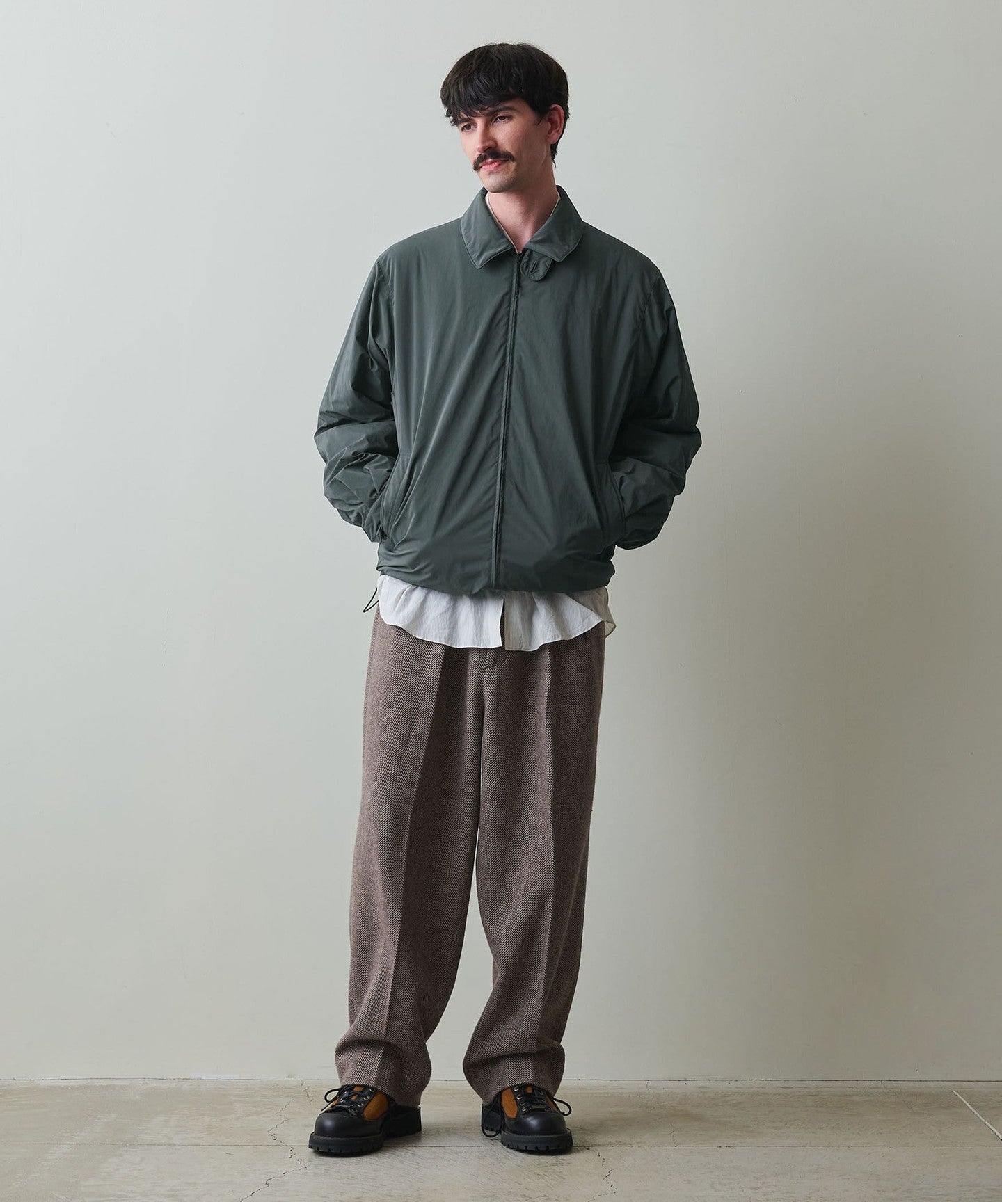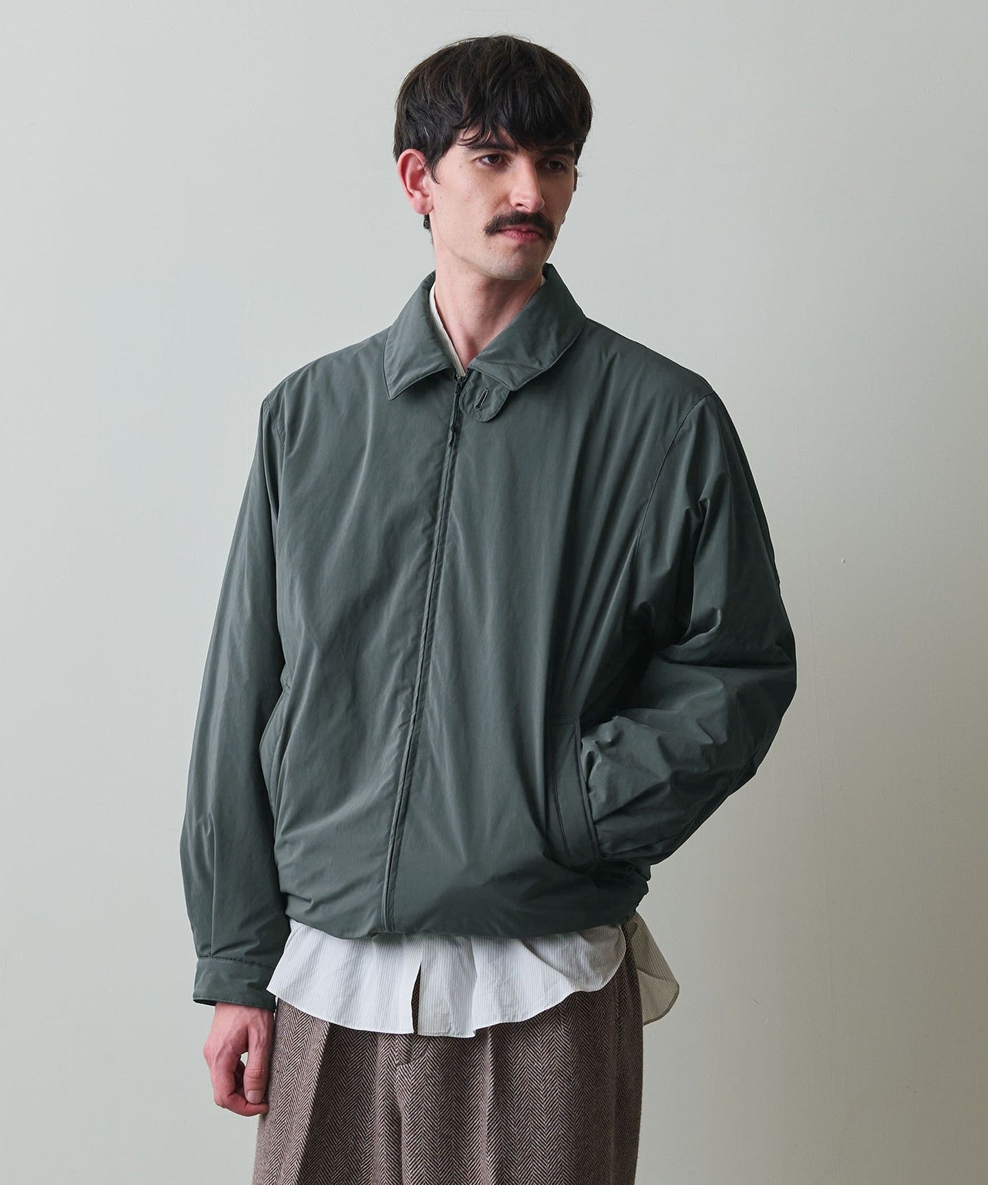 A short-length blouson with a minimalist design and a lightweight, warm feel.