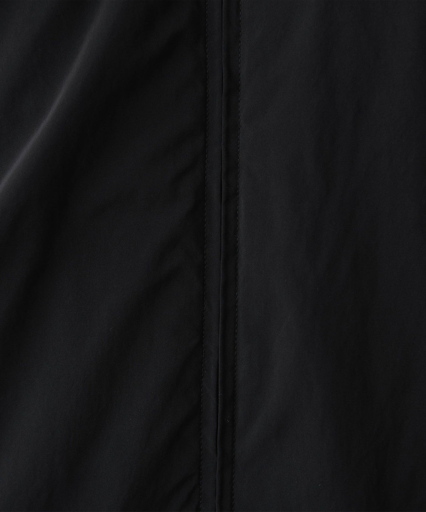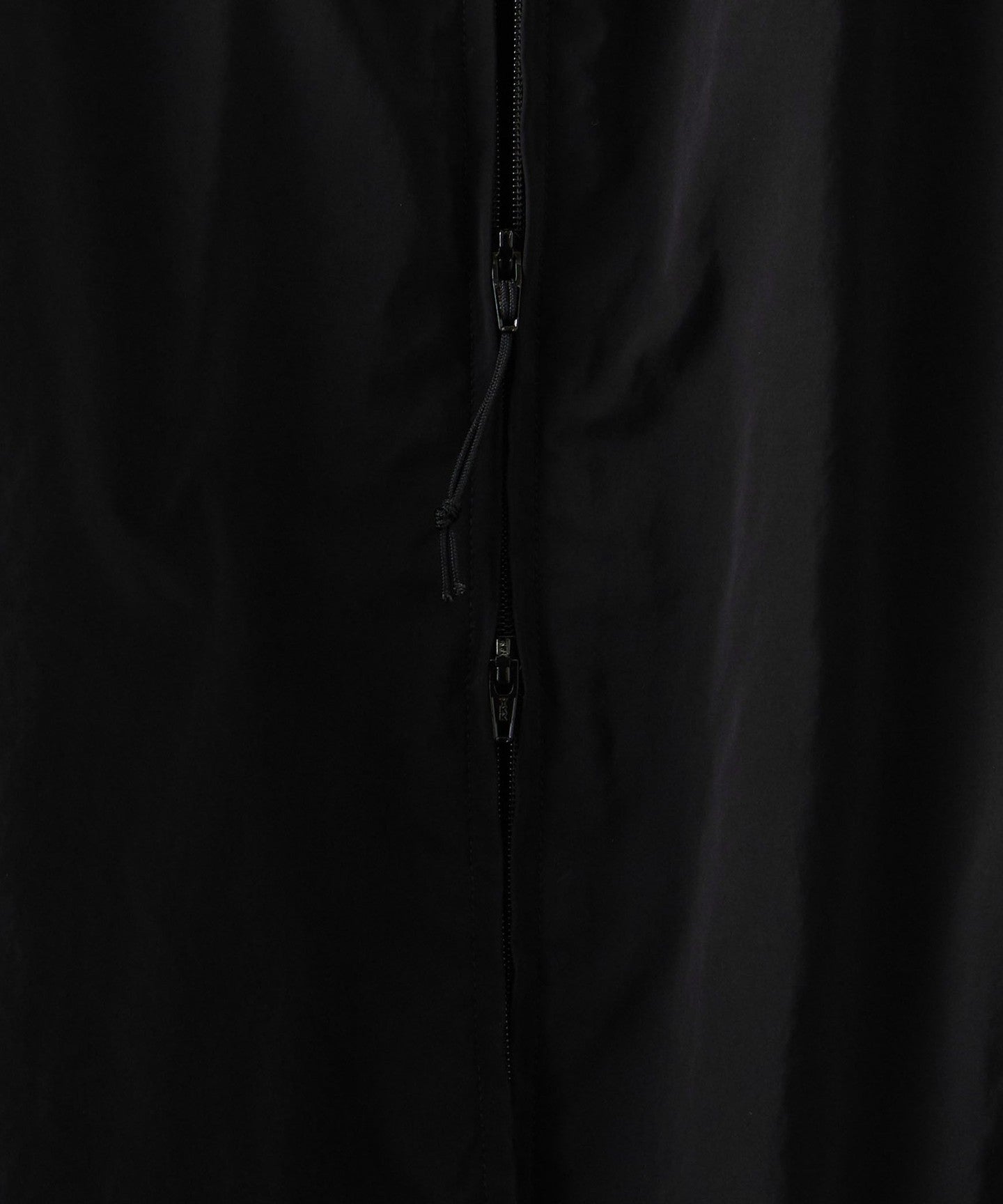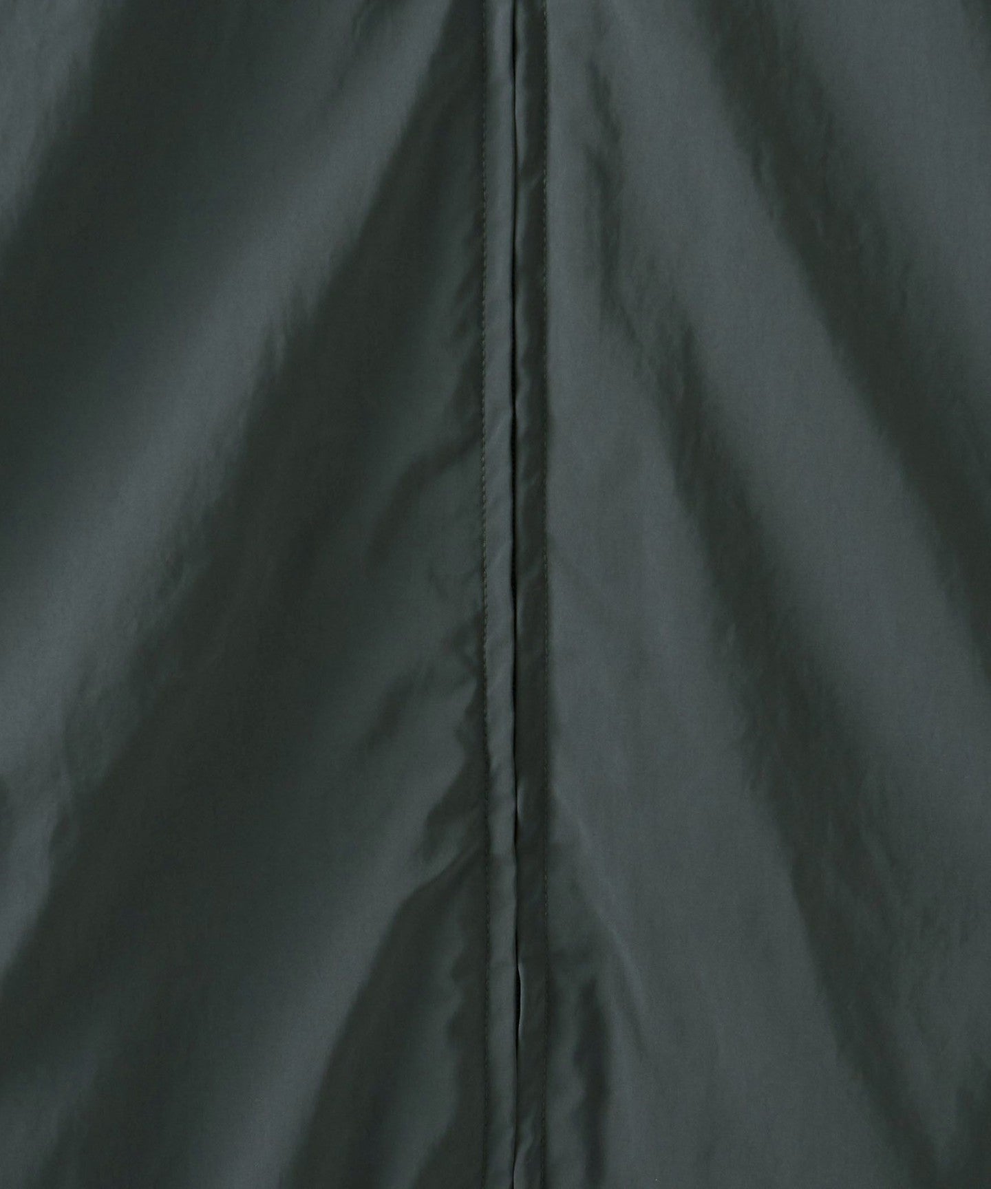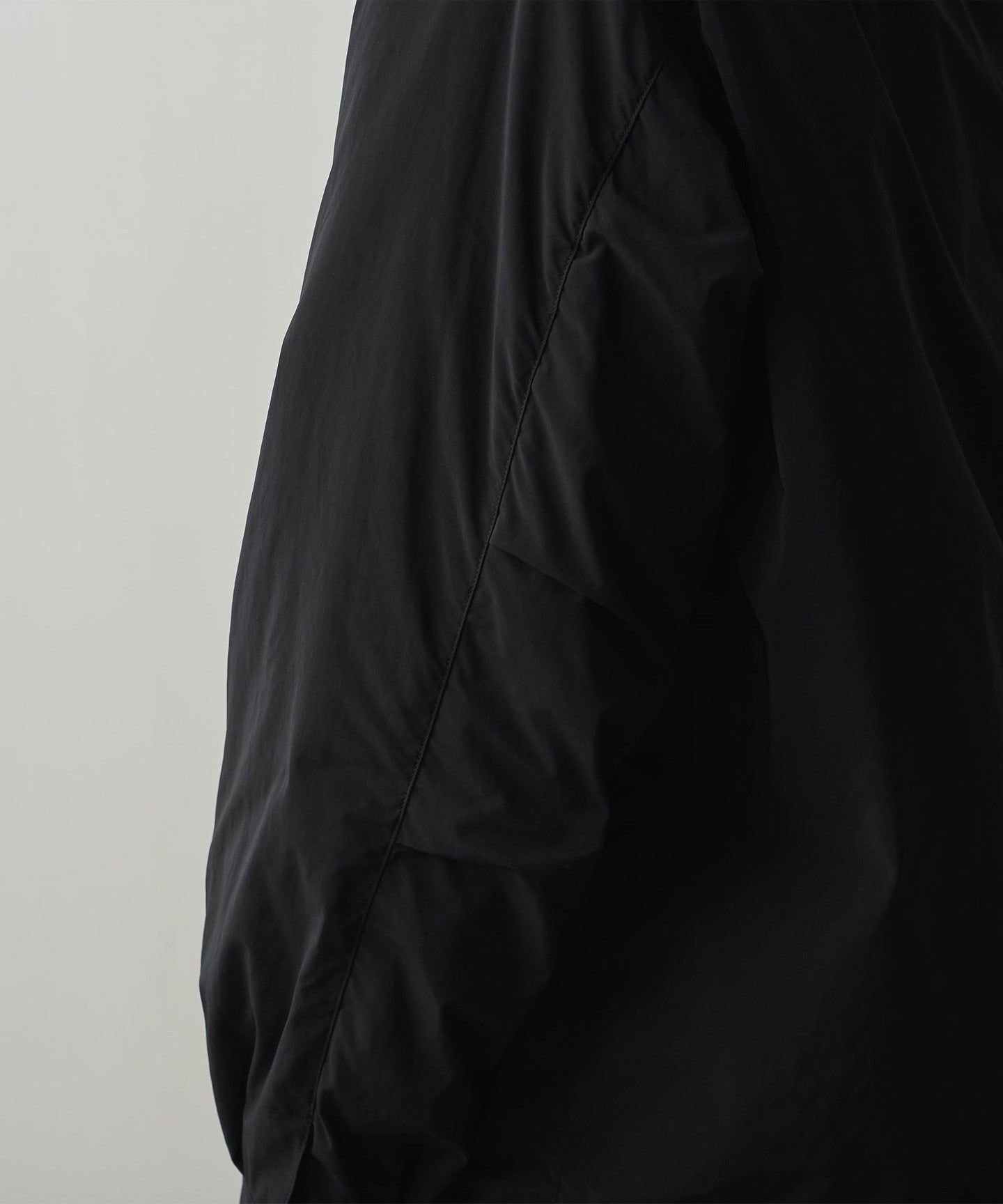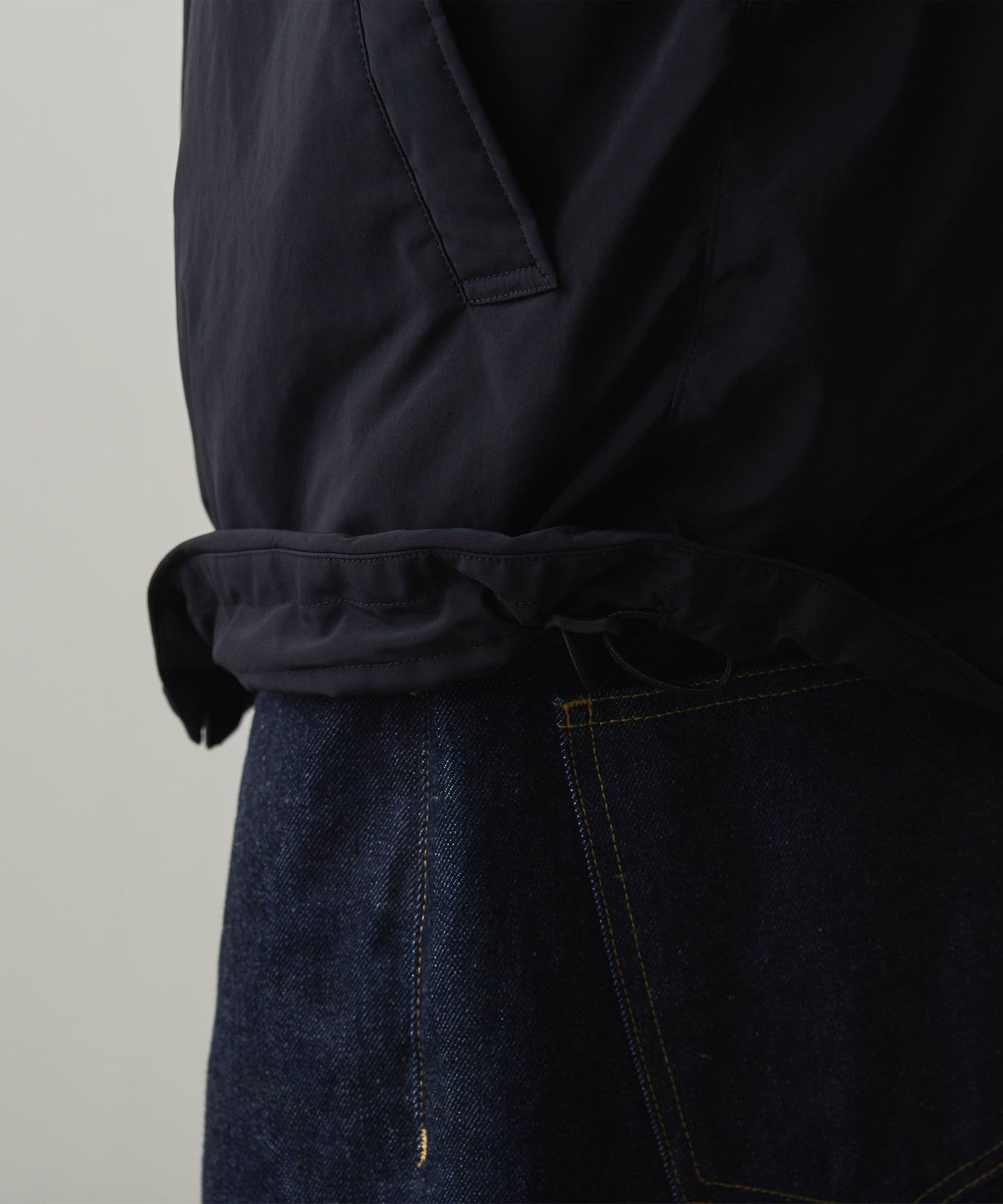 The silhouette can be adjusted using the snap buttons on the cuffs and the drawstring at the hem.