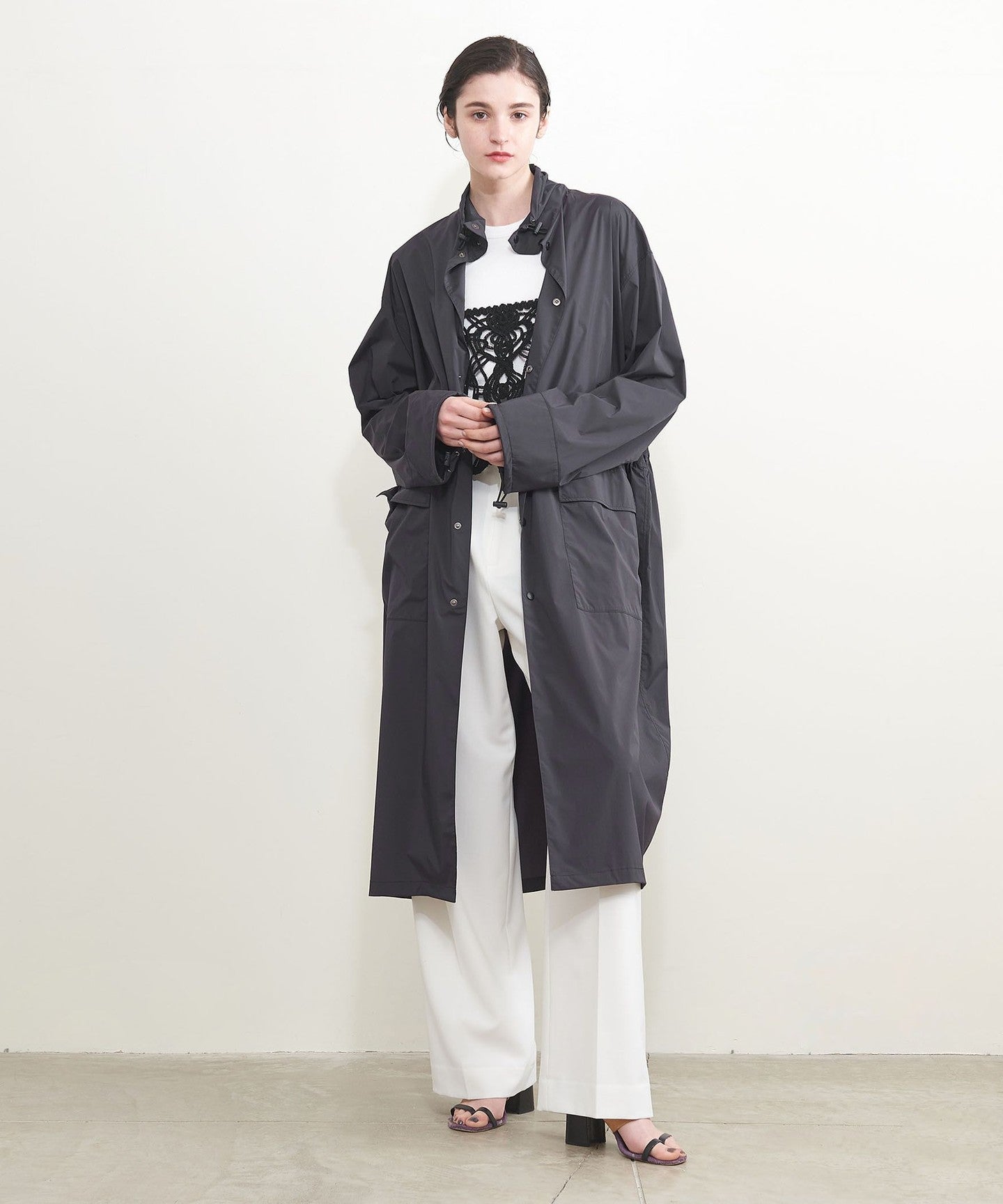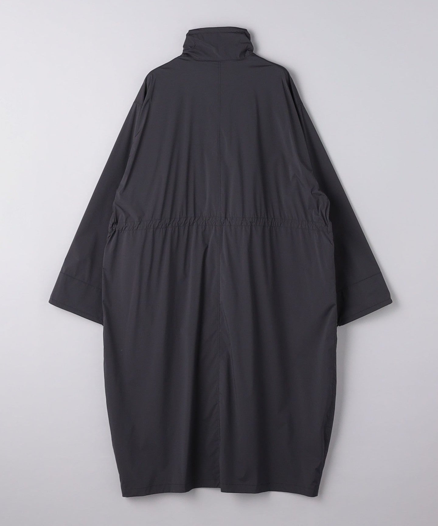 The collar, cuffs, and inside waist can be tightened with drawstrings to adjust the silhouette.