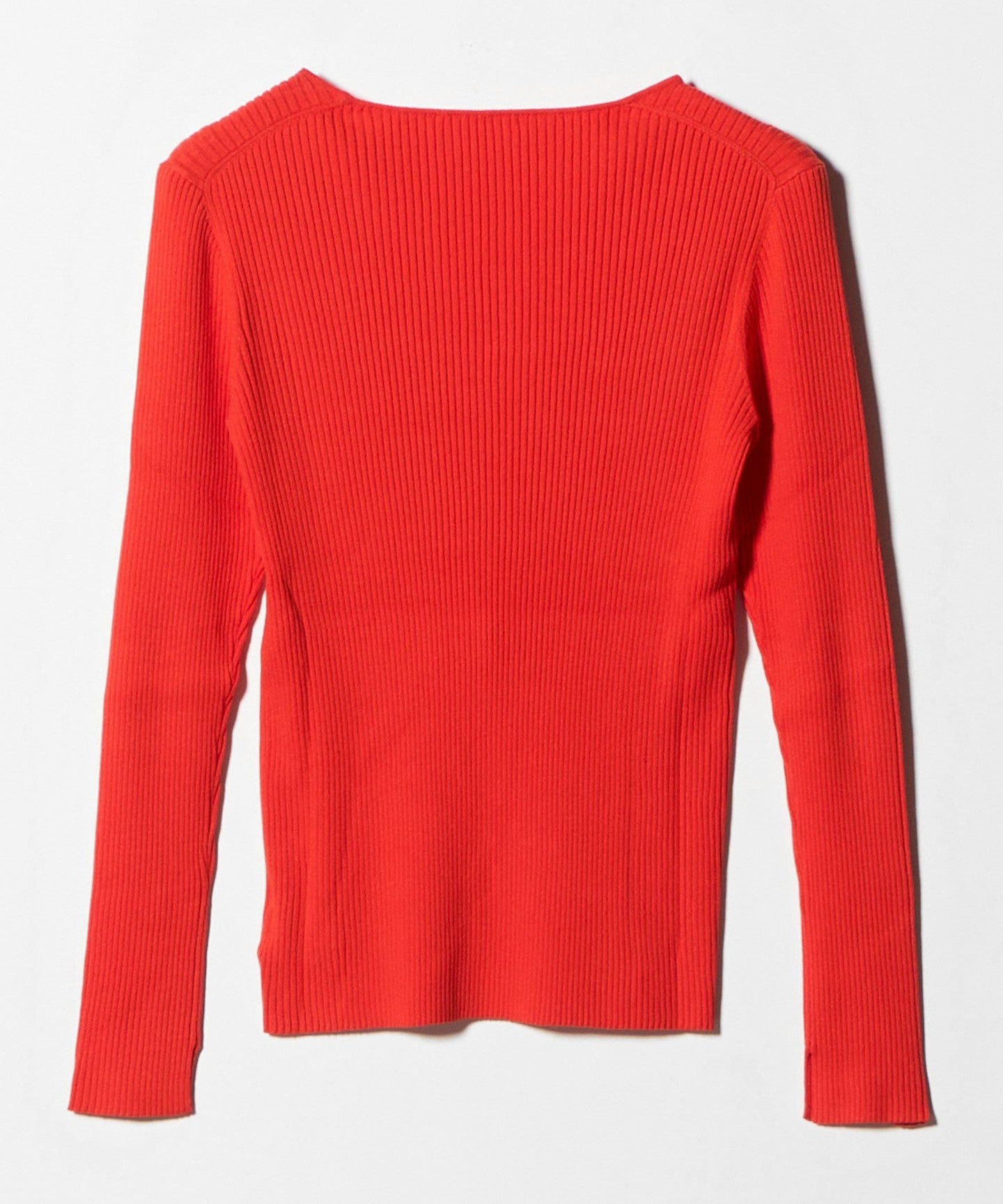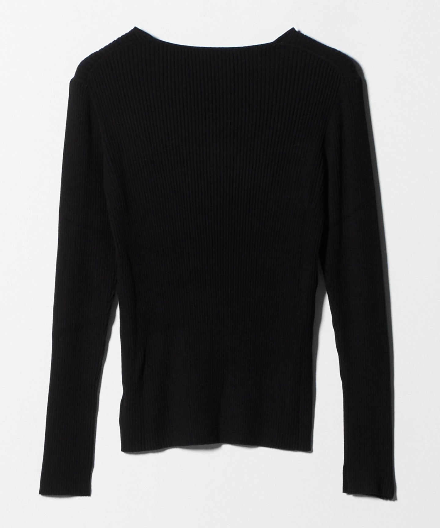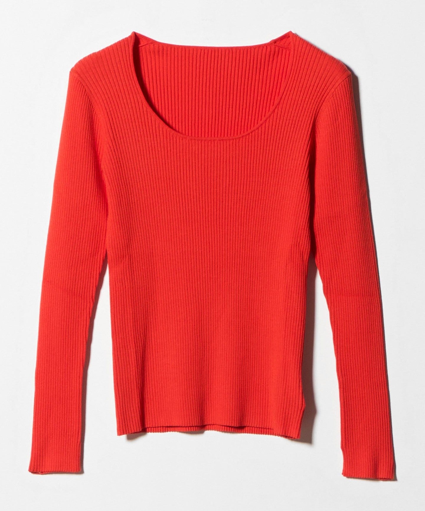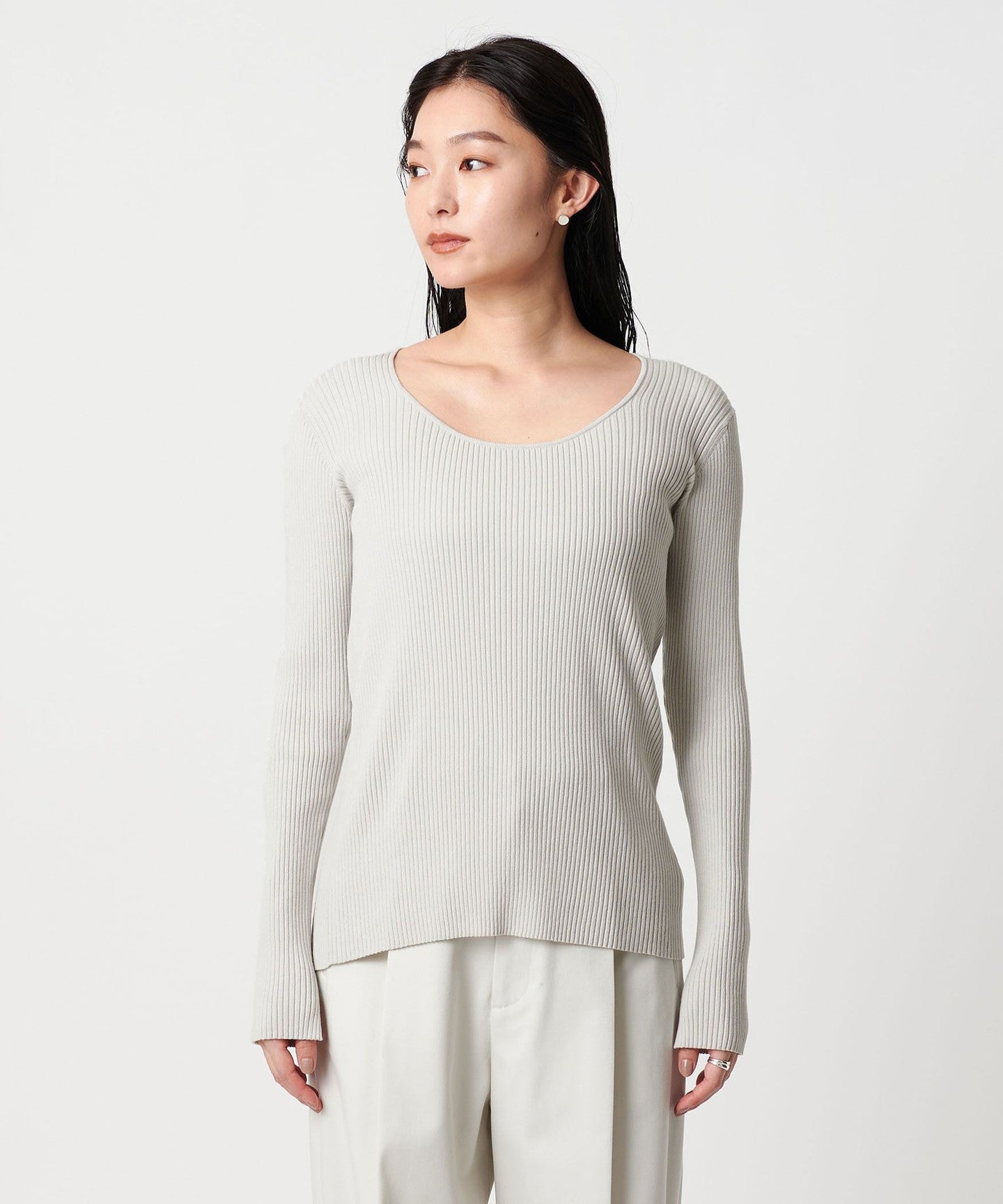 首元の開きが美しく、顔まわりをすっきりと見せてくれるリブニット。