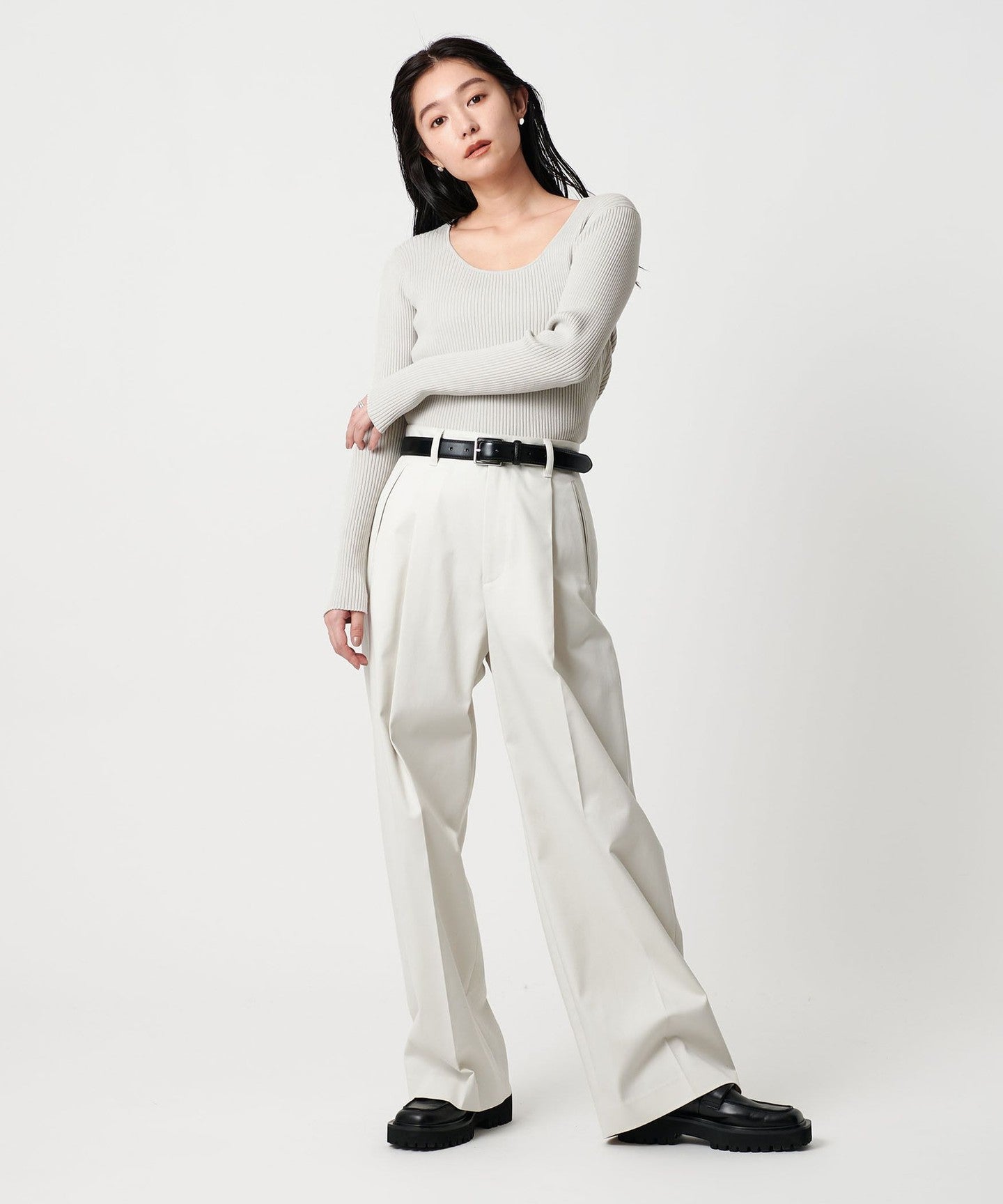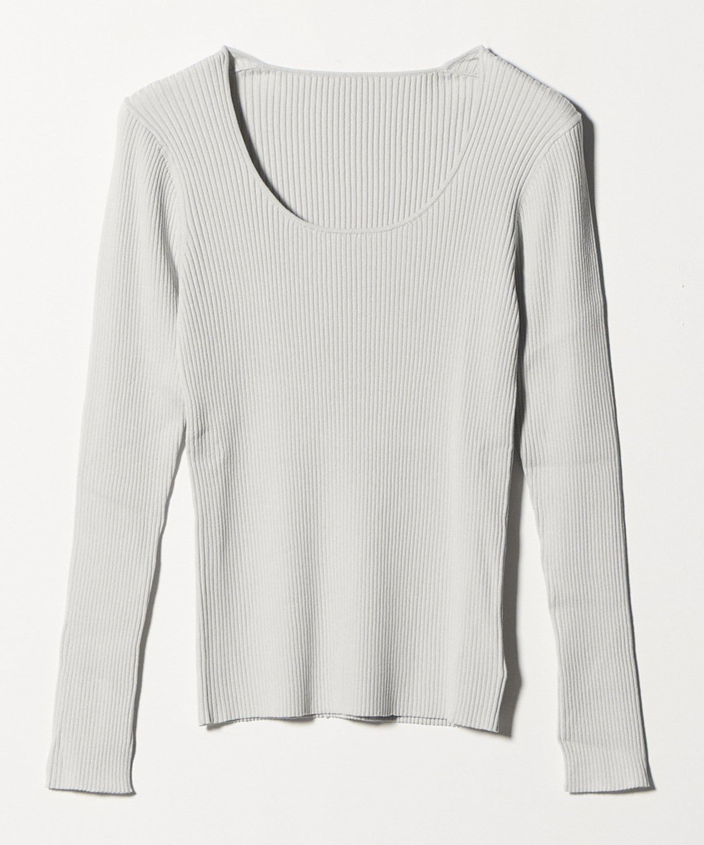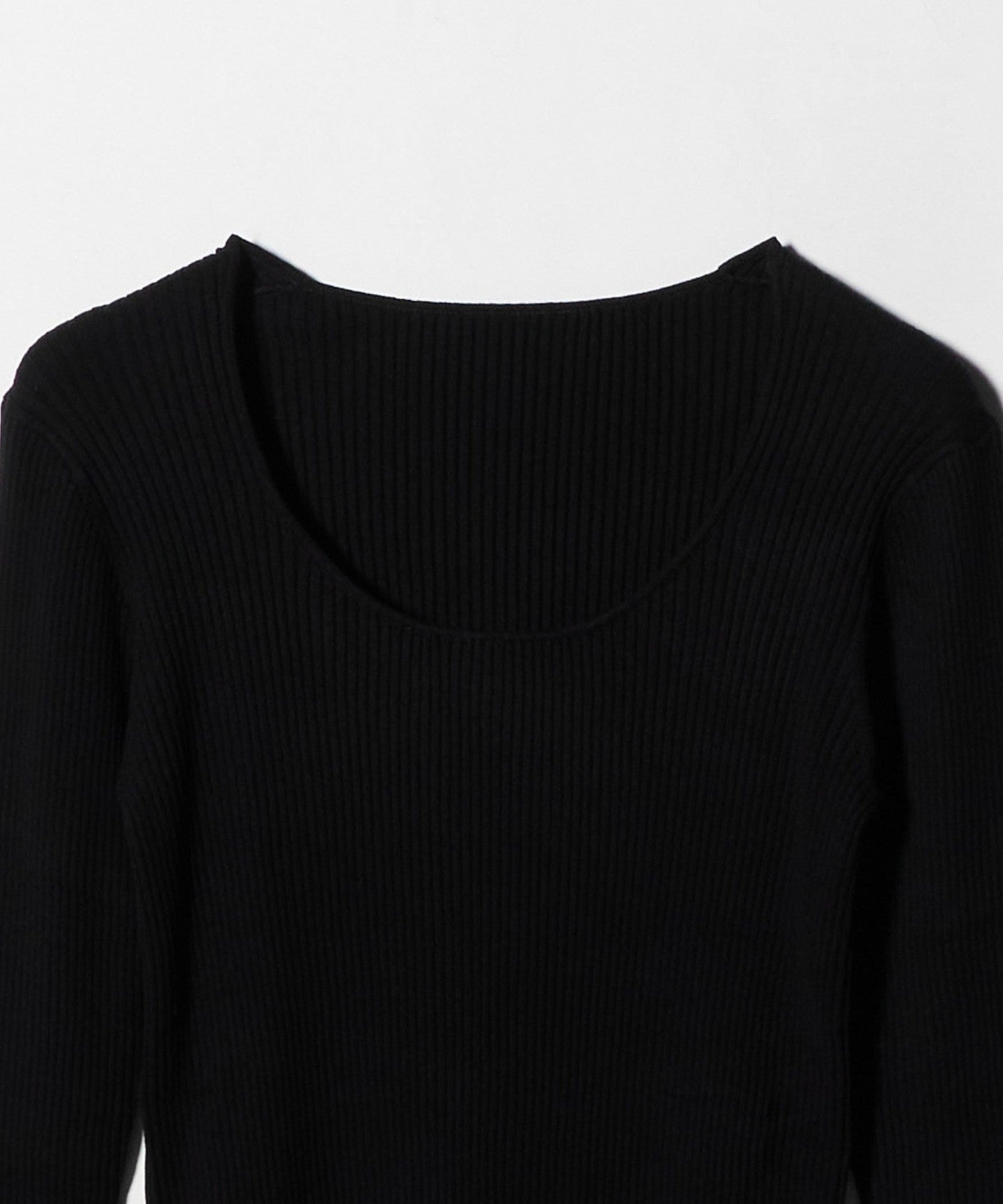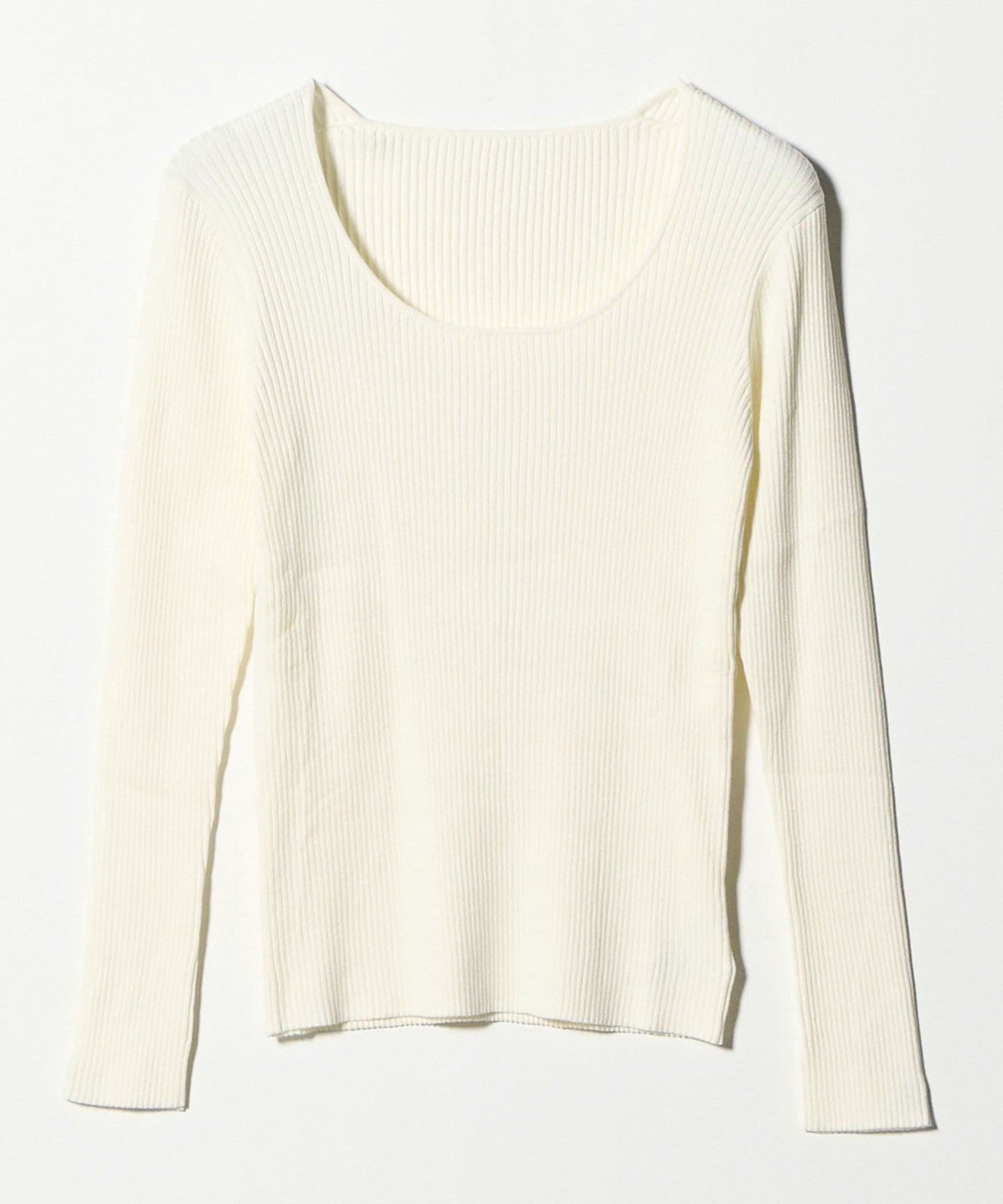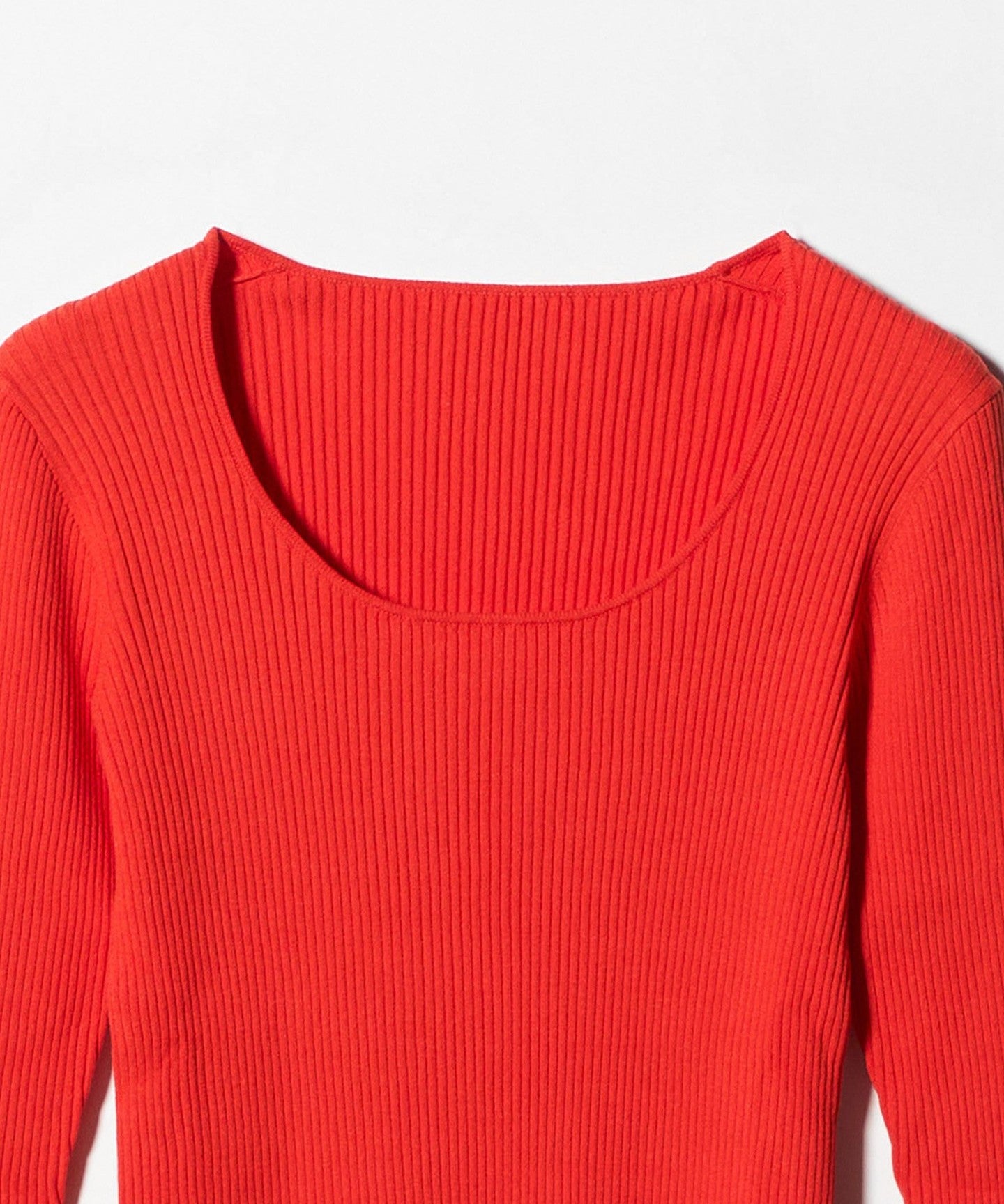 首元の開きが美しく、顔まわりをすっきりと見せてくれるリブニット。