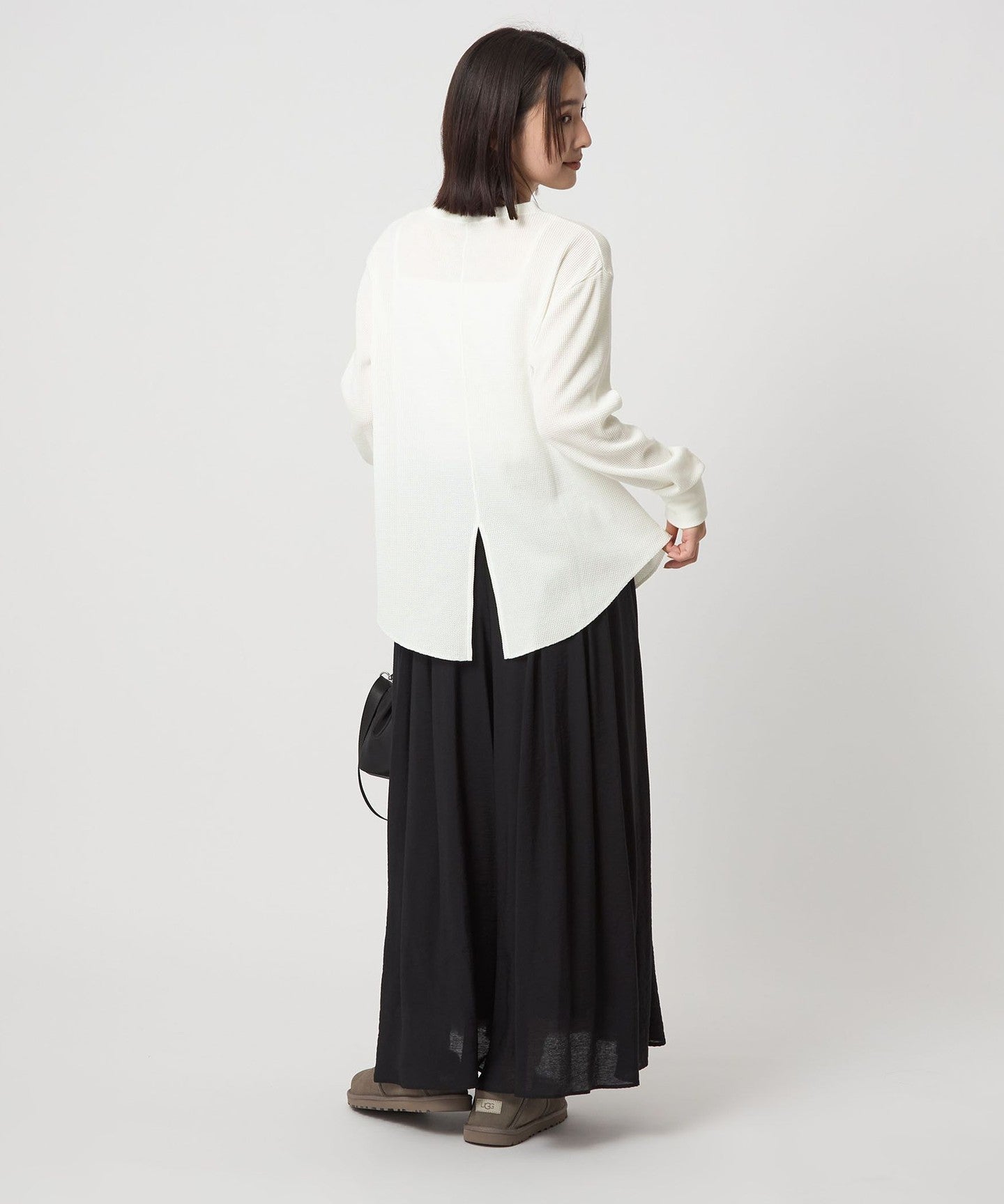 Not only can it be worn on its own, but since it has just the right amount of thickness, we also recommend wearing it under a sweatshirt or knit and letting it peek out from the hem or cuffs.