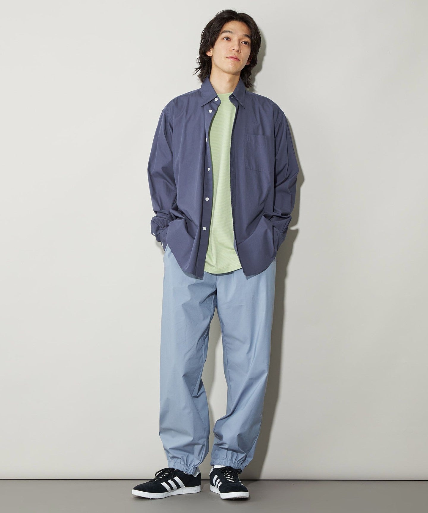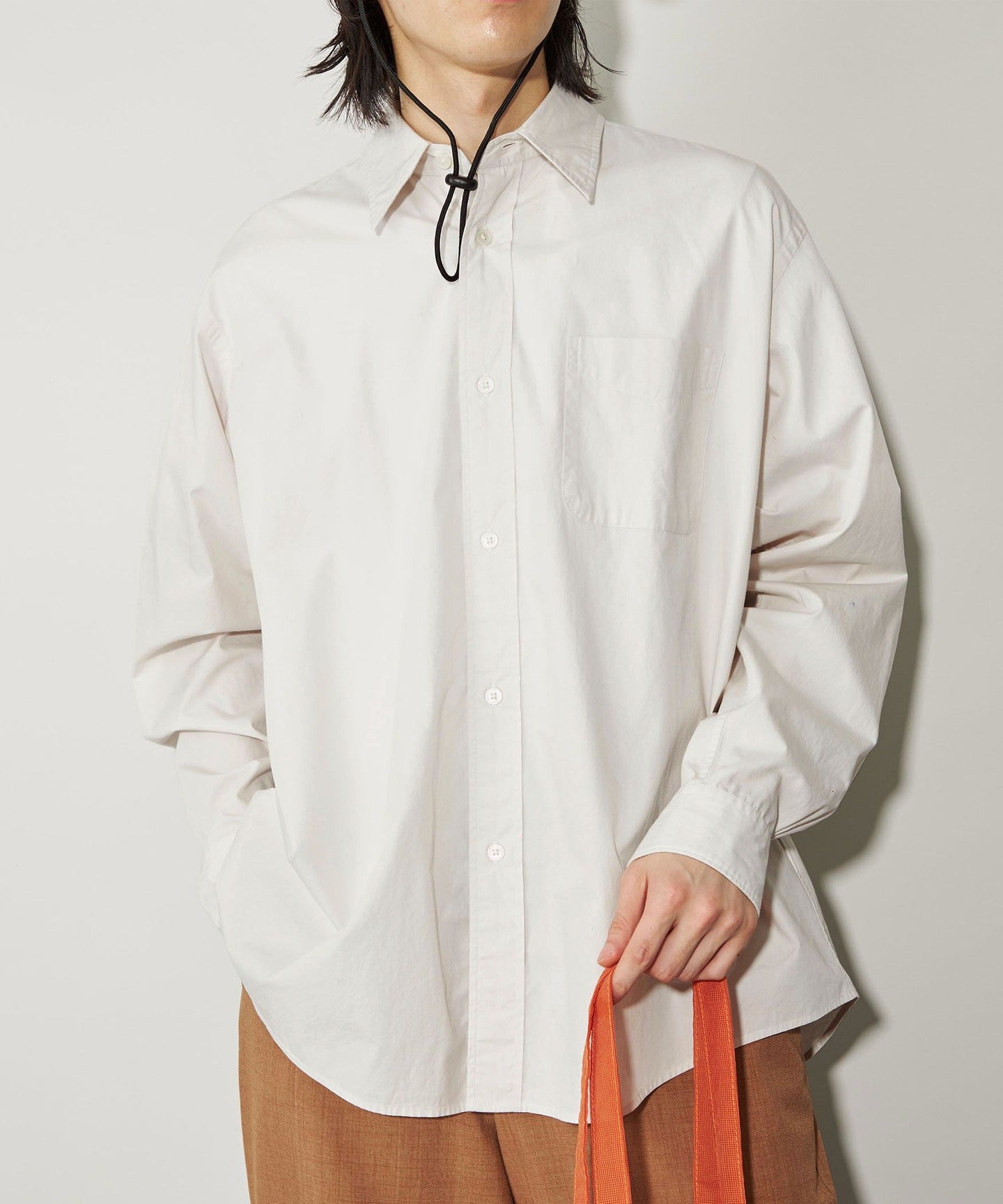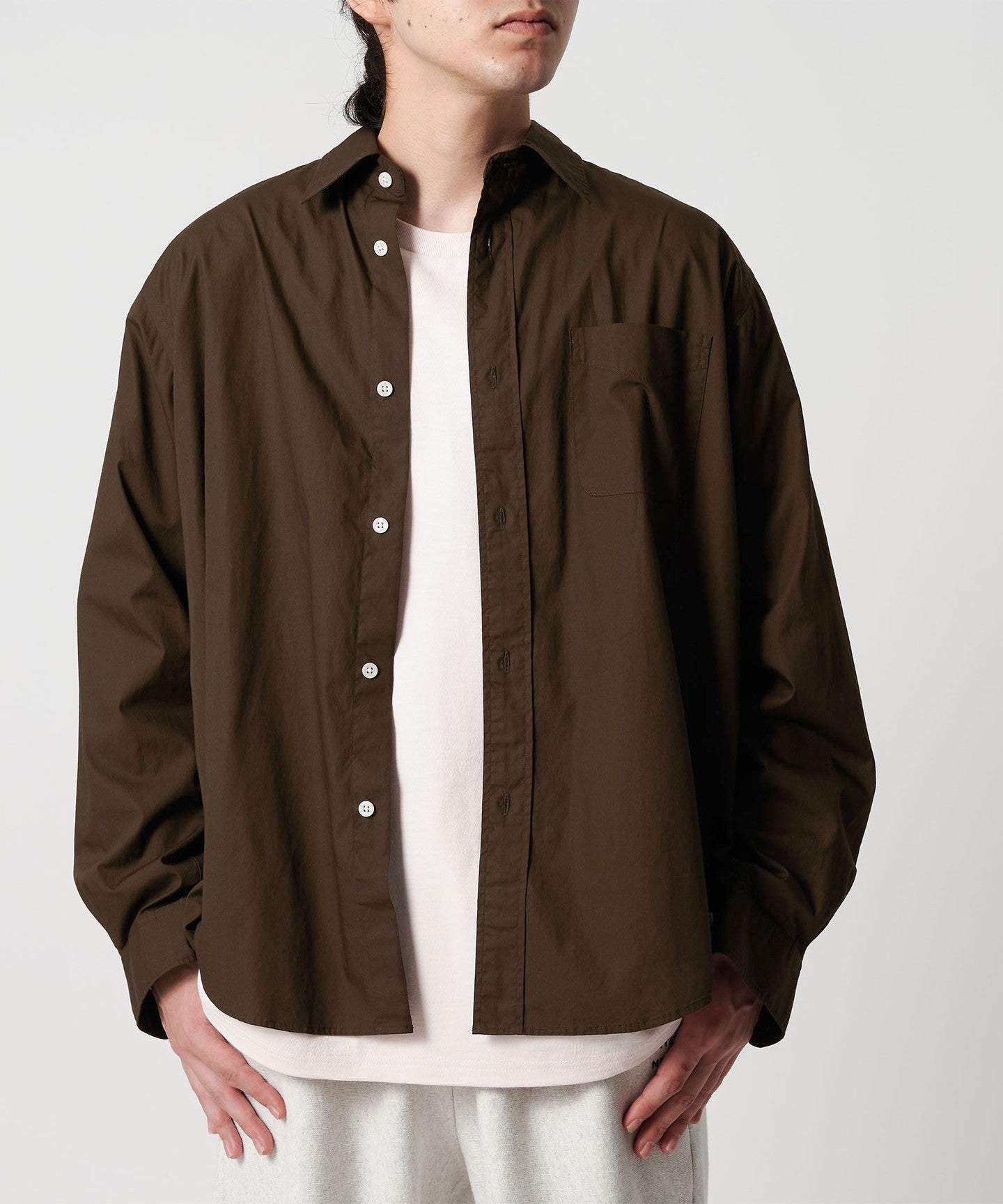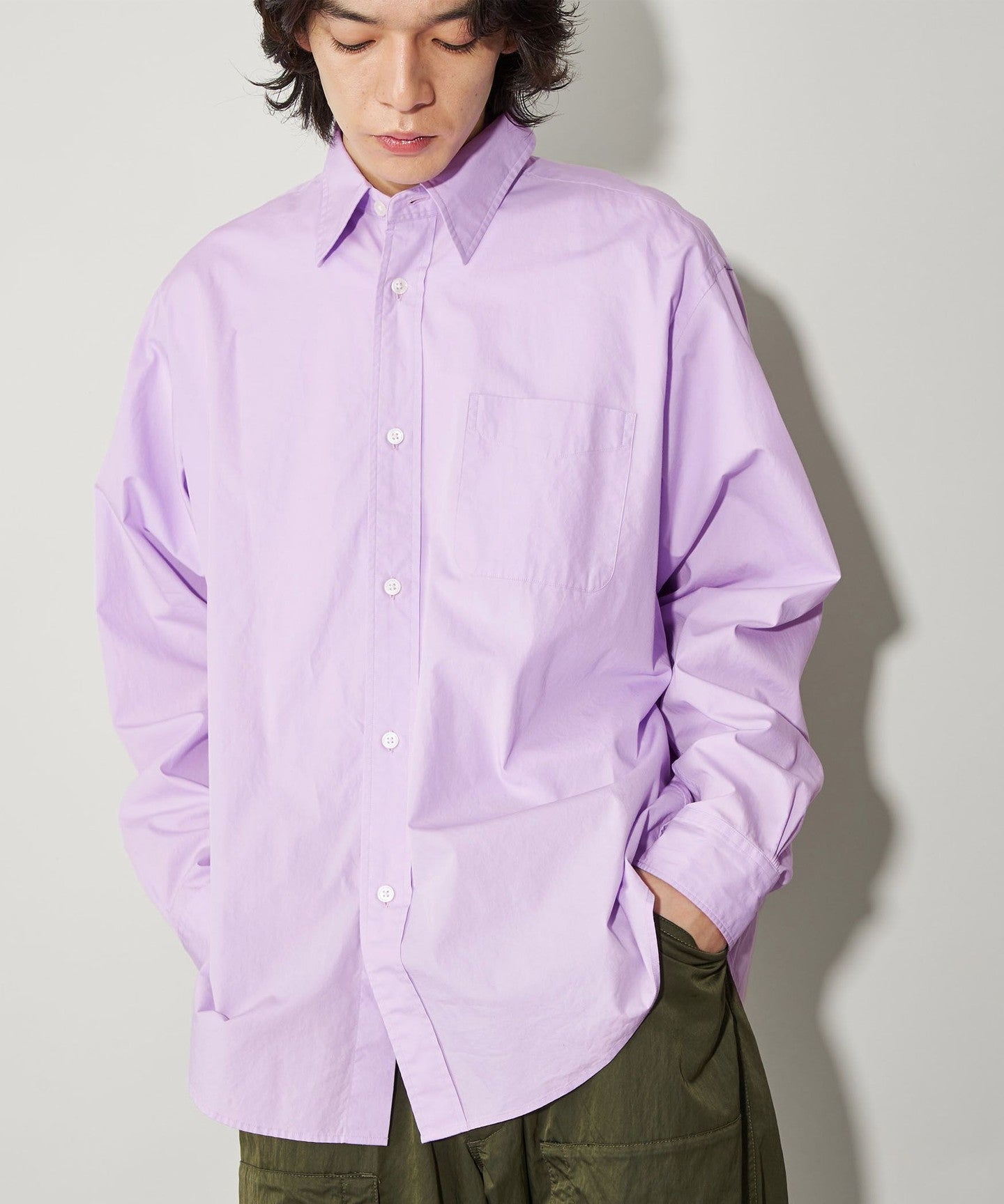 The relaxed volume is complemented by design details inspired by classic dress shirts.