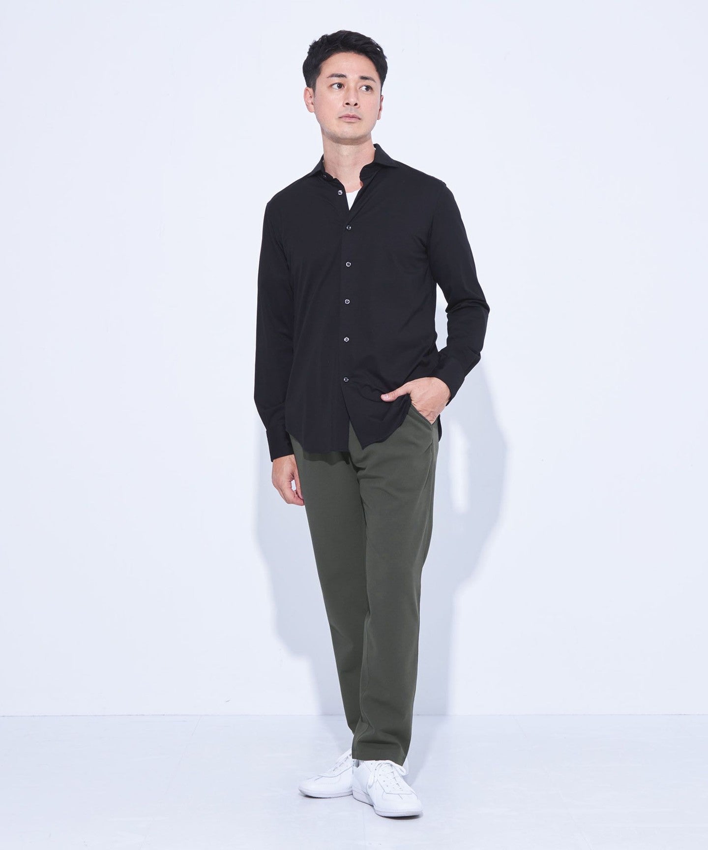 The elegant look of pairing it with a shirt and leather shoes also looks great.