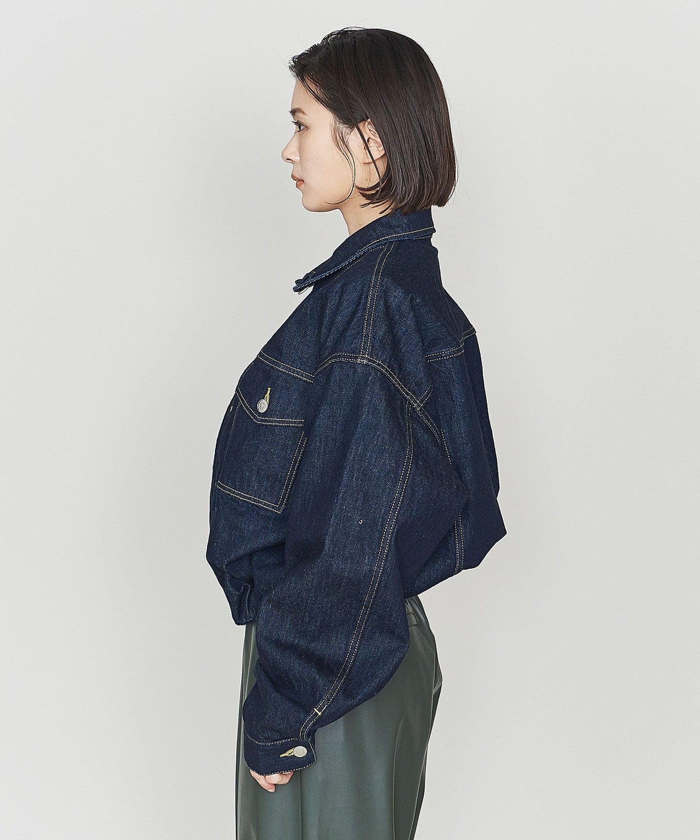 It looks like a big silhouette denim jacket is being browsed. HEM to Rubber The length has been shortened and the design features a zipper.