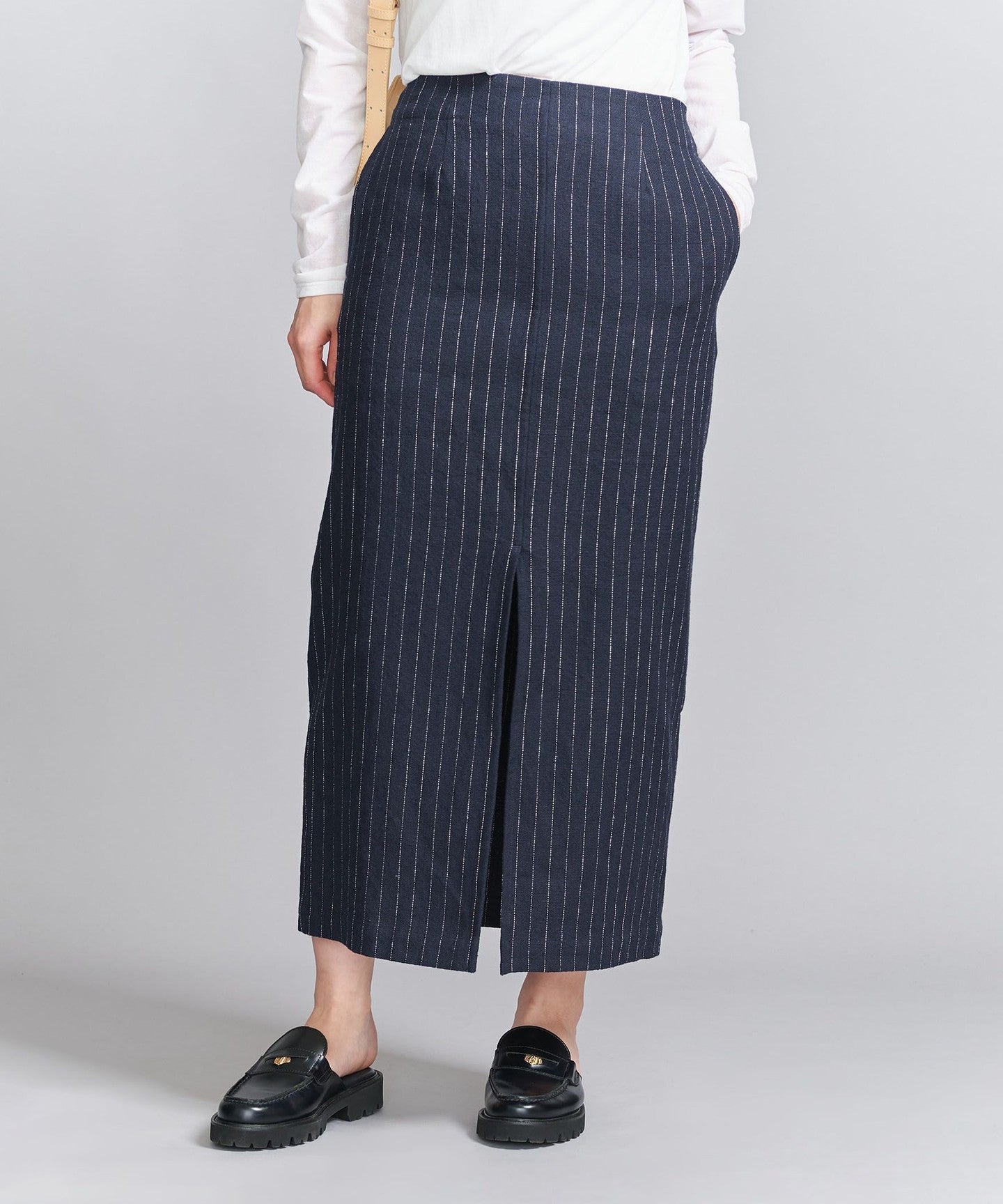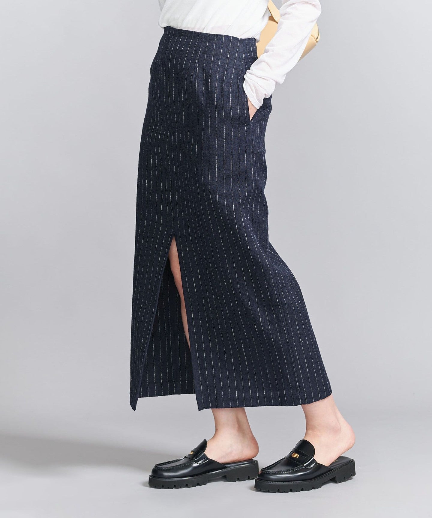 A slit skirt that eliminates accessories such as a belt and makes the most of the texture of the fabric.