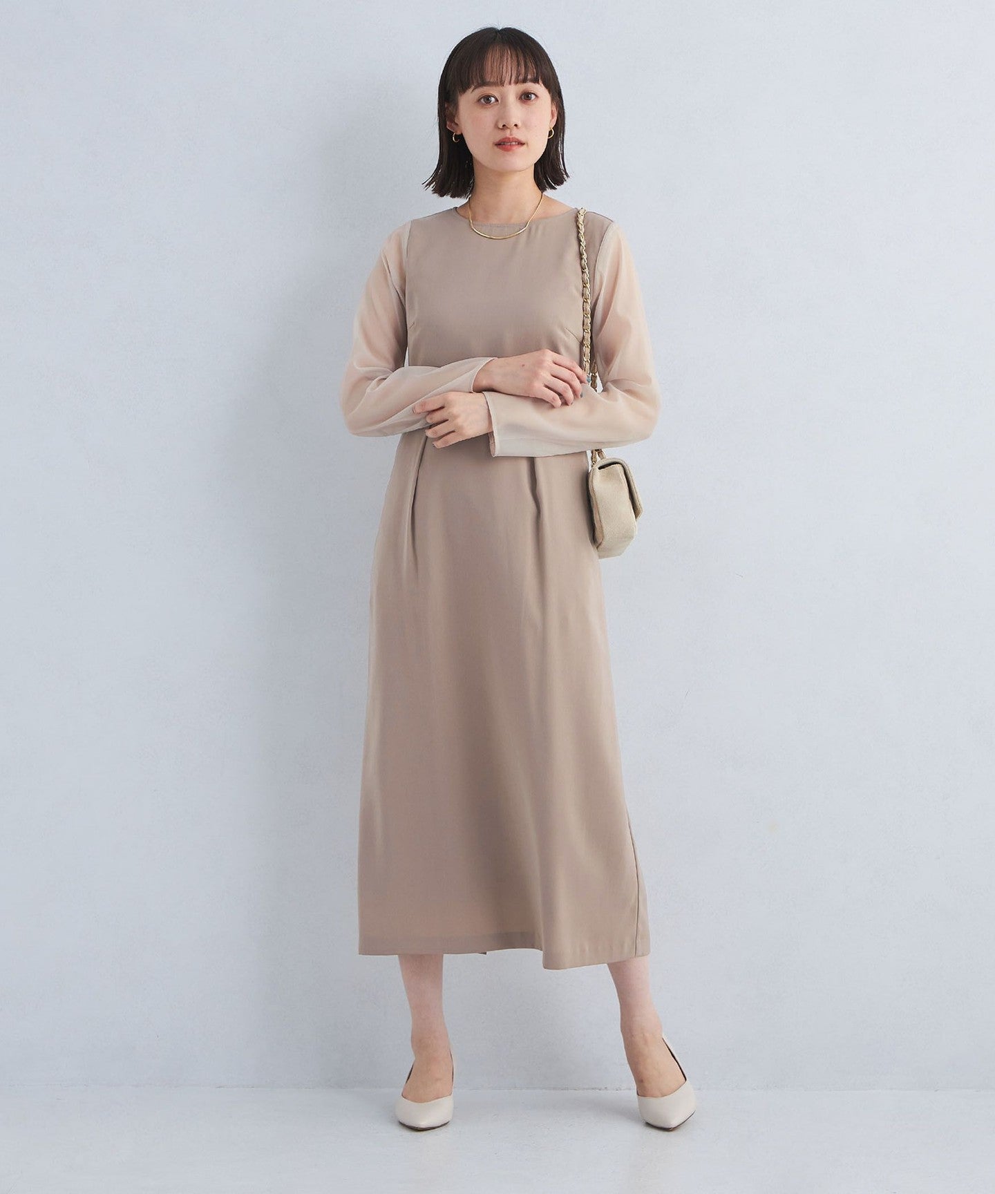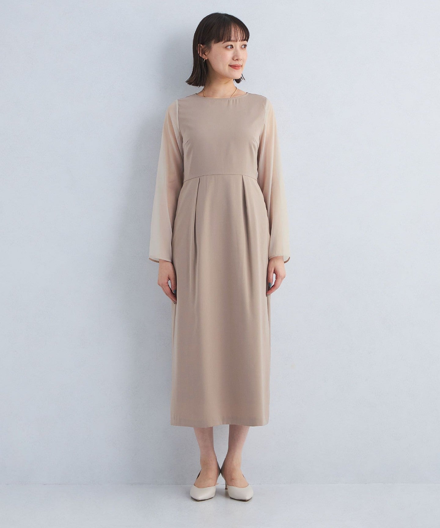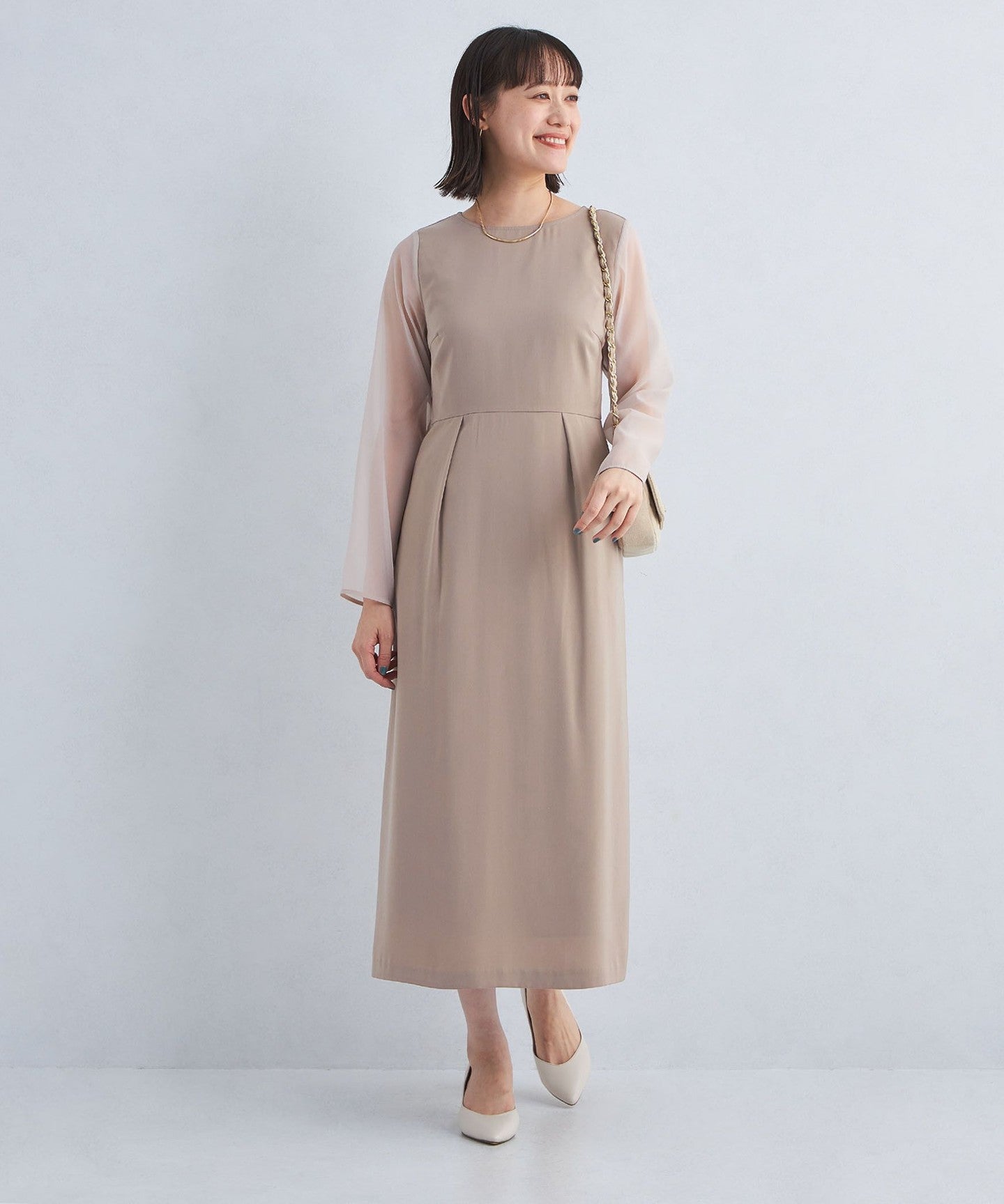 The sleeves of the dress are made of sheer material, and the design makes it suitable for wearing on its own.