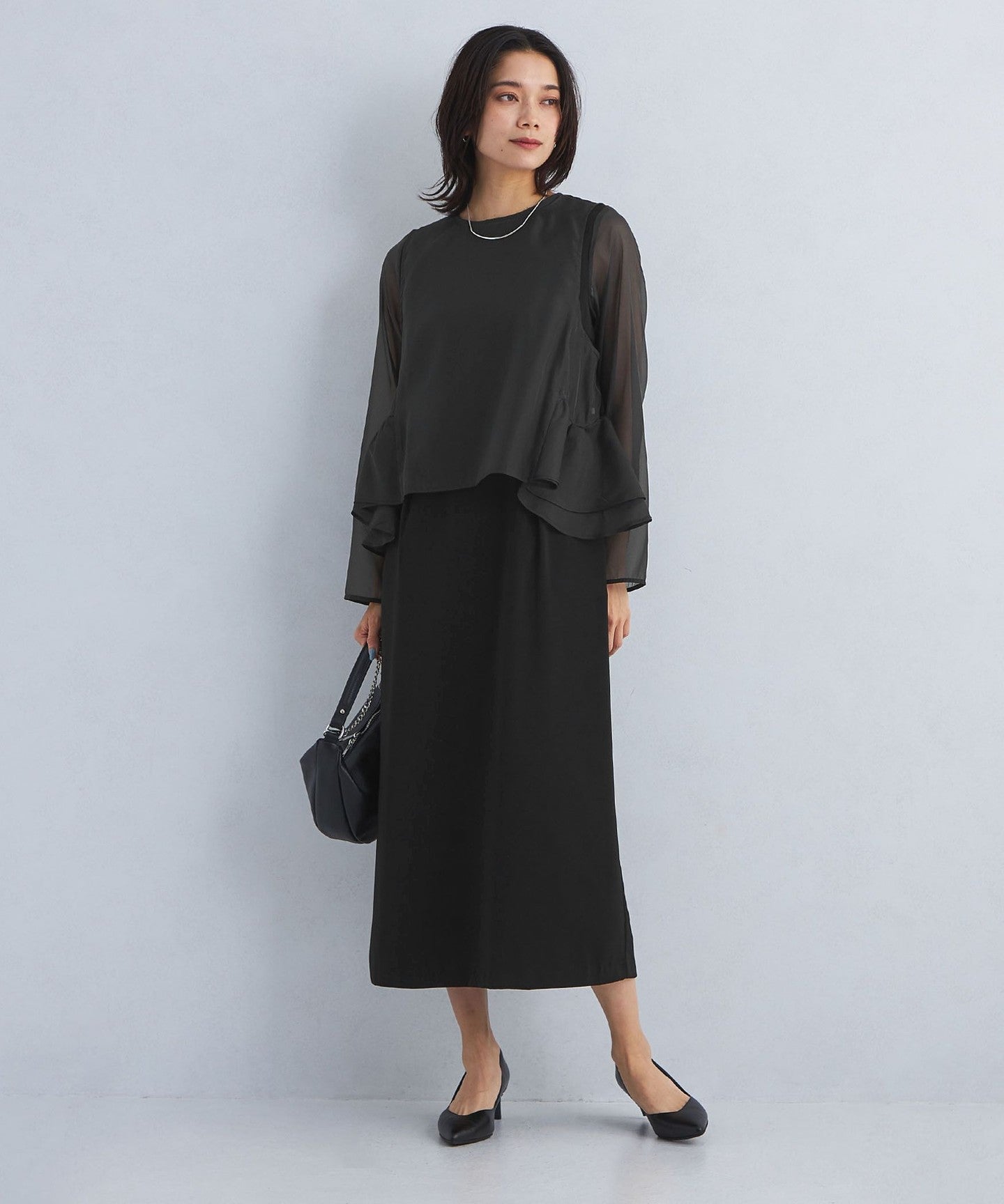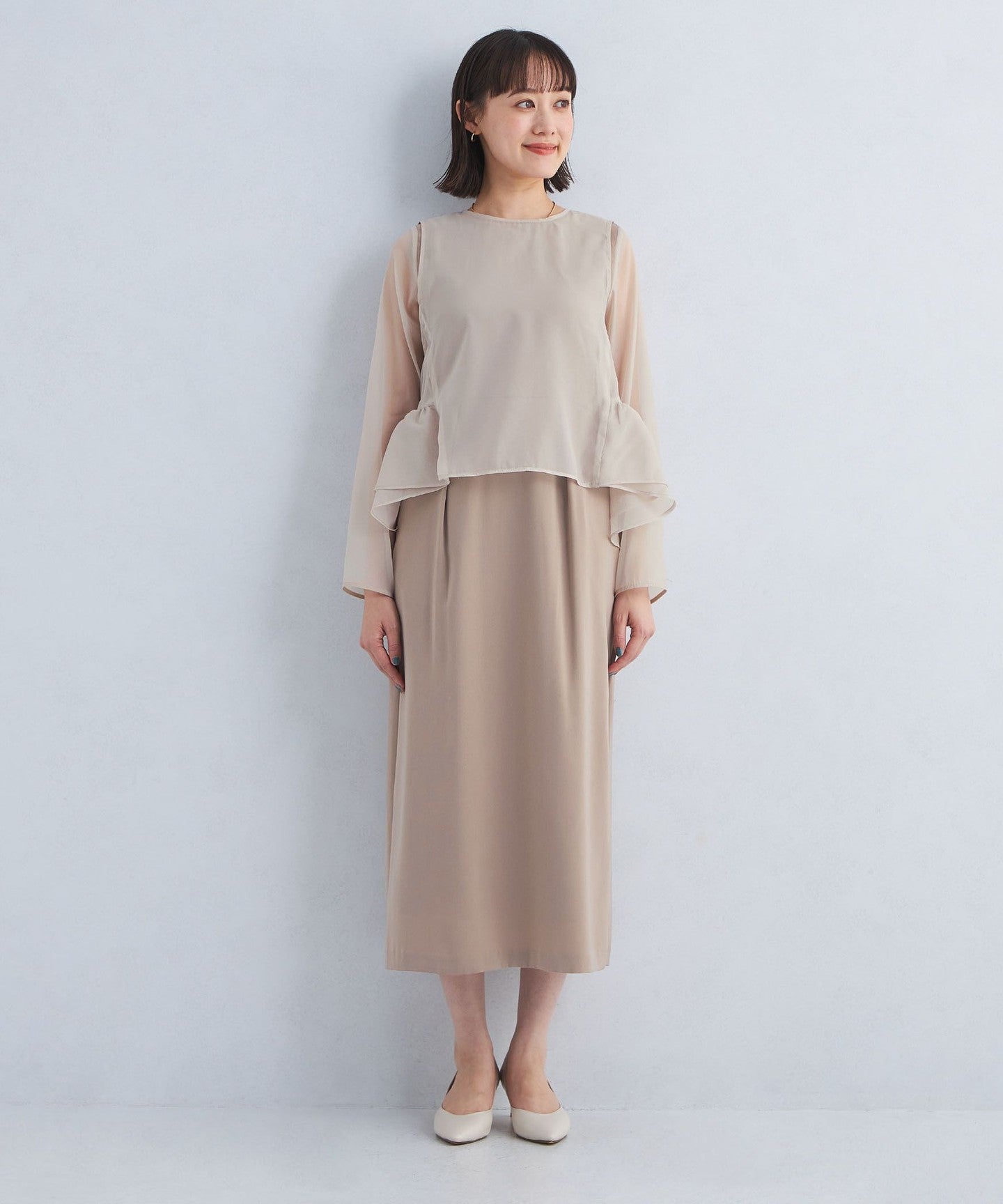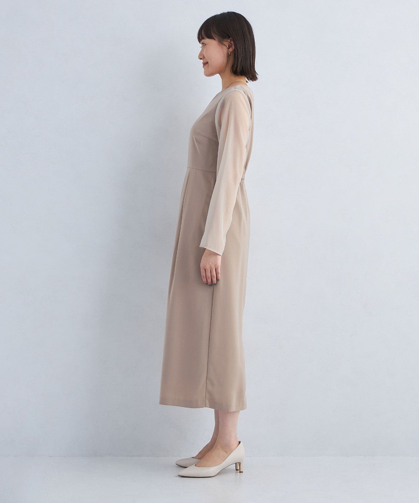 The sleeves of the dress are made of sheer material, and the design makes it suitable for wearing on its own.