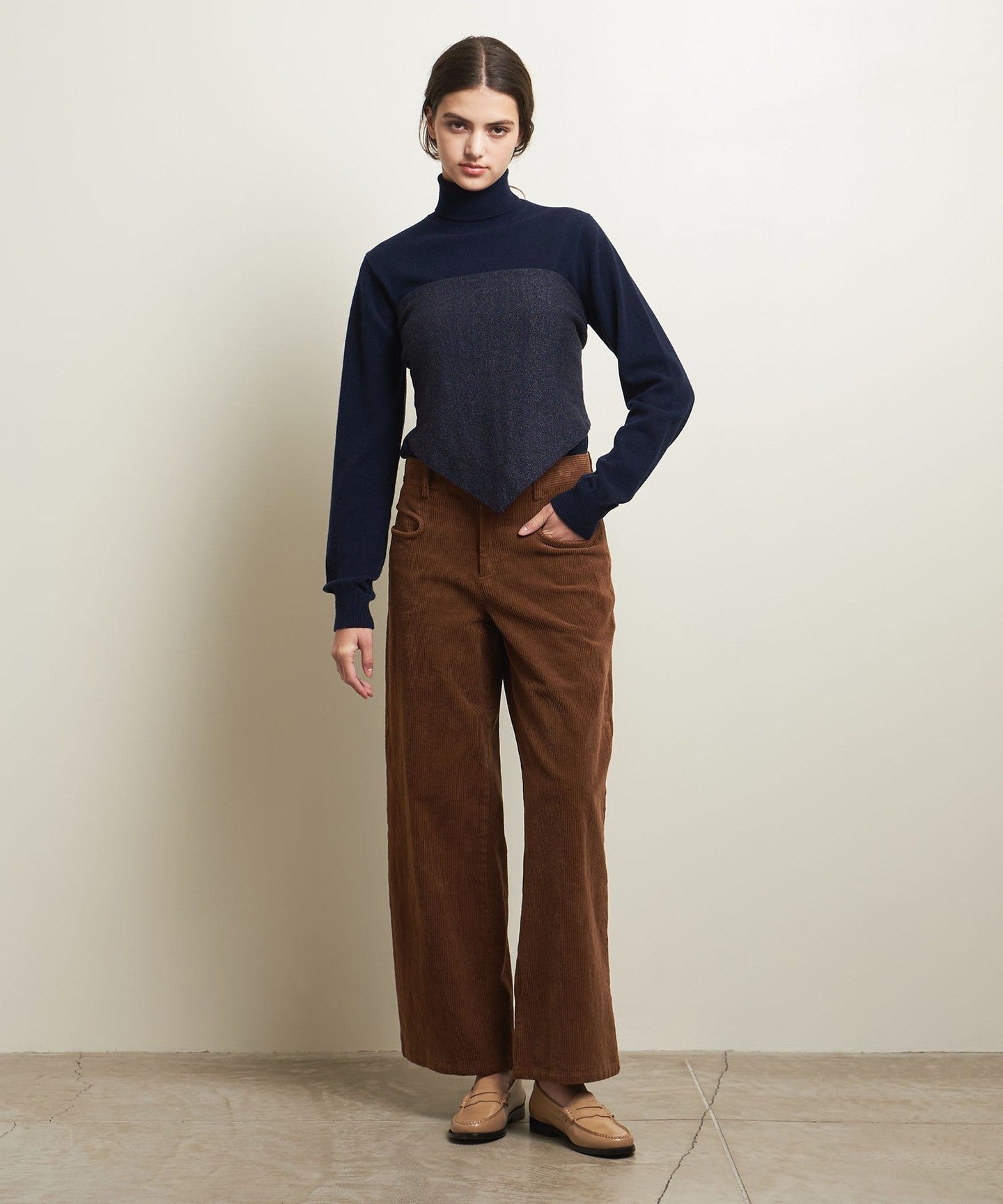 A turtleneck pullover knit that can be worn with a variety of styles.