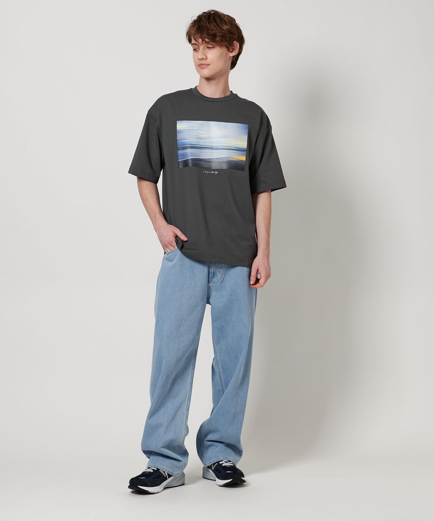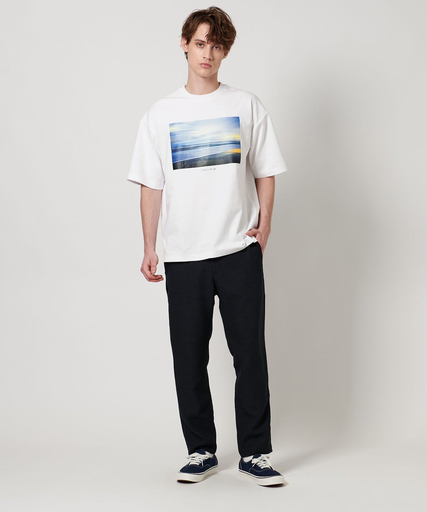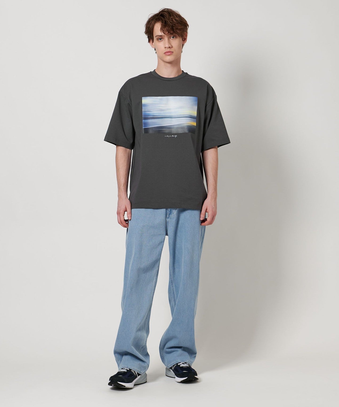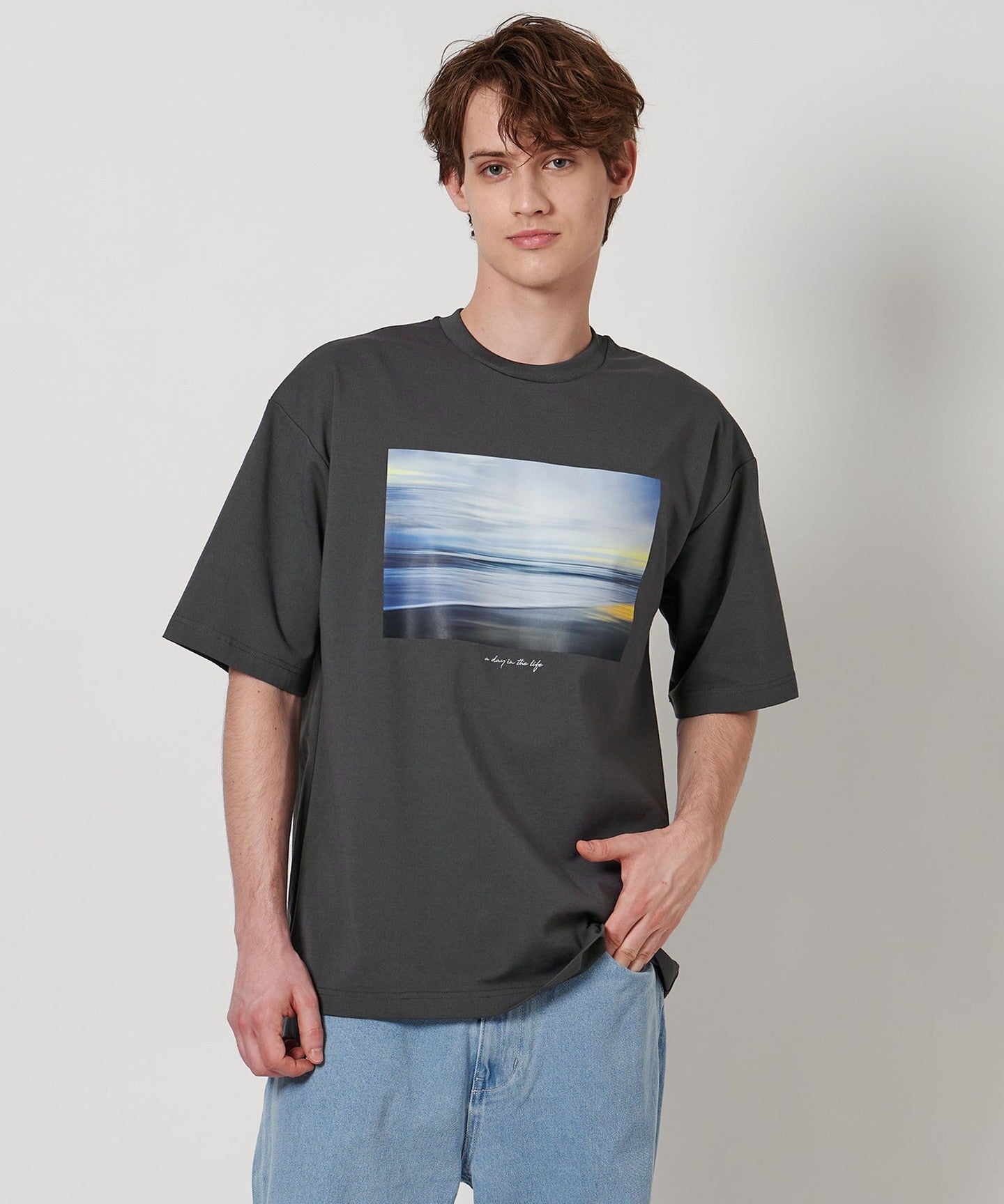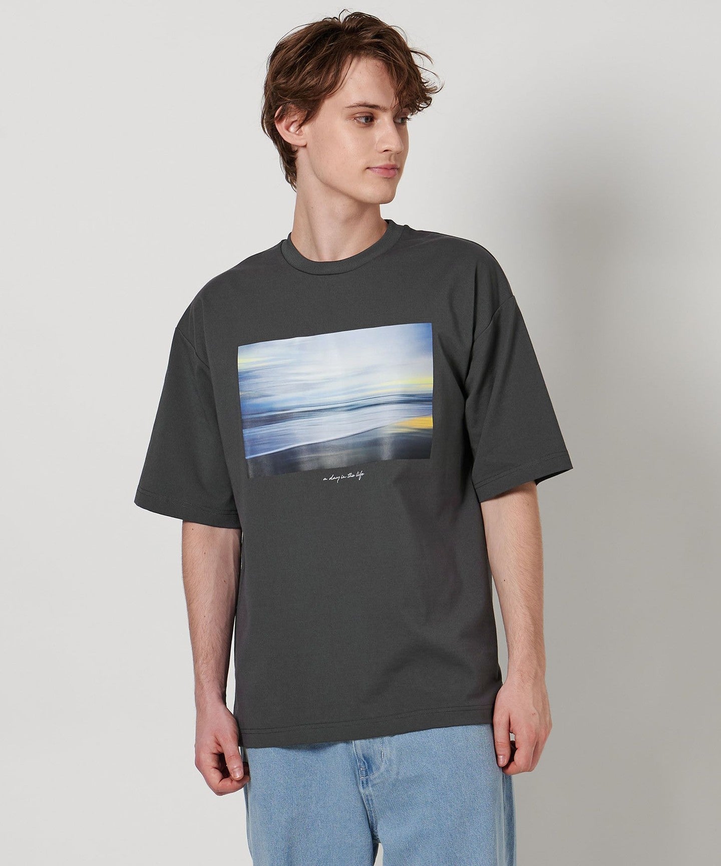 A T-shirt made of crisp ponte material featuring a photograph of a waterside.
