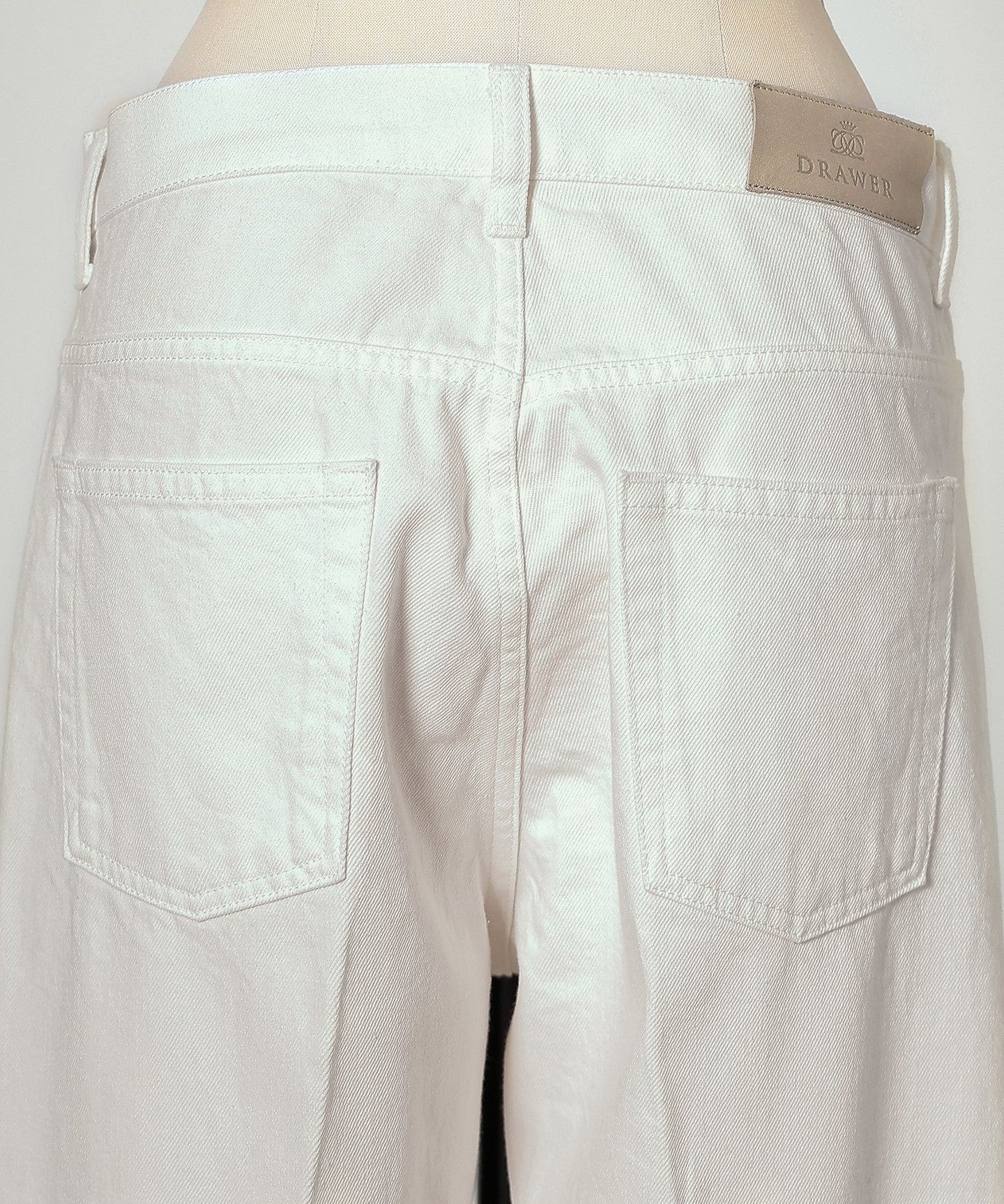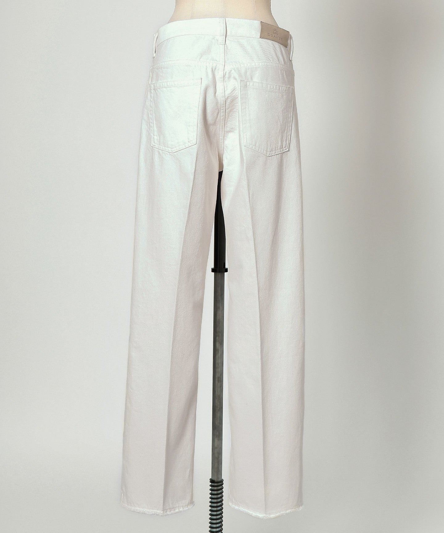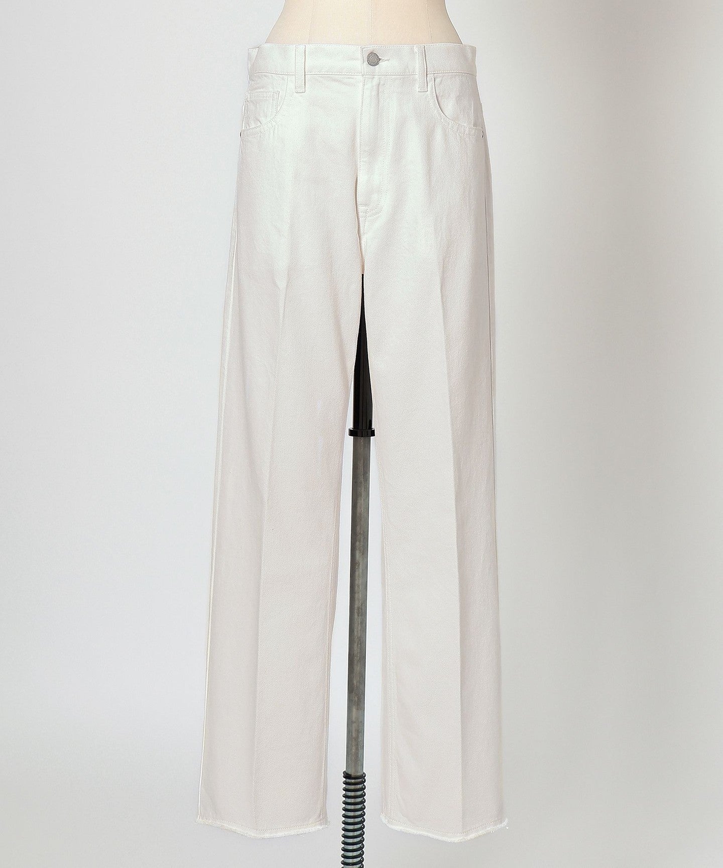 These white denim jeans have a clean, center-pressed form that gives them an elegant impression.