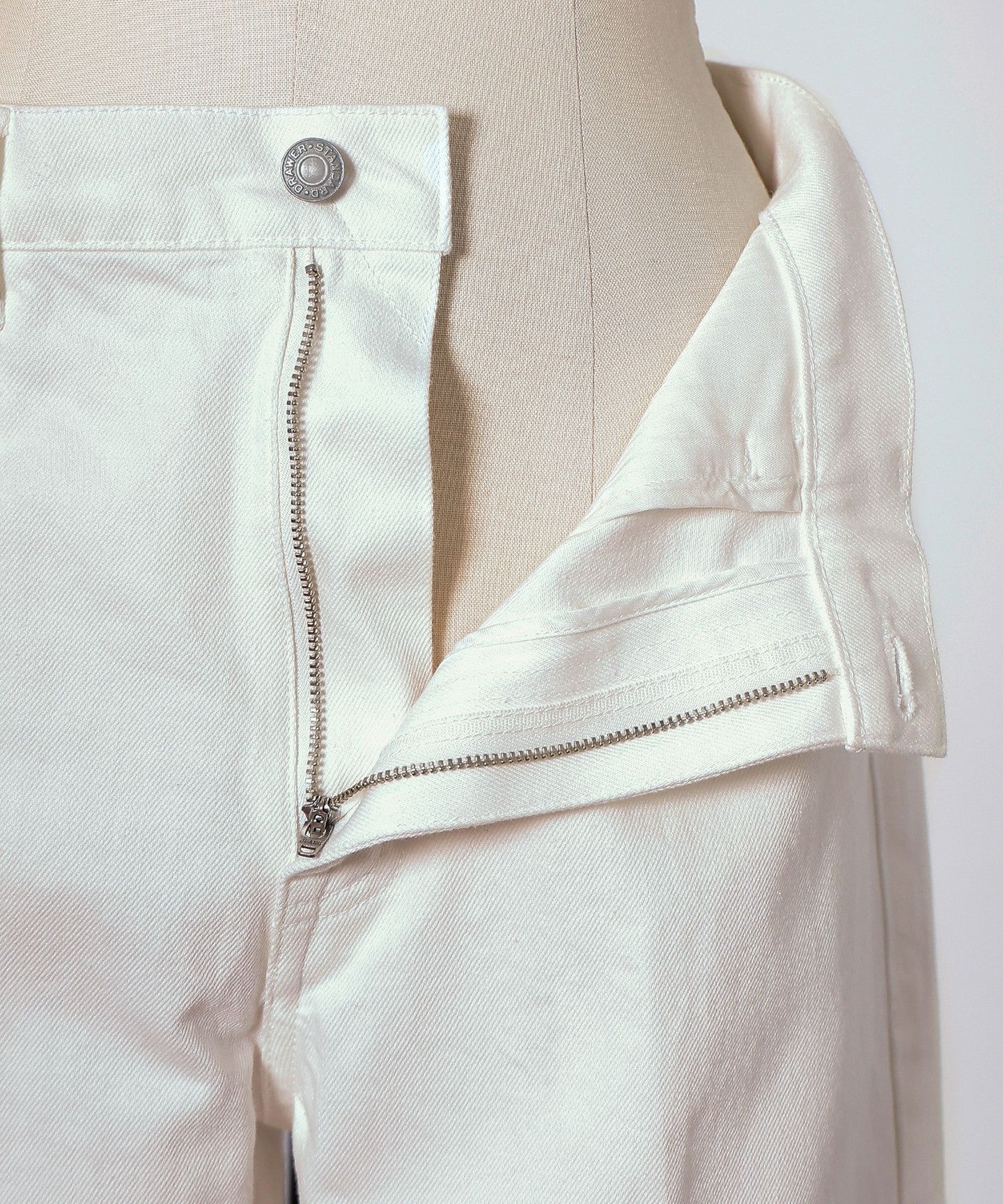 Made from a slightly light, fleshy 11 oz white denim fabric.