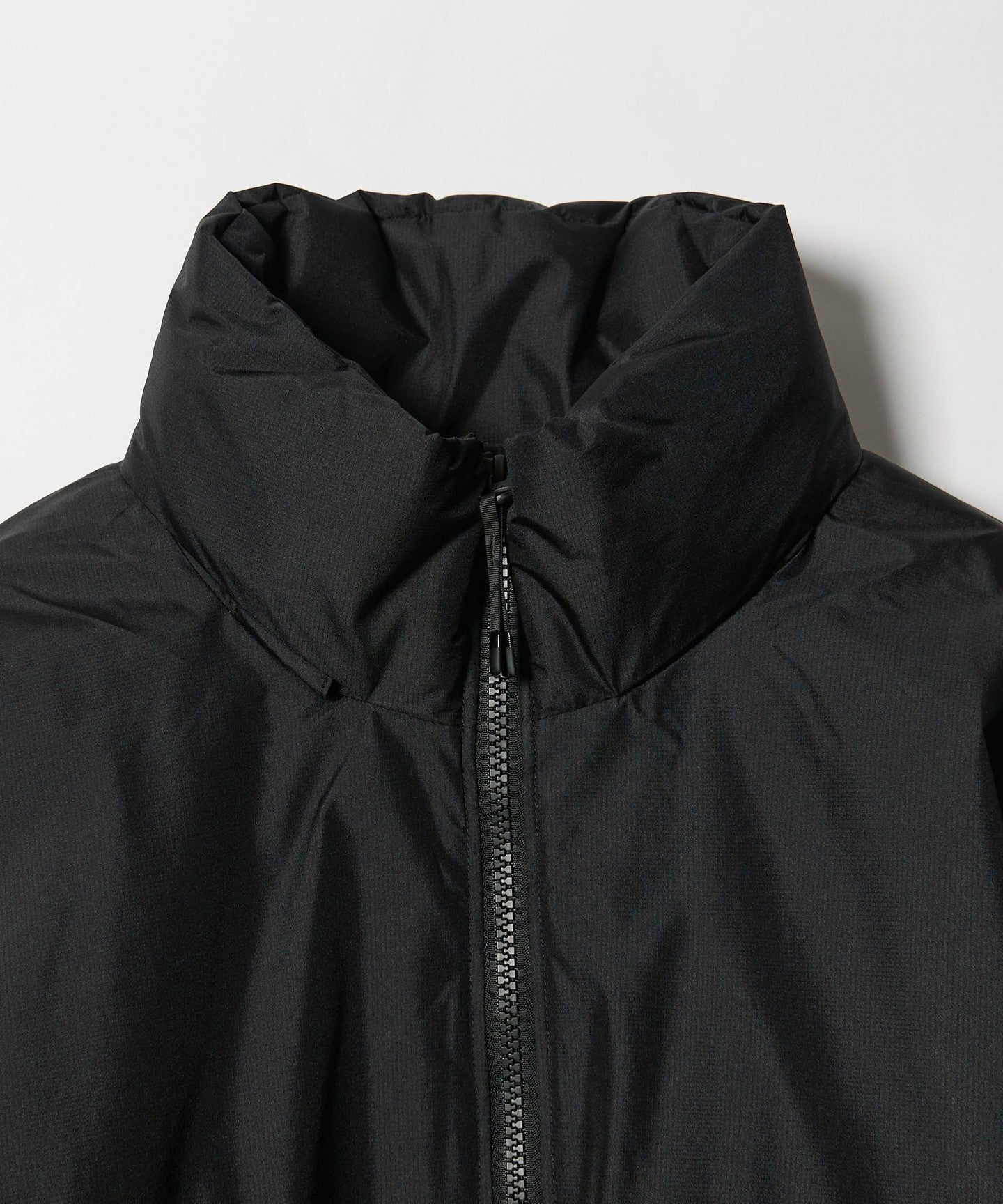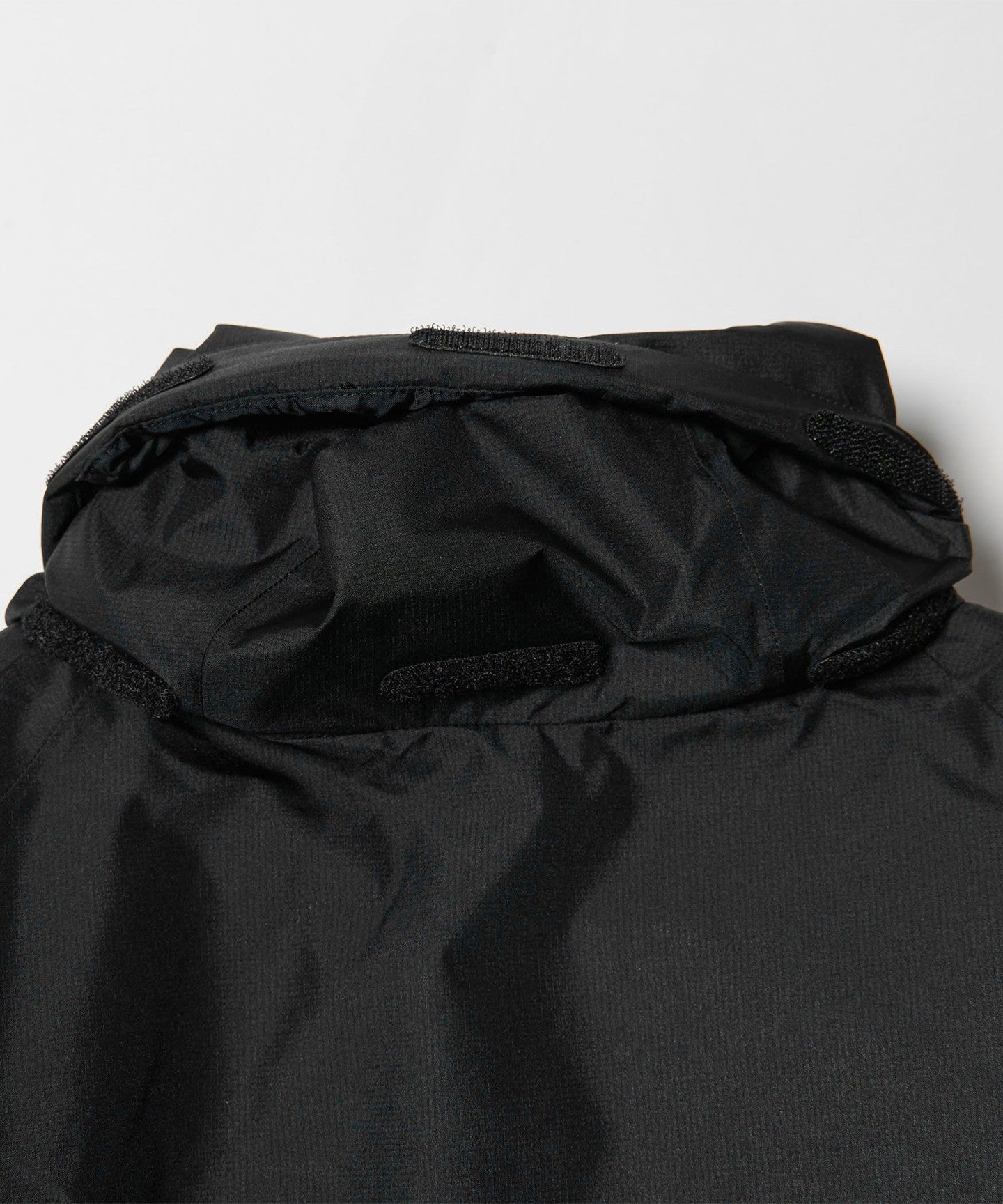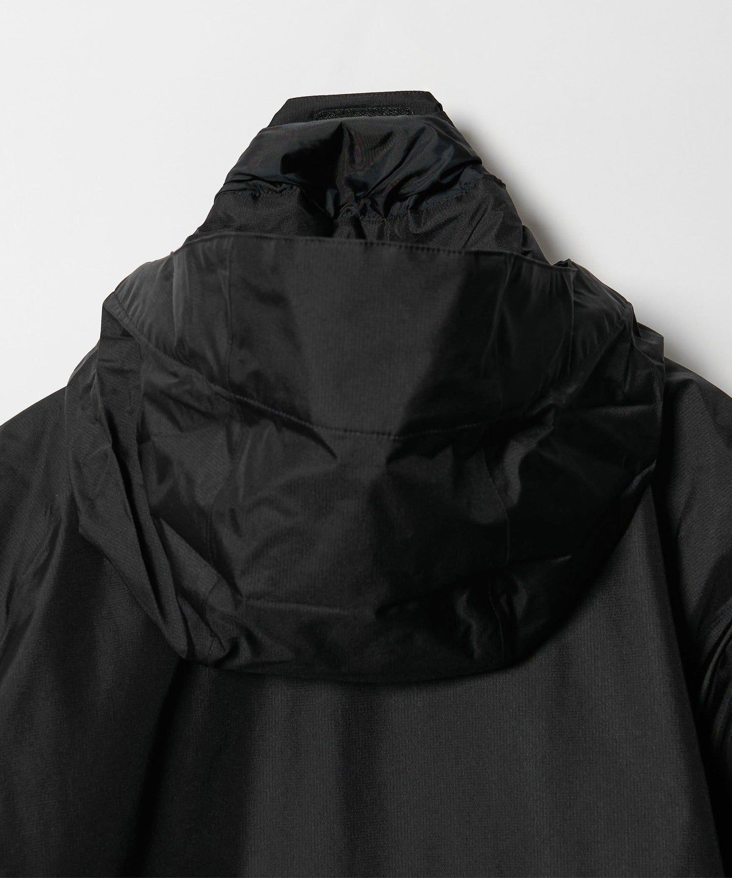 The hood can be neatly stored in the collar and can also be worn as a stand-up collar.