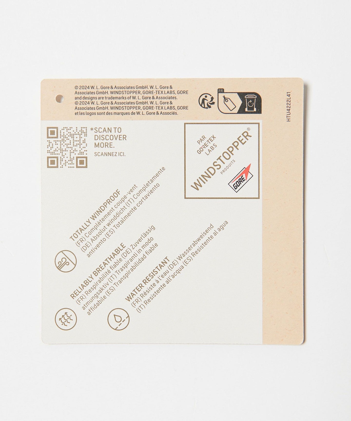 The outer layer is made of "WINDSTOPPER BY GORE-TEX LABS," which has excellent wind resistance and breathability, making it light and soft to wear.