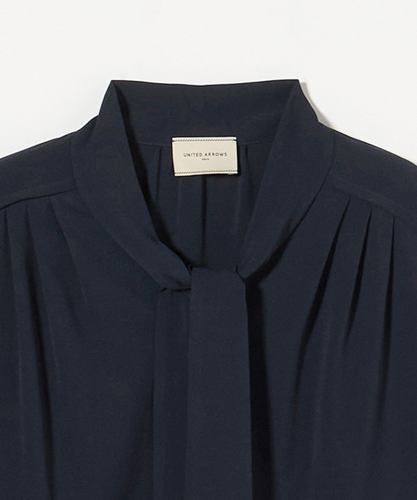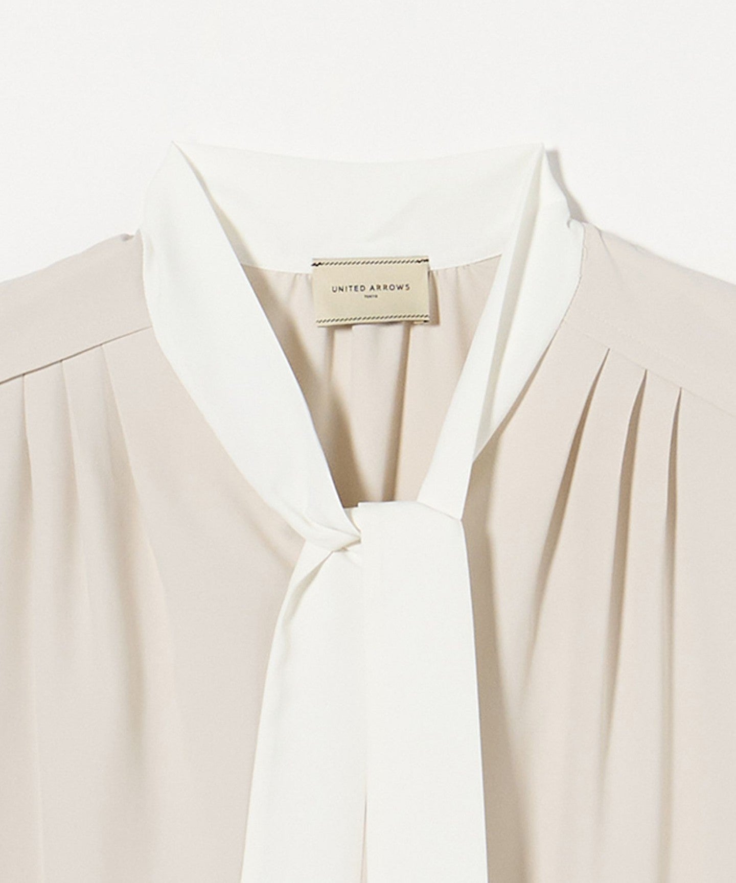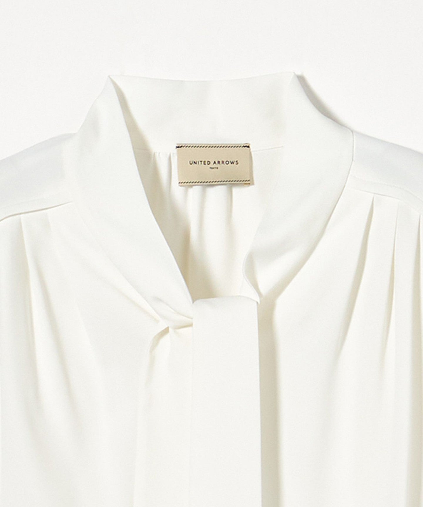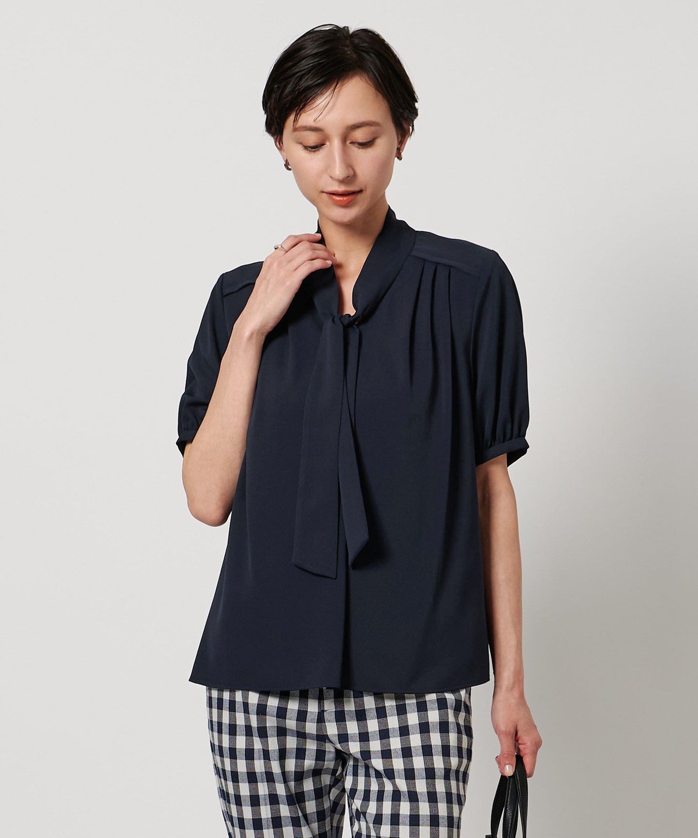 A feminine blouse with a bow tie on the front that adds an elegant accent.